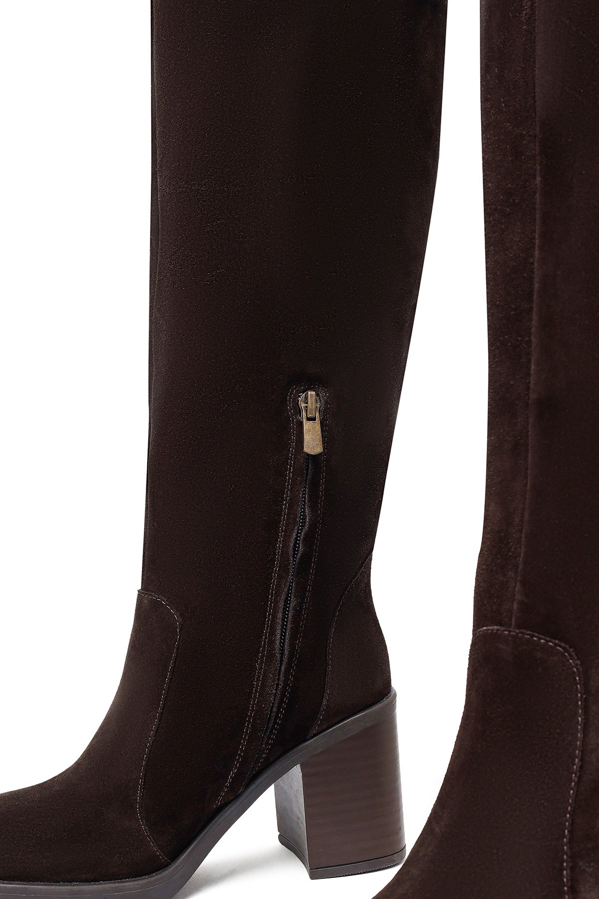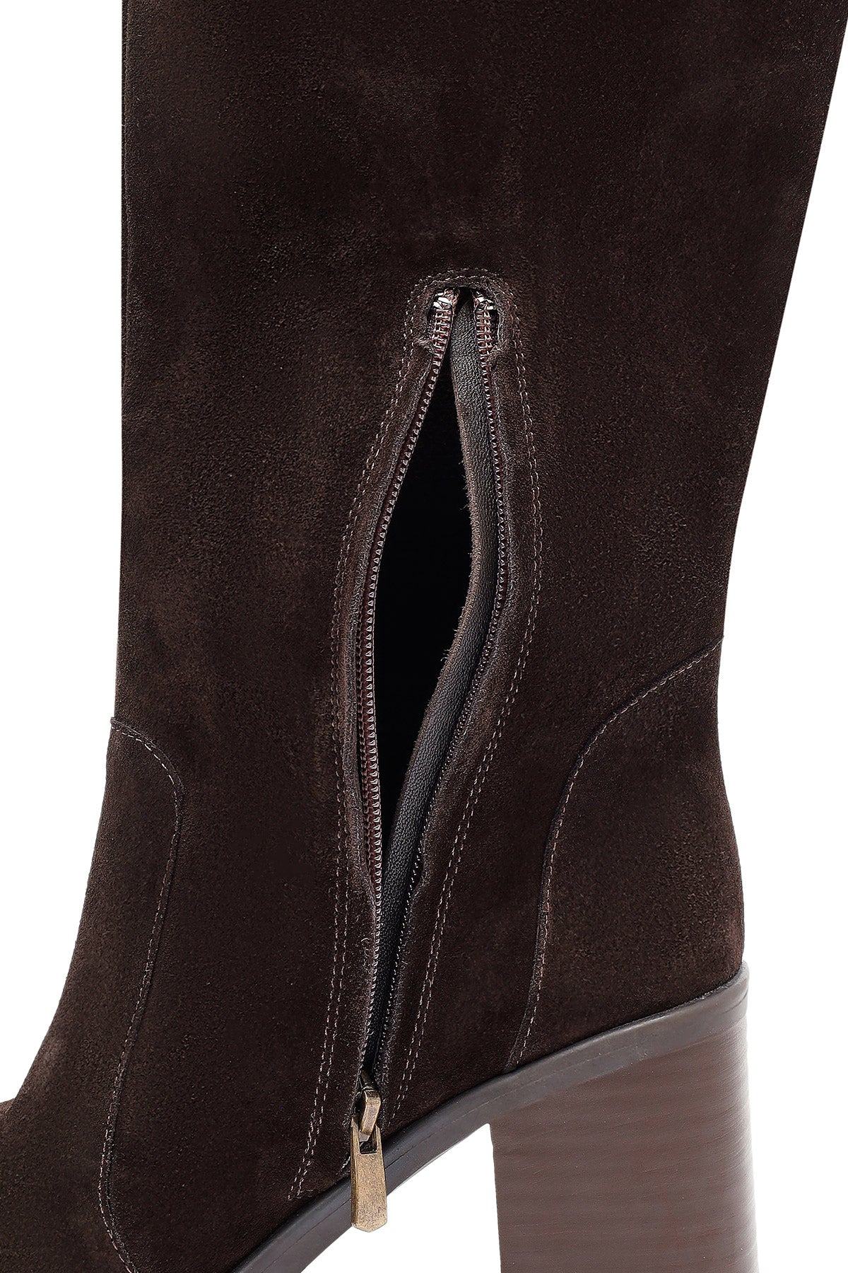 Derimod’un Zarifliği ve Şıklığı bir arada sunan Kadın Kahverengi Fermuarlı Kalın Topuklu Süet Deri Çizme ile tarzınızı konuşturun. Ürünün kodu: 25WFD203110 25
