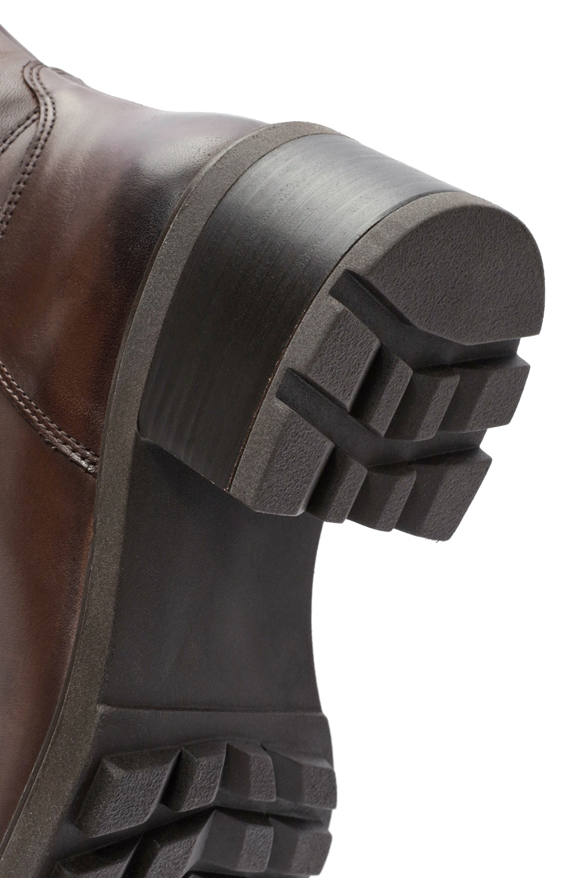 Kahverengi vidala deri malzemeden üretilen kadın çizmesi, klasik tasarım anlayışı ile modern detayların uyumlu birleşimini sunar. Vidala deri işleme tekniği sayesinde yüzeyde oluşan doğal doku ve mat görünüm, çizmenin estetik değerini artırırken dayanıklılık sağlar. Yan tarafında konumlandırılan fermuarlı yapı, giyim ve çıkarma kolaylığı sunarken ayak bileğini saran form ile destekleyici bir duruş yaratır. 5,5 cm topuk yüksekliği günlük kullanımda dengeli bir görünüm sağlarken, diz altı uzunluğundaki tasarım bacağı zarif şekilde çevreler. Deri iç astar yapısı ayak sağlığını desteklerken nefes alabilir özellik gösterir. Çizmenin burun formu hafif sivri yapısıyla modern çizgiler taşırken, topuk arkası güçlendirilmiş destek sistemi ile ayağın doğru pozisyonda durmasını sağlar. Taban yapısı kaymaz özellikli olup farklı zemin türlerinde güvenli adım atma imkanı sunar. Kahverengi renk tonu sonbahar ve kış aylarında çeşitli kombinlerle uyumlu kullanım sağlarken, özellikle koyu renk pantolonlar ve eteklerle mükemmel uyum gösterir. Ofis ortamından günlük kullanıma, akşam yemeklerinden alışveriş turlarına kadar geniş bir kullanım yelpazesi sunan çizme, kadınların gardıroplarında vazgeçilmez bir parça haline gelir. Ürün kodu: 25WFD280918