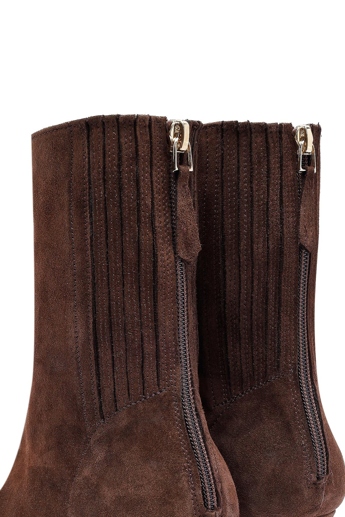 Kadın kahverengi fermuarlı süet deri bot, sonbahar sezonunun en dikkat çeken ayakkabı seçeneklerinden biridir. Süet deri malzemeden üretilen bot, yüzeyde yumuşak ve kadifemsi doku sunarken, kahverengi renk tonu ile klasik şıklığı yansıtır. Sivri burun formu ayağa zarif bir görünüm kazandırırken, 7 cm topuk yüksekliği ile ideal duruş sağlar. Orta bilek yüksekliğindeki tasarım, bacağı uzun gösterme etkisi yaratır ve farklı kombinlere uyum sağlar. Yan tarafta konumlandırılan fermuar detayı hem pratik giyim kolaylığı hem de modern bir tasarım unsuru olarak öne çıkar. Kalın topuk yapısı dengeli yürüyüş sağlarken, günlük kullanımda ayak sağlığını destekler. İç kısmında deri astar kullanımı nefes alabilirlik ve uzun süreli kullanım rahatlığı sunar. Bot şaftının bilek hizasındaki yüksekliği, pantolon ve etek kombinlerinde çok yönlü kullanım imkanı yaratır. Süet malzemenin mat yüzey dokusu, klasik deri botlardan farklı bir estetik sunarken, kahverengi ton çeşitli renk paletleriyle uyum sağlar. Dış taban yapısı günlük kullanımda gerekli tutuş ve dayanıklılığı sağlarken, topuk arkası destekleyici yapısıyla ayak stabilitesini artırır. Sonbahar koleksiyonunun öne çıkan parçası olan bot, iş ortamından günlük kullanıma kadar geniş bir yelpazede tercih edilebilir. Ürün kodu: 25AFD121510