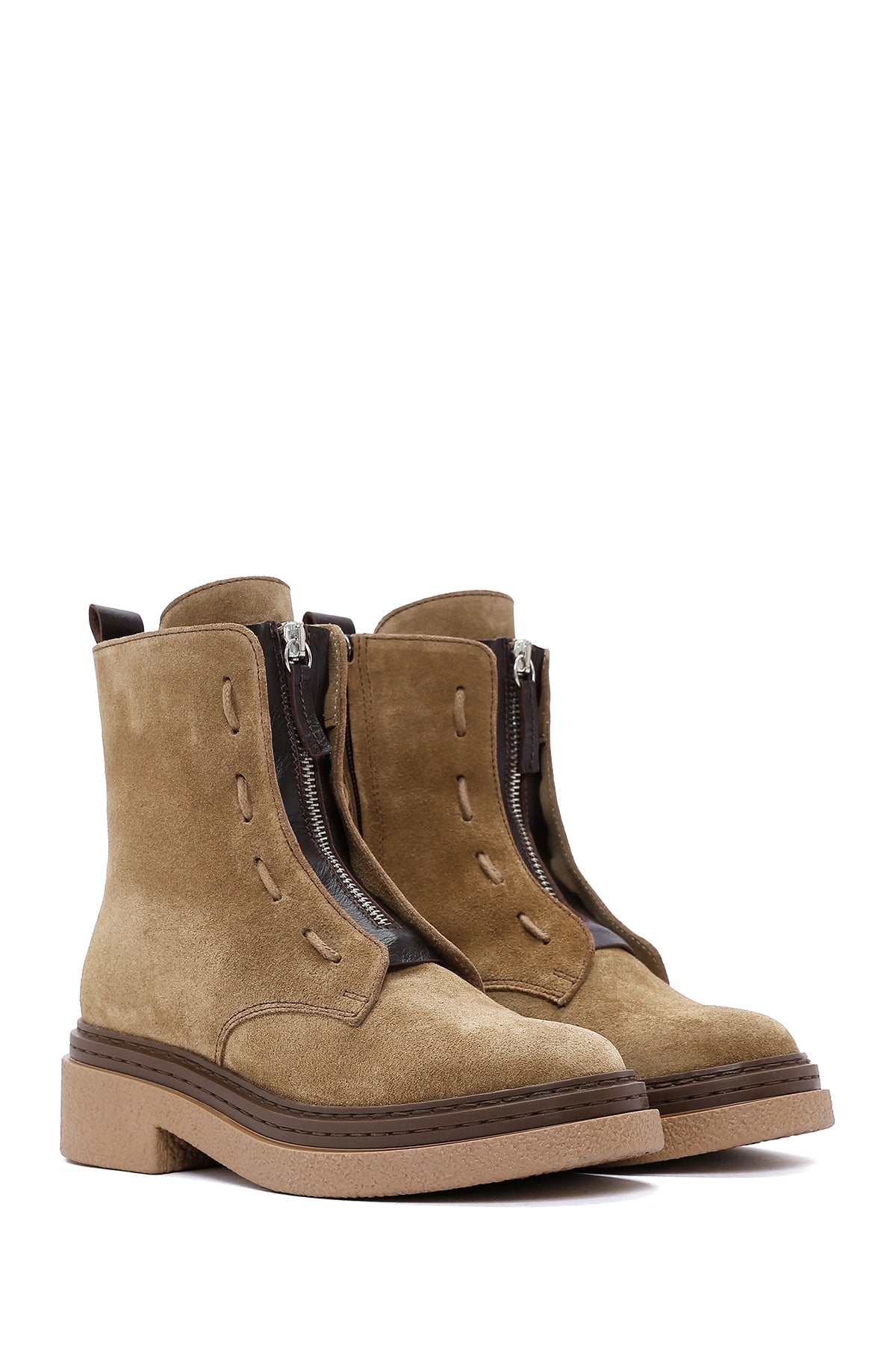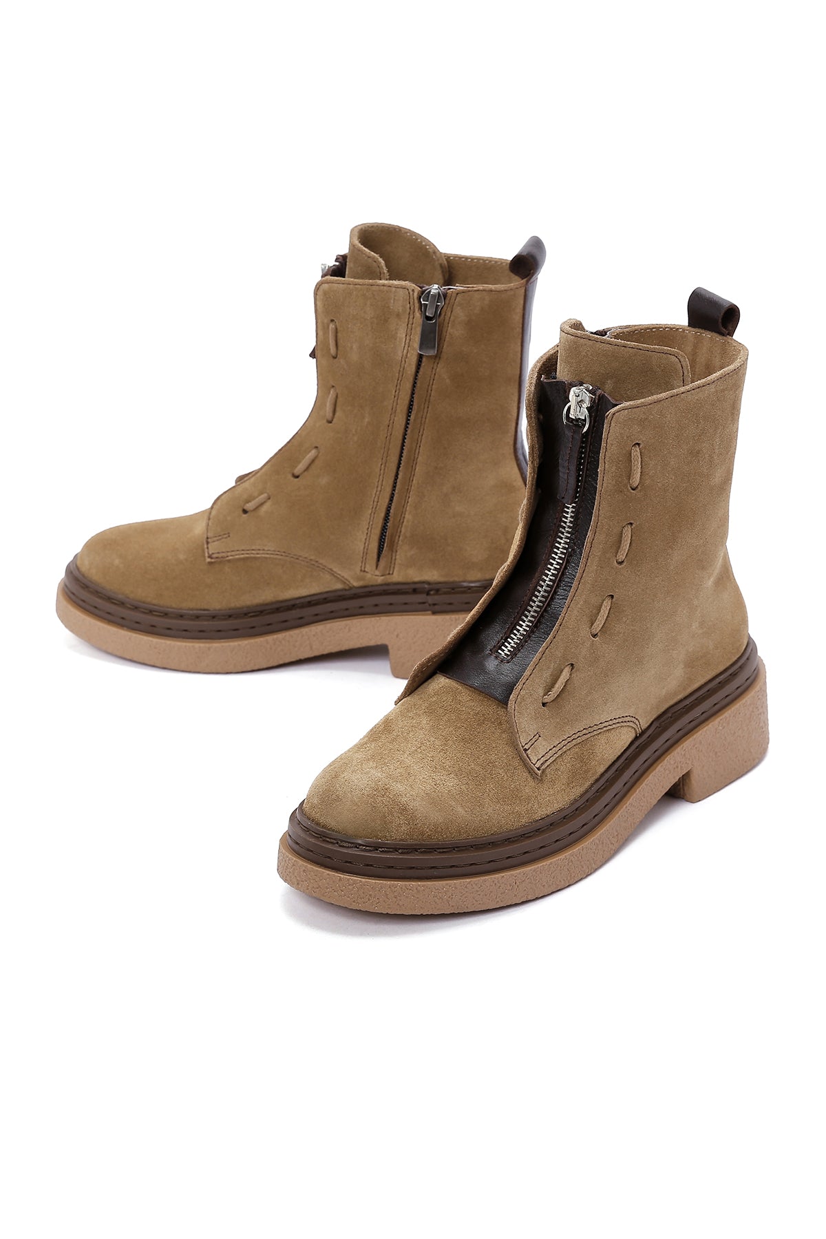 Süet deri kullanılarak üretilen bu bot, kış sezonunun şık ve modern parçalarından biridir. Yan fermuarı sayesinde pratik bir giyim deneyimi sunan model, 2 cm topuk yüksekliği ile rahat bir yürüyüş sağlar. Tekstil iç astarı ile nefes alabilen bir yapıya sahip olan tasarım, dayanıklı dış tabanı ile güvenli adımlar sunar. Tütün rengi ve minimalist tasarımıyla hem günlük hem şık kombinlere uyum sağlayan bot, sonbahar ve kış aylarında tercih edilebilir. Kullanım alanları: Günlük yaşam, şehir gezintileri, alışveriş ve casual stil kombinler için idealdir. Ürün kodu: 24WFD130810