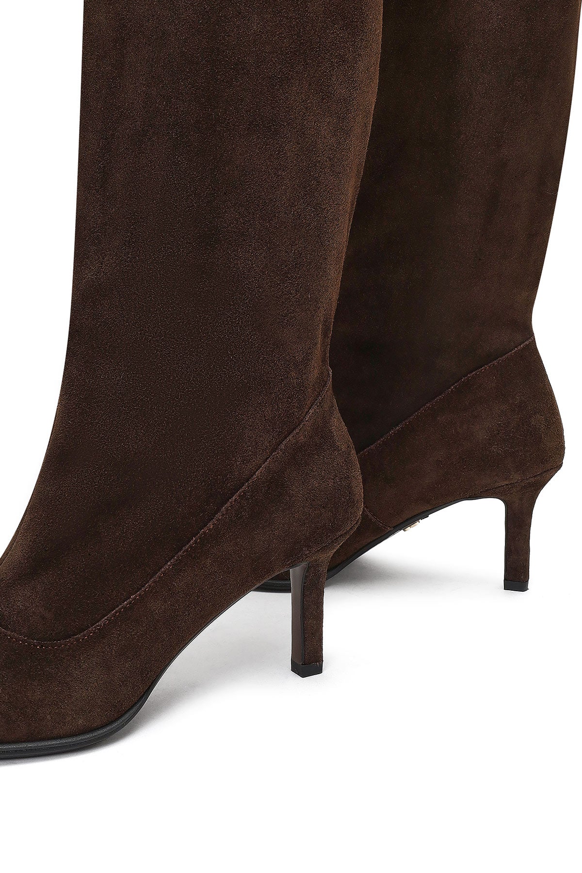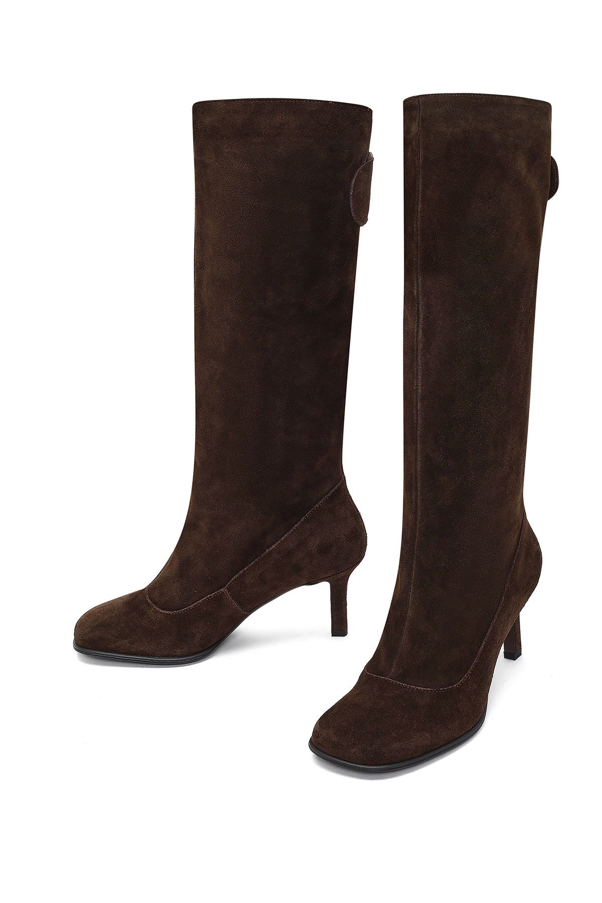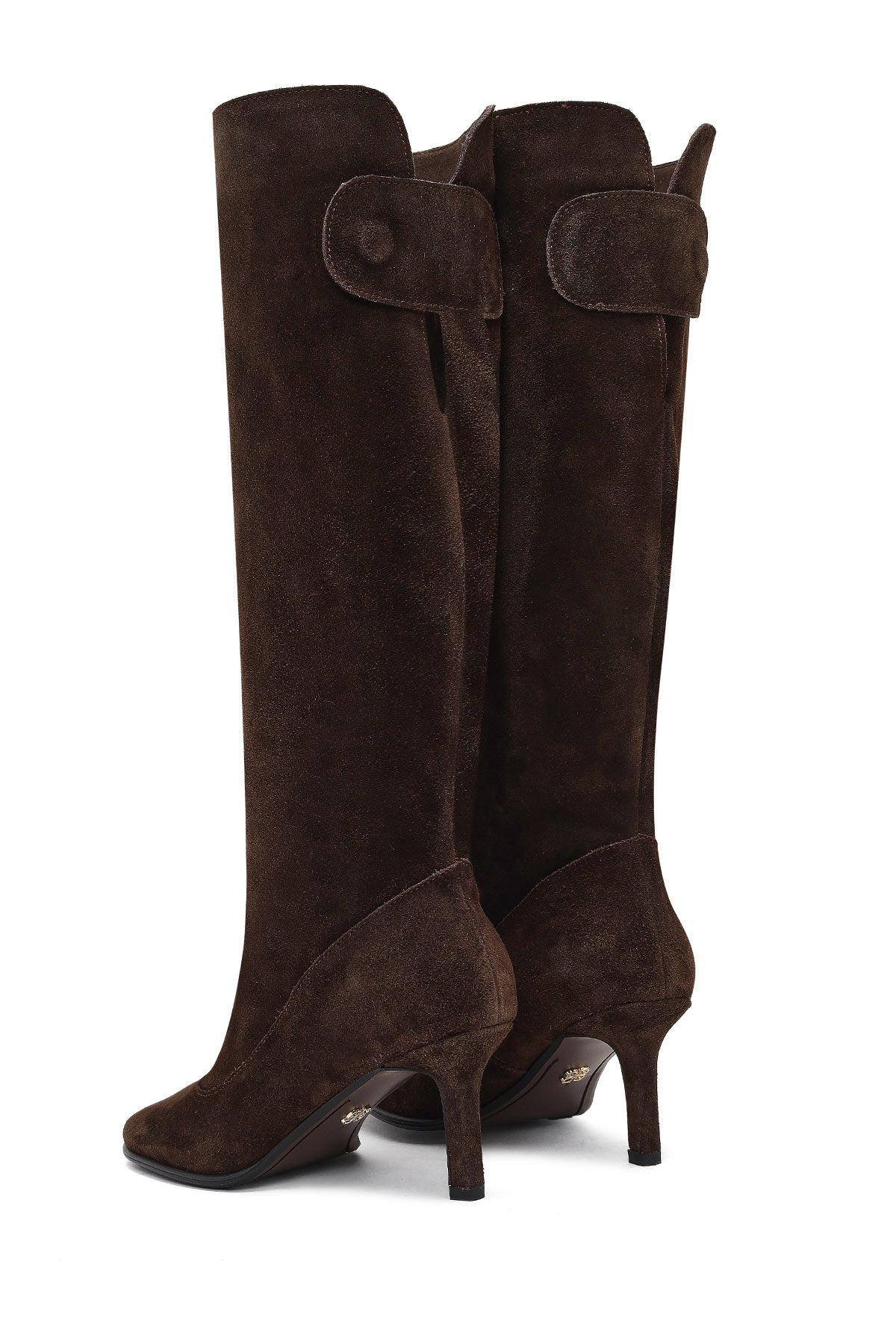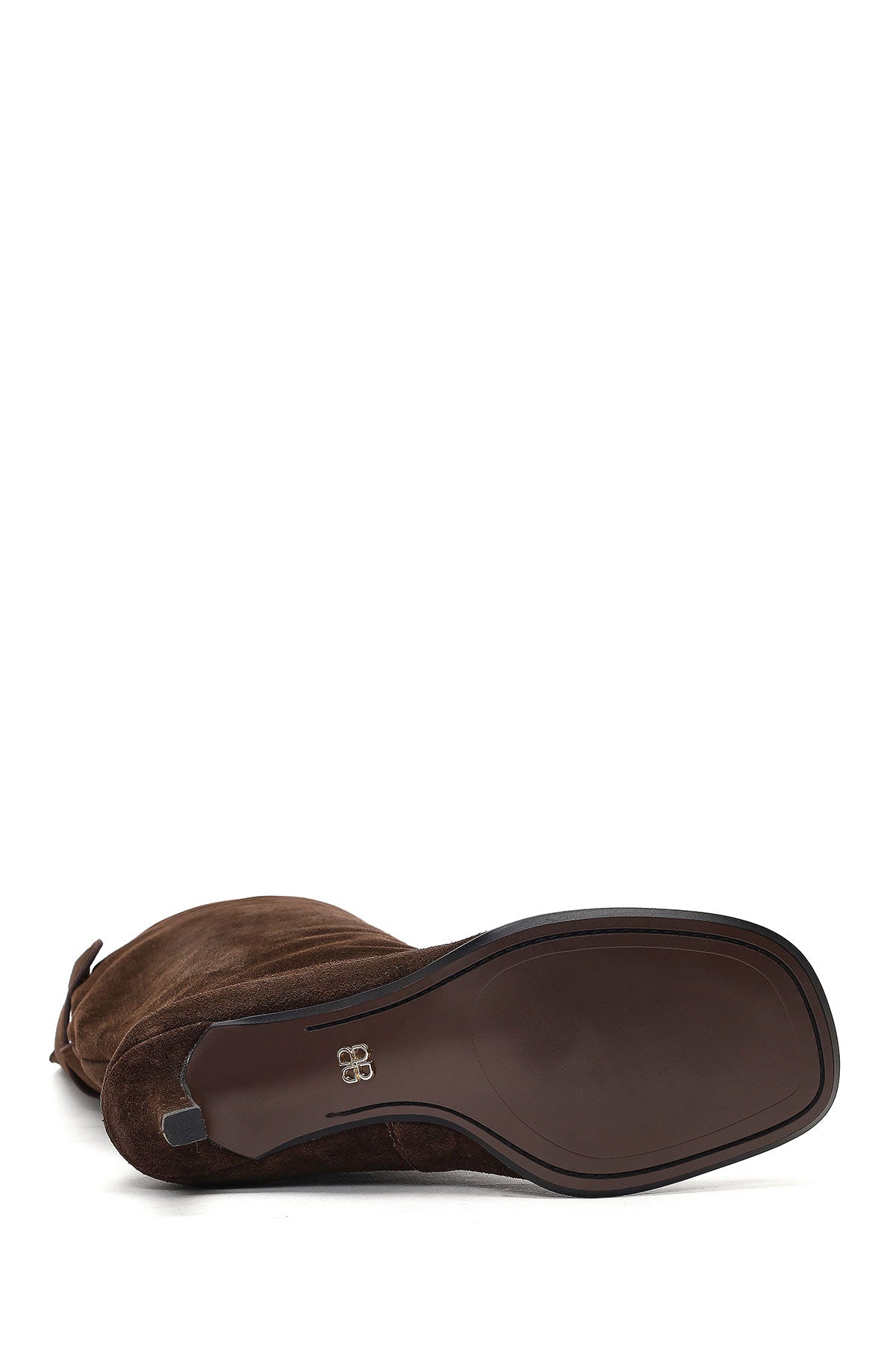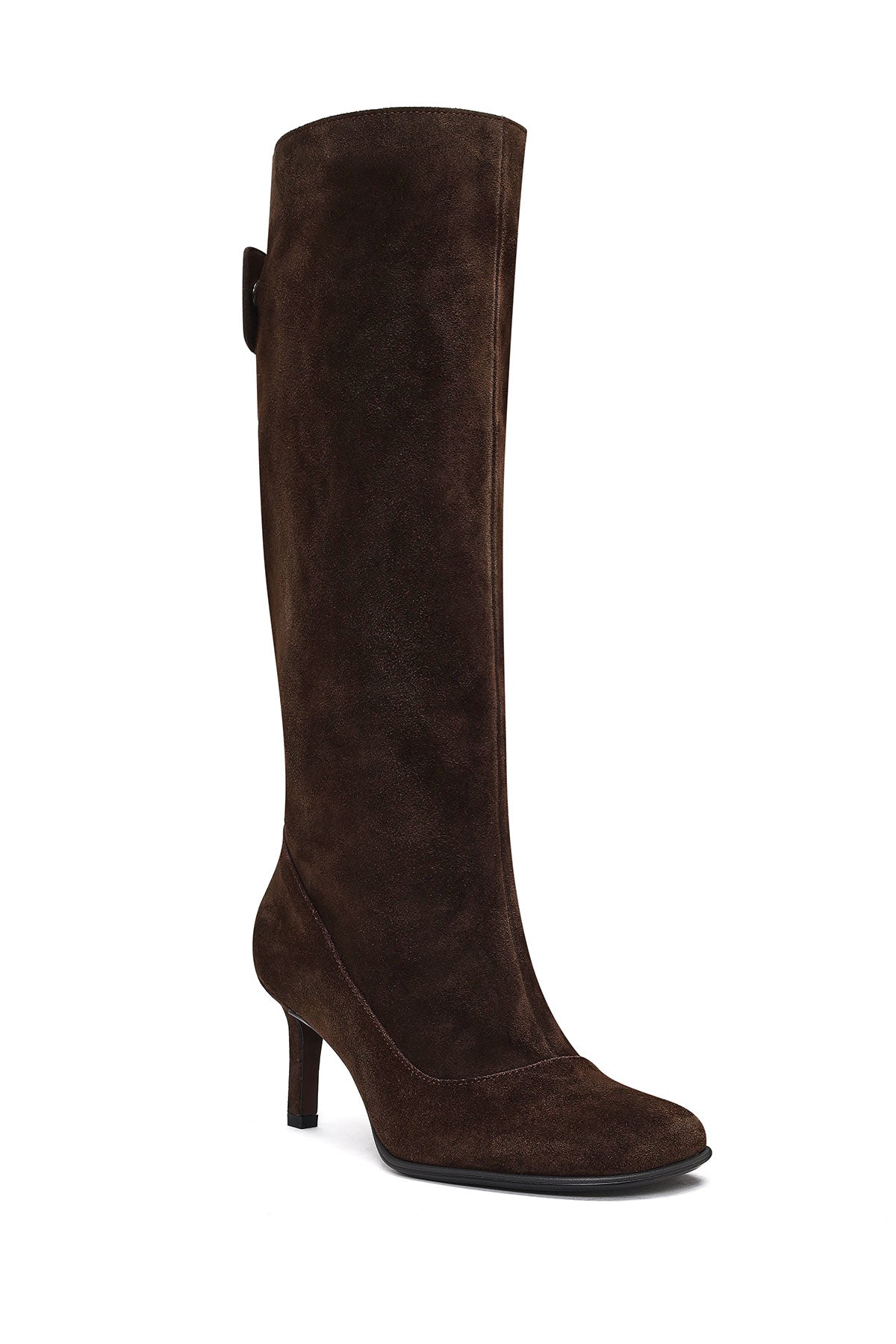 Kadın Kahverengi İnce Topuklu Süet Deri Çizme