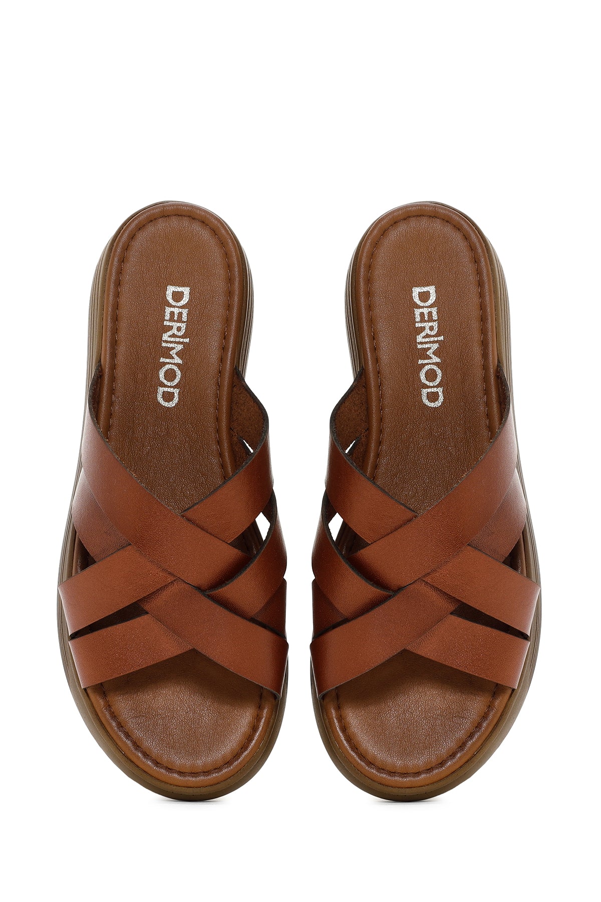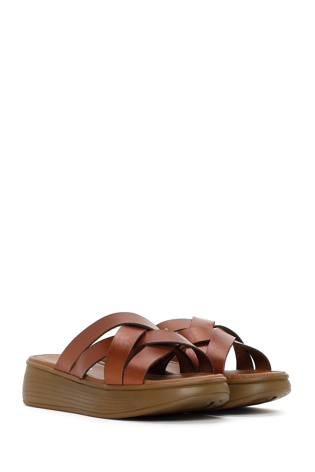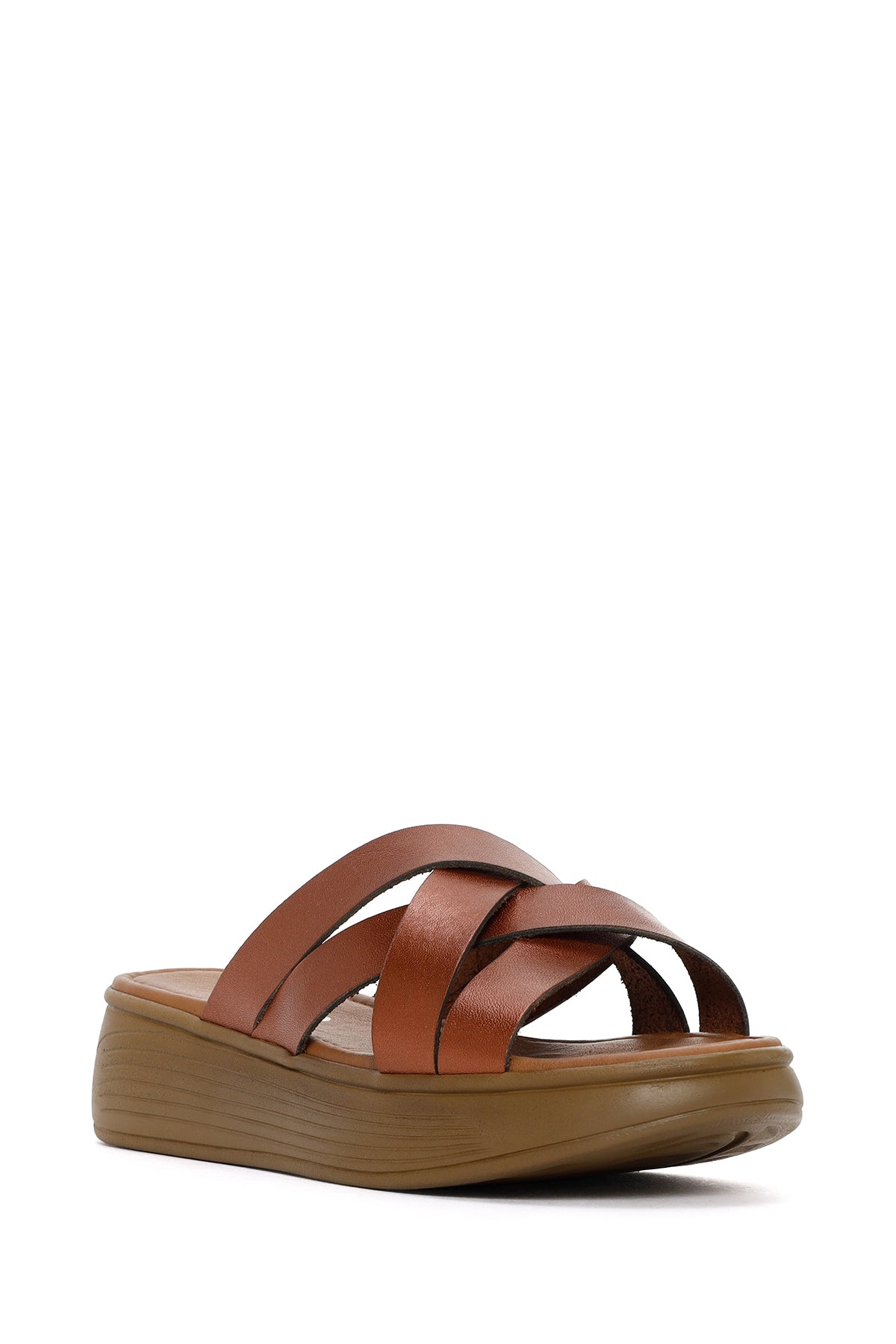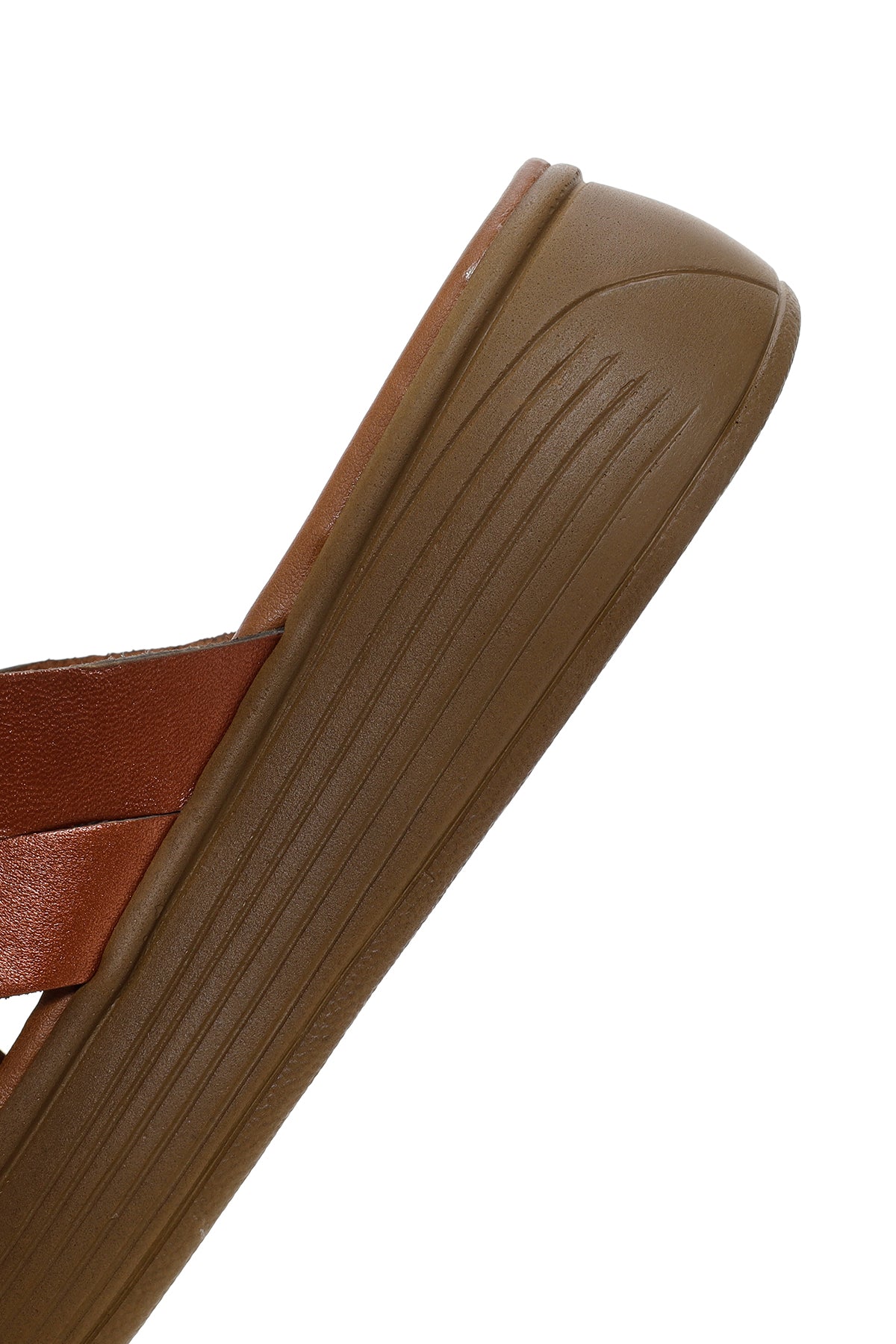 Kadın Kahverengi Kalın Tabanlı Deri Terlik