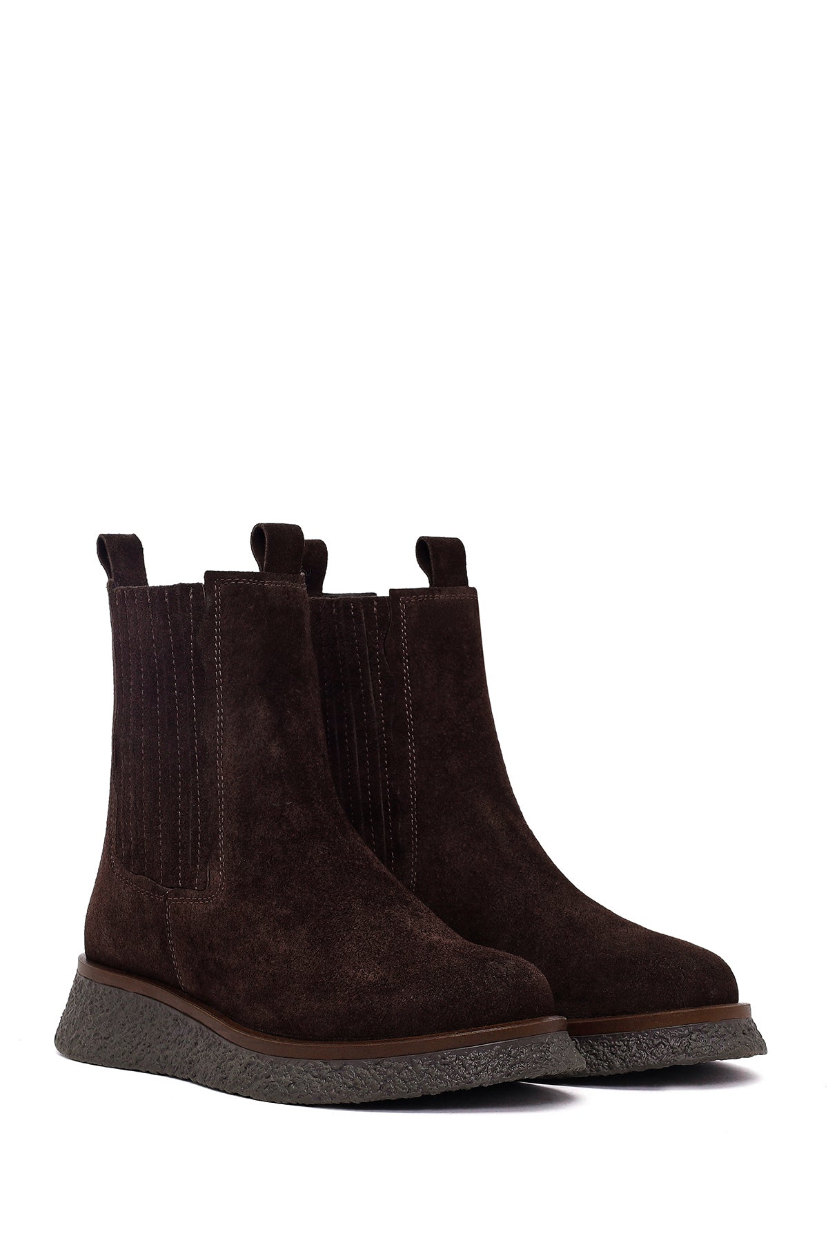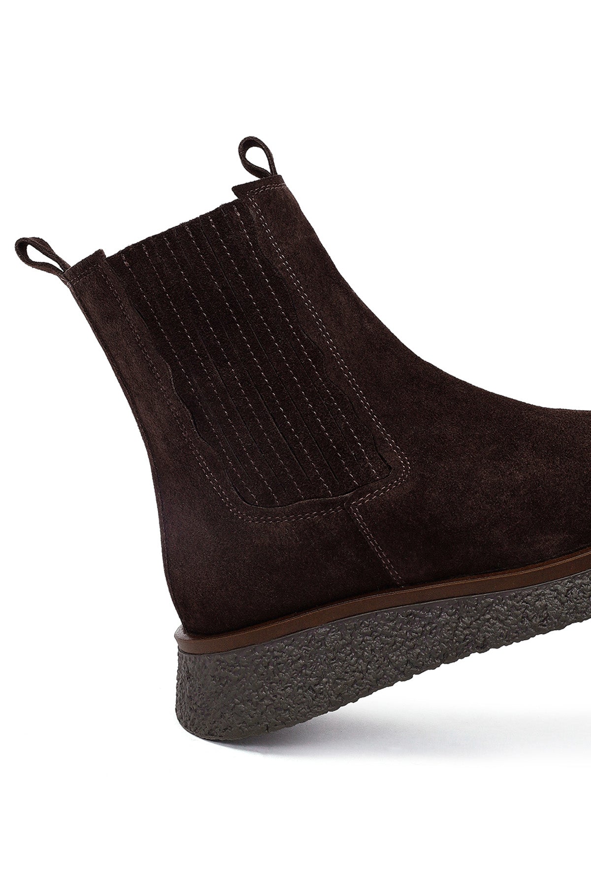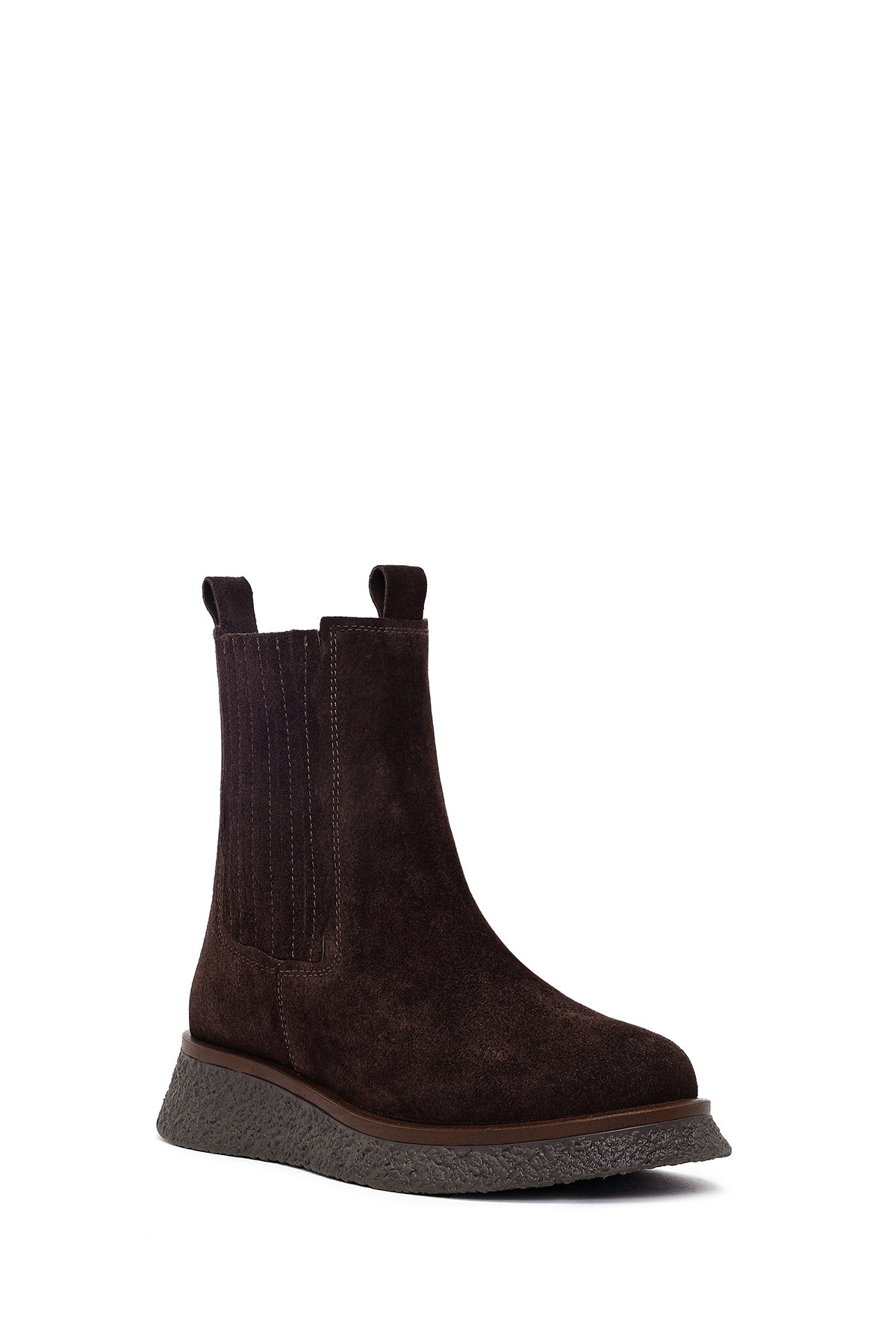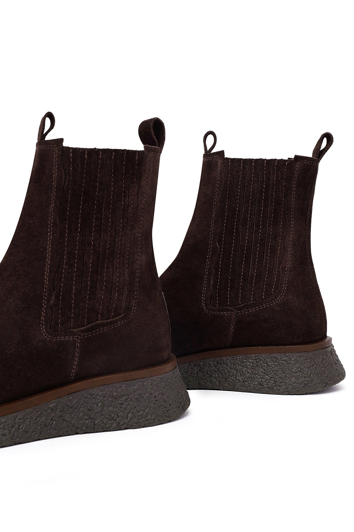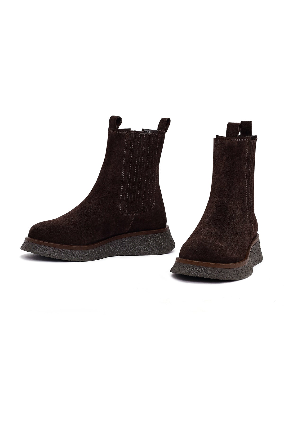 Derimod'un kış koleksiyonundan, süet deri kullanılarak tasarlanan kahverengi Chelsea bot modeli, 3 cm yüksekliğindeki kalın tabanı ile günlük kullanıma uygun bir tasarım sunuyor. Klasik Chelsea bot kesimi ve yan elastik detaylarıyla şık bir görünüm sergileyen model, deri iç astarı sayesinde ayağınızı sıcak tutuyor. Kolay giyim sağlayan çekme aparatları ile pratik kullanım sunan bot, jean'lerden elbiselere, pantolonlardan eteklere kadar geniş bir kullanım alanı sunuyor. Sonbahar ve kış mevsimlerinde günün her saatinde kullanılabilir. Ürün kodu: 25WFD511410
