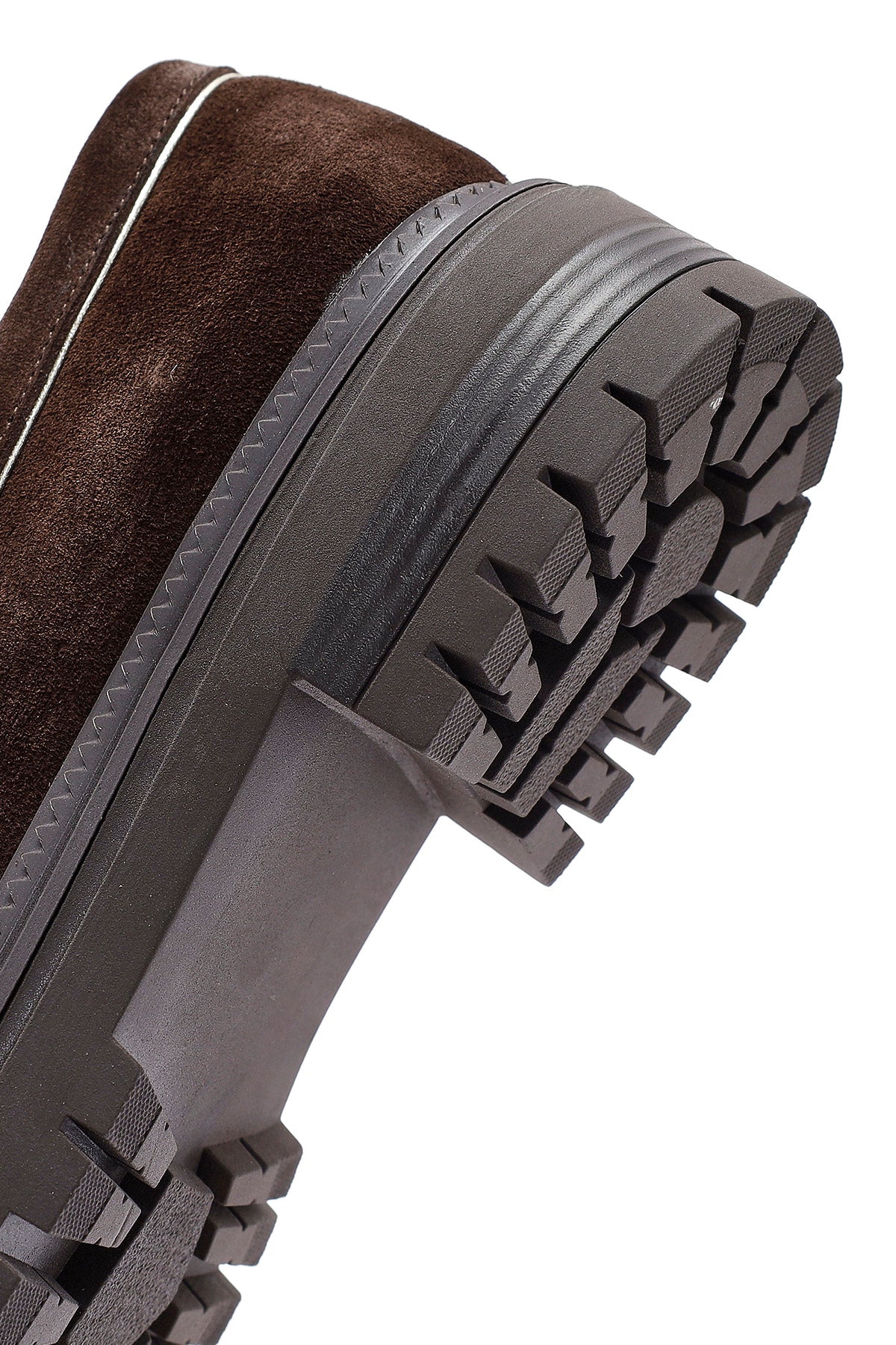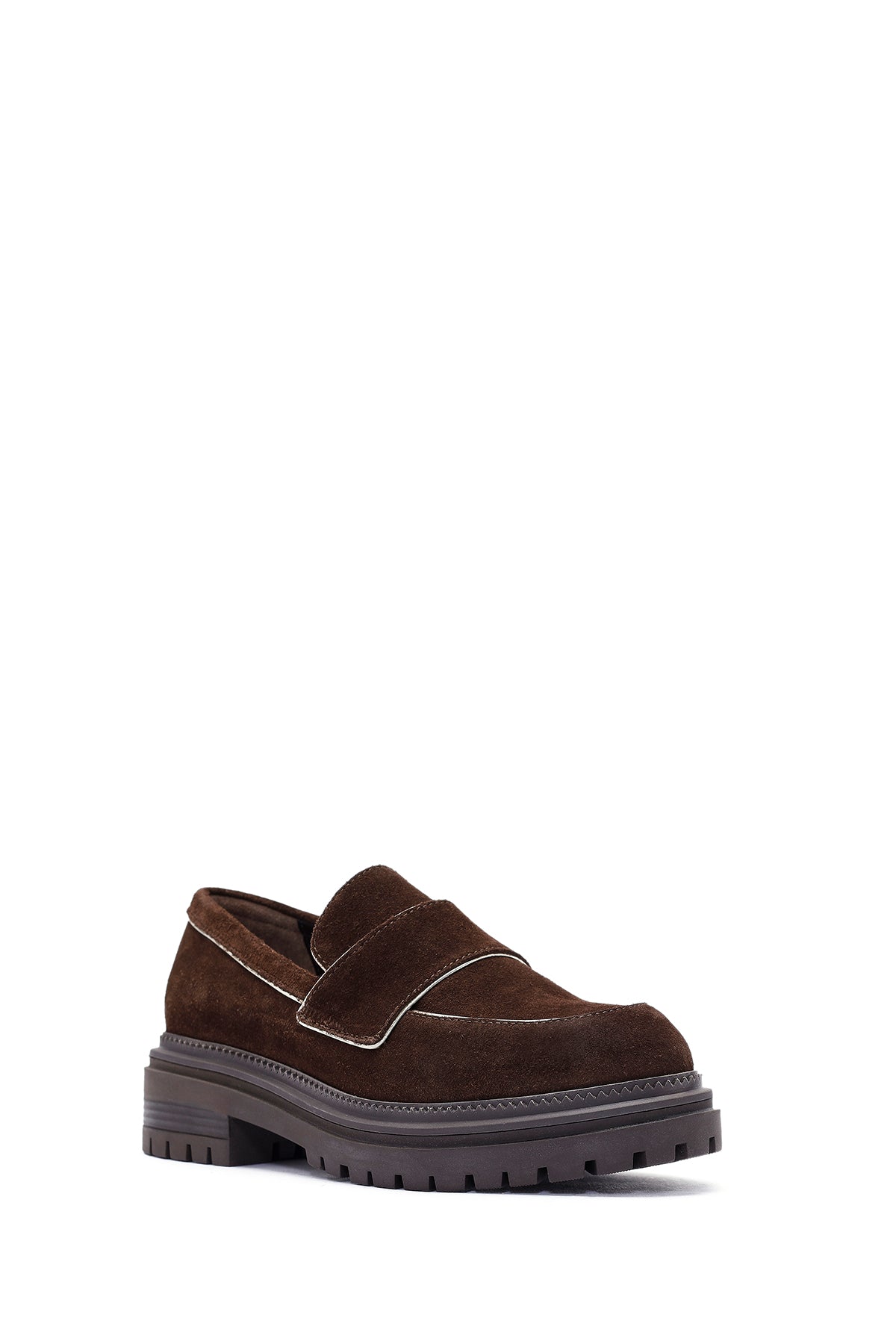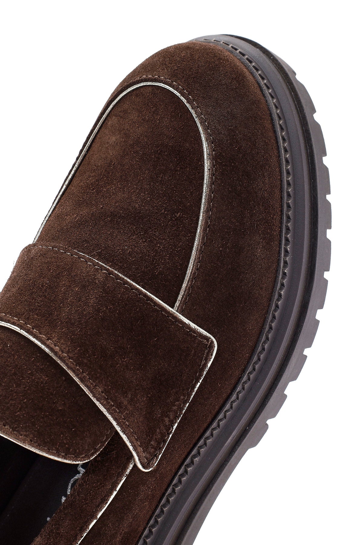 Süet deri kullanılarak üretilen bu maskülen loafer, kış sezonunun modern ve şık parçalarından biridir. Kalın tabanlı tasarımı ile günümüz trendlerini yansıtan model, 3 cm taban yüksekliği ile dengeli bir duruş sağlar. Tekstil iç astarı ile nefes alabilir bir yapı sunan tasarım, dayanıklı dış tabanı sayesinde uzun ömürlü kullanım sunar. Kahverengi süet derisi ve maskülen tasarımıyla hem günlük hem şık kombinlere uyum sağlayan loafer, sonbahar ve kış aylarında tercih edilebilir. Kullanım alanları: Ofis, günlük yaşam, şehir gezintileri ve casual stil kombinler için idealdir. Ürün kodu: 24WFD184110