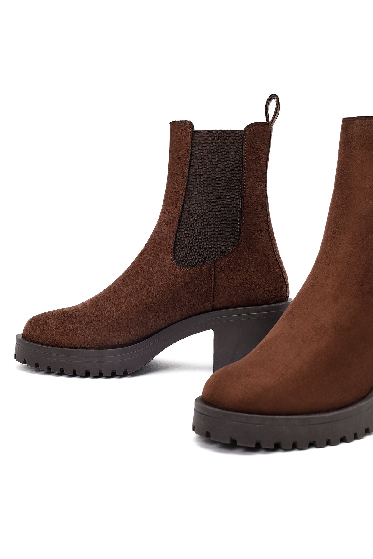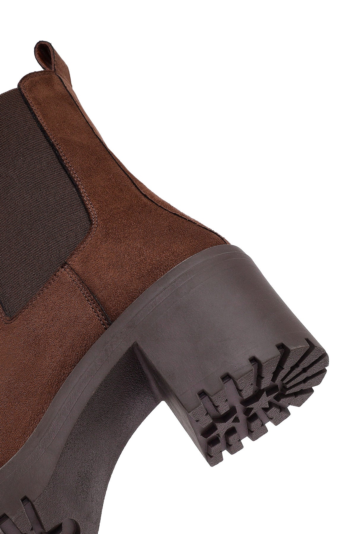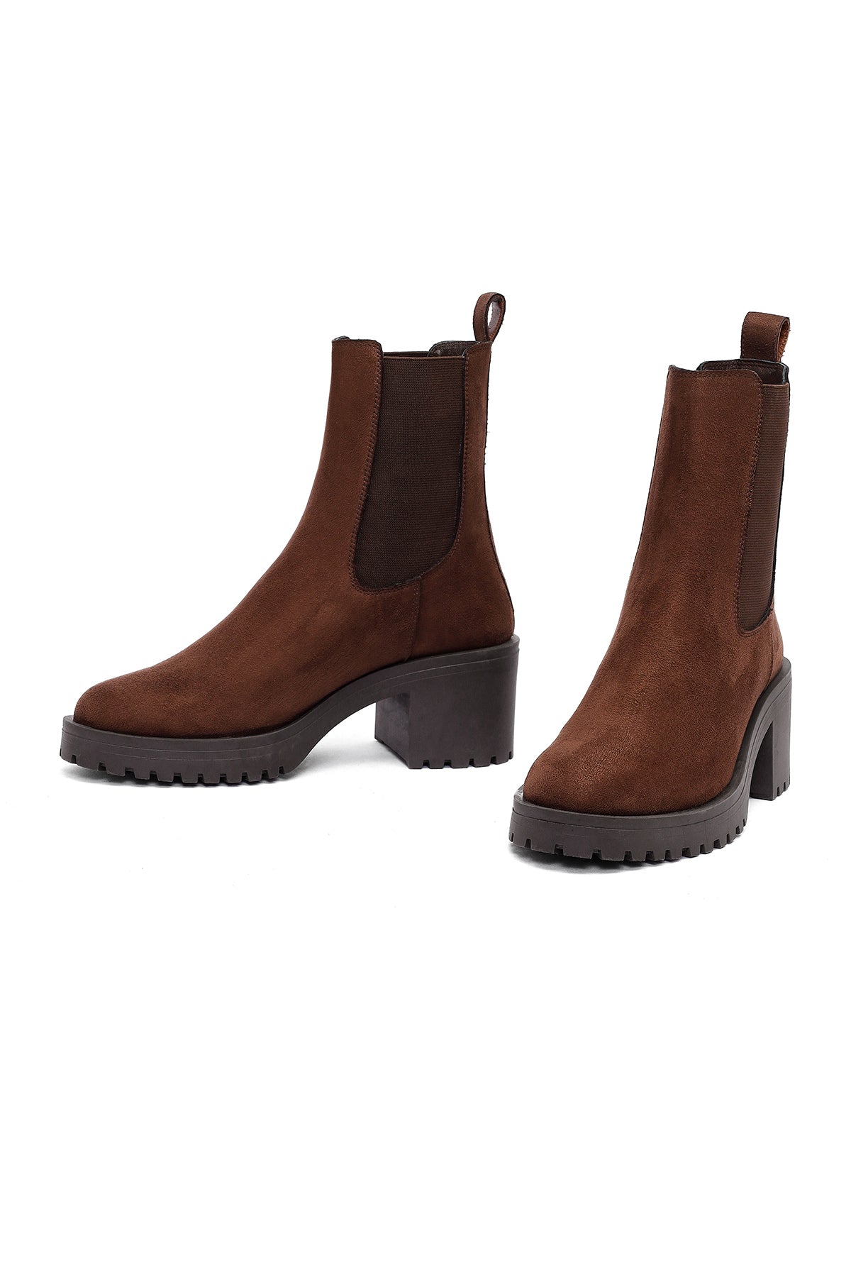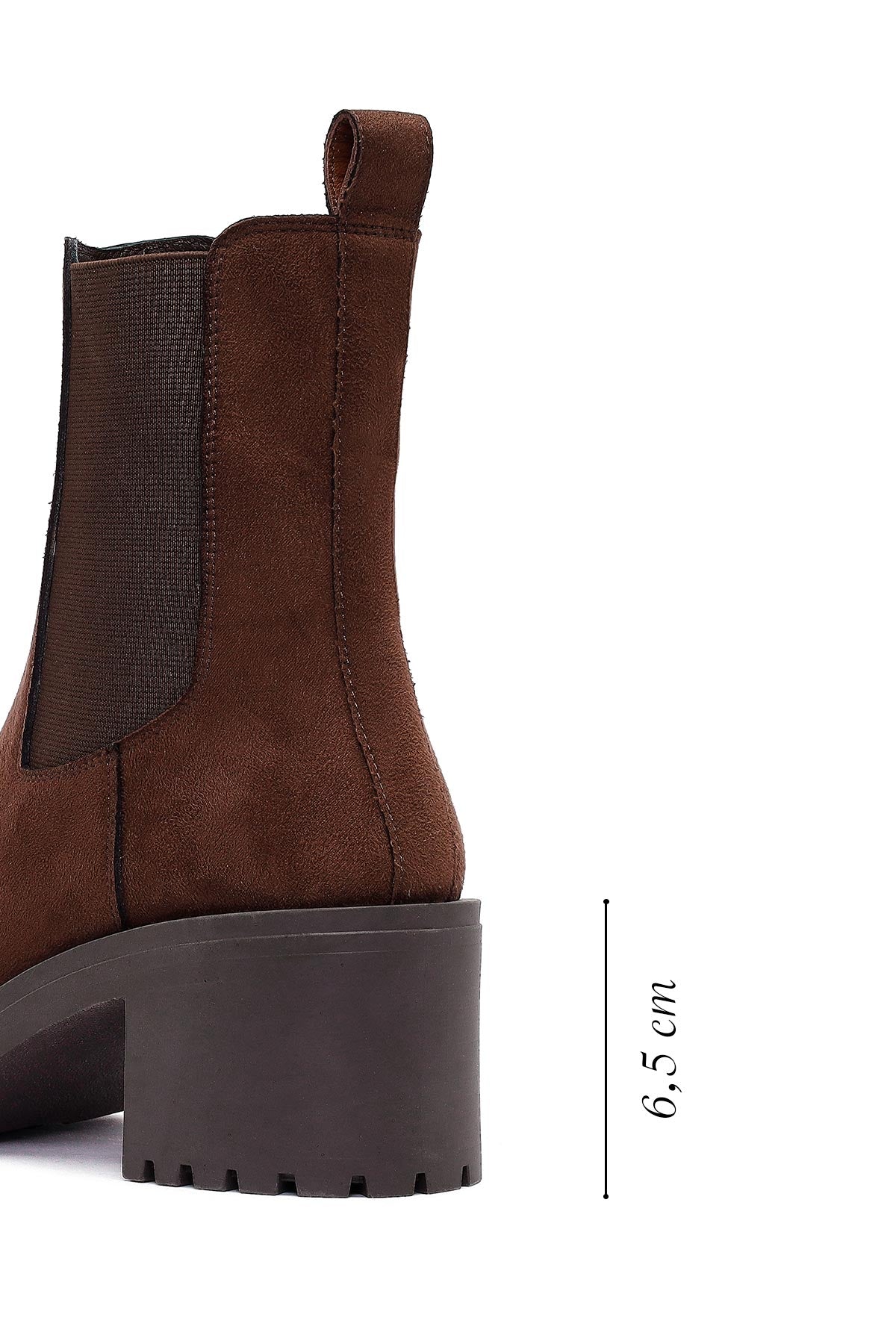 Derimod'un kış koleksiyonundan, süet dokusuyla göz alıcı bir görünüm sunan kahverengi Chelsea bot modeli, 6,5 cm yüksekliğindeki kalın topuğu ile modern bir tasarım sunuyor. Yanlardaki elastik detayları ile kolay giyim sağlayan model, tekstil iç astarı ile kış şartlarına uygun bir kullanım sunuyor. Kalın taban yapısı ile yağmurlu ve karlı havalarda güvenli yürüyüş sağlayan bot, pantolonlardan eteklere, elbiselerden günlük kombinlere kadar geniş bir kullanım alanı sunuyor. Sonbahar ve kış mevsimlerinde günün her saatinde kullanılabilir. Ürün kodu: 25WFE251610