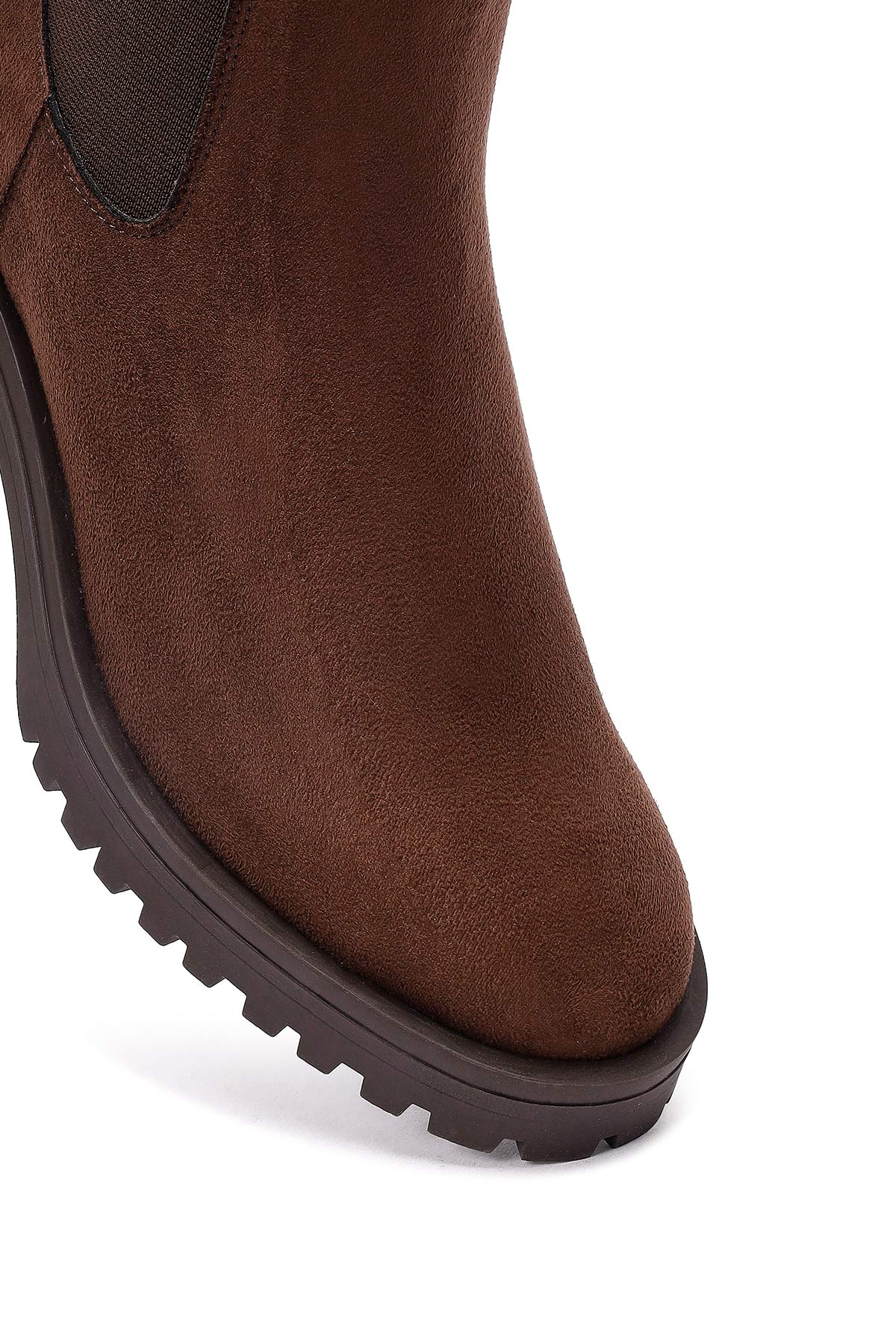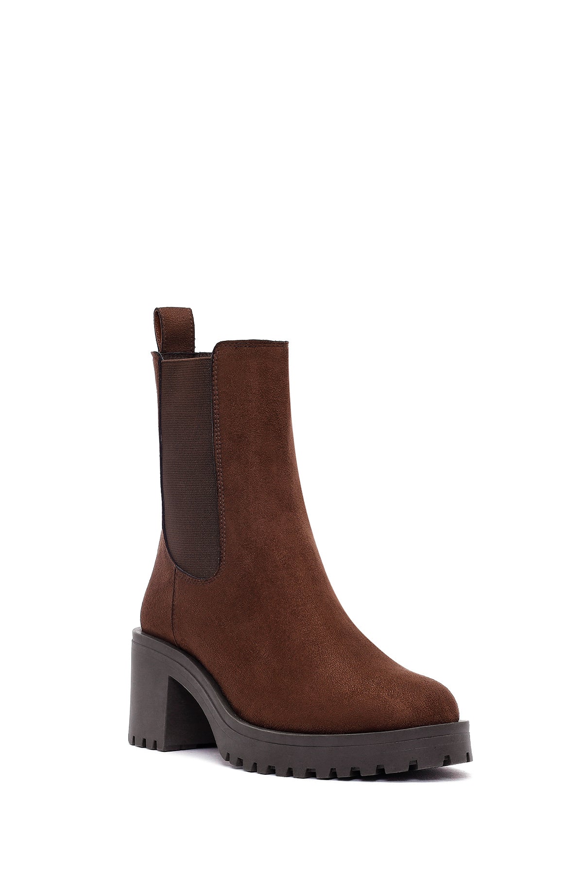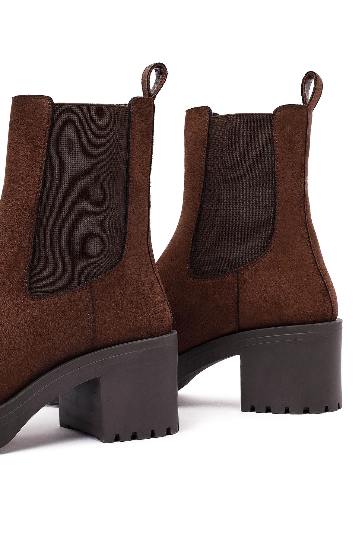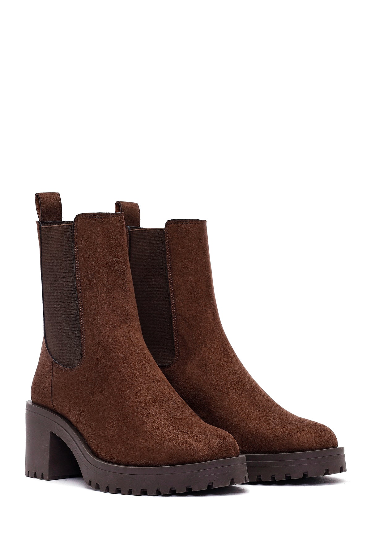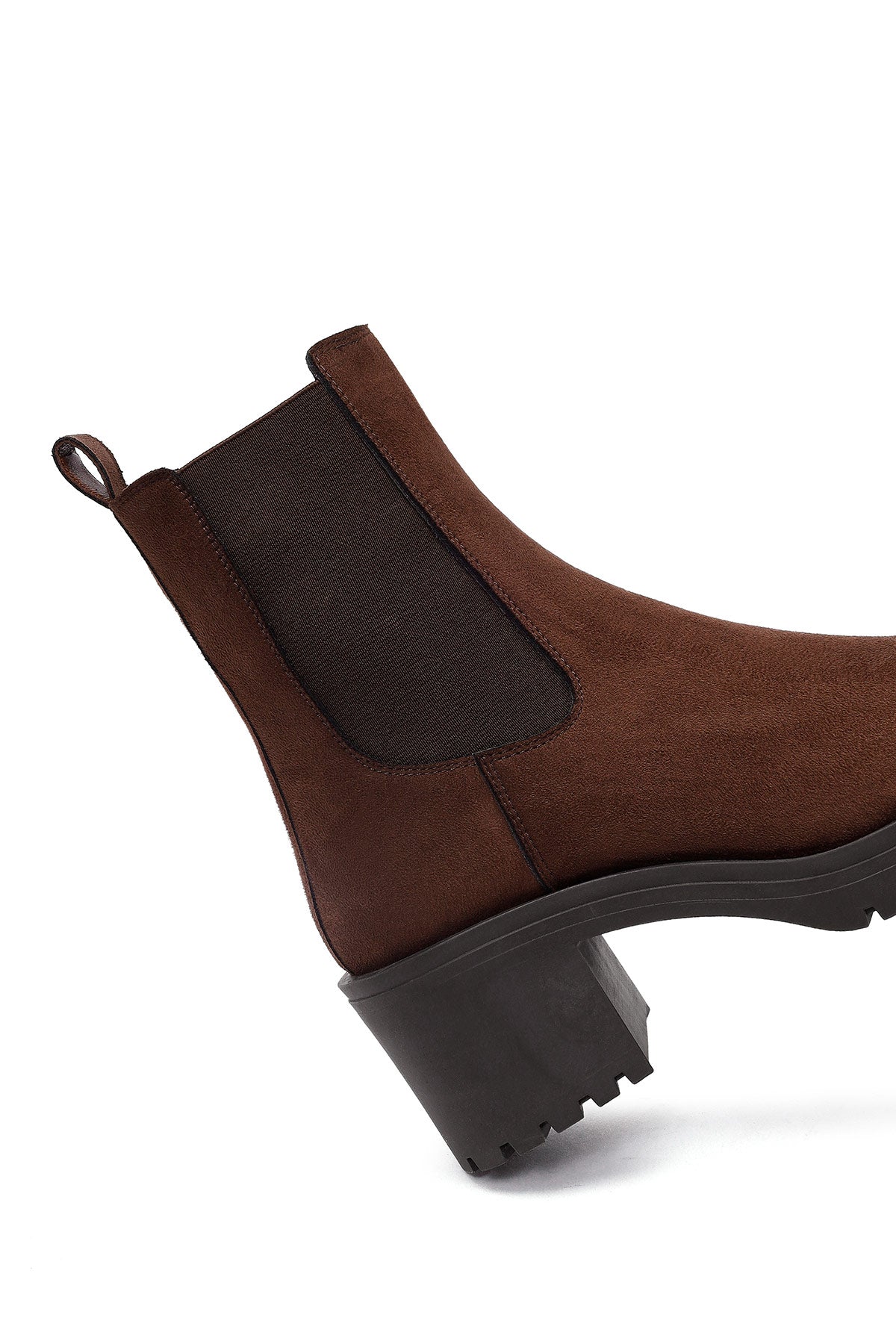 Derimod'un kış koleksiyonundan, süet dokusuyla göz alıcı bir görünüm sunan kahverengi Chelsea bot modeli, 6,5 cm yüksekliğindeki kalın topuğu ile modern bir tasarım sunuyor. Yanlardaki elastik detayları ile kolay giyim sağlayan model, tekstil iç astarı ile kış şartlarına uygun bir kullanım sunuyor. Kalın taban yapısı ile yağmurlu ve karlı havalarda güvenli yürüyüş sağlayan bot, pantolonlardan eteklere, elbiselerden günlük kombinlere kadar geniş bir kullanım alanı sunuyor. Sonbahar ve kış mevsimlerinde günün her saatinde kullanılabilir. Ürün kodu: 25WFE251610