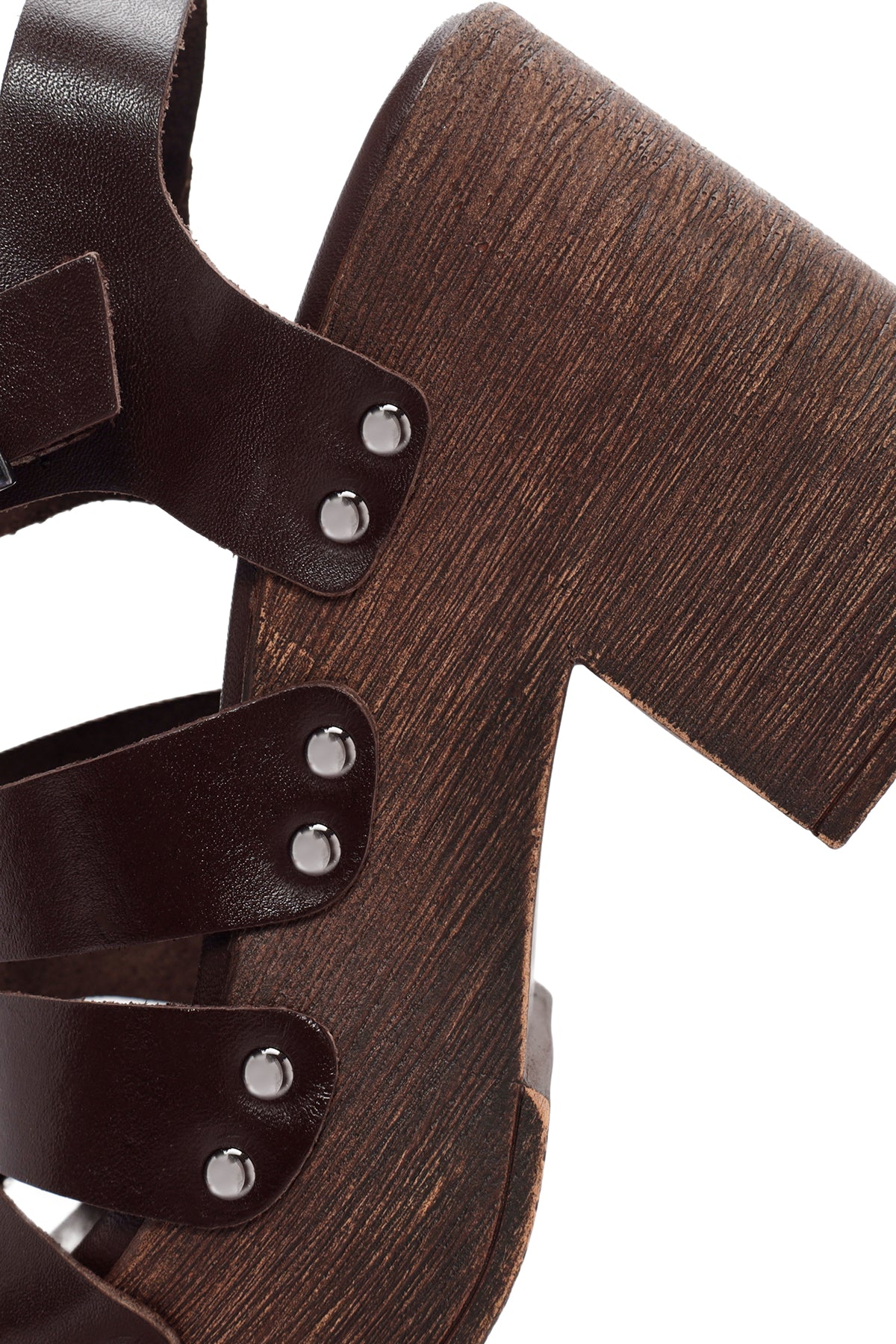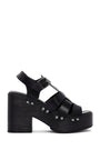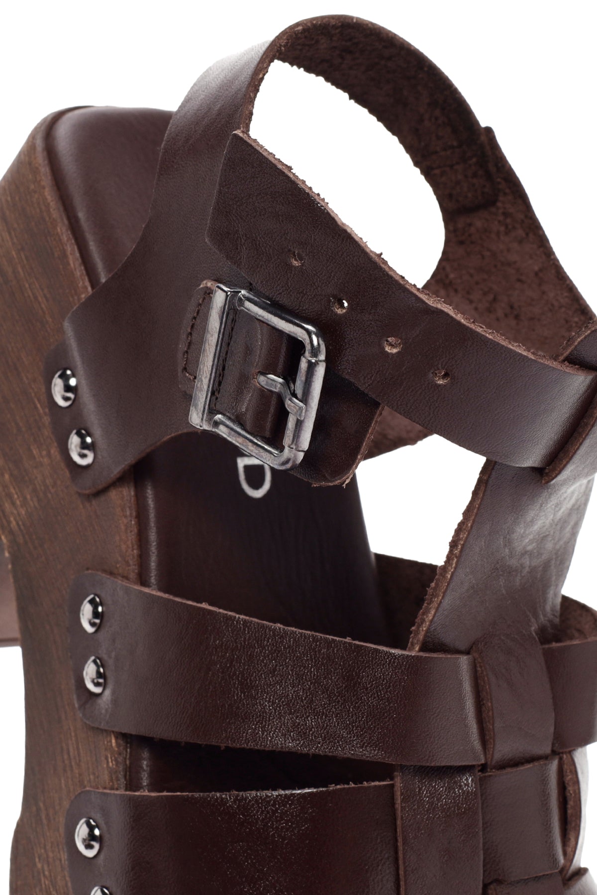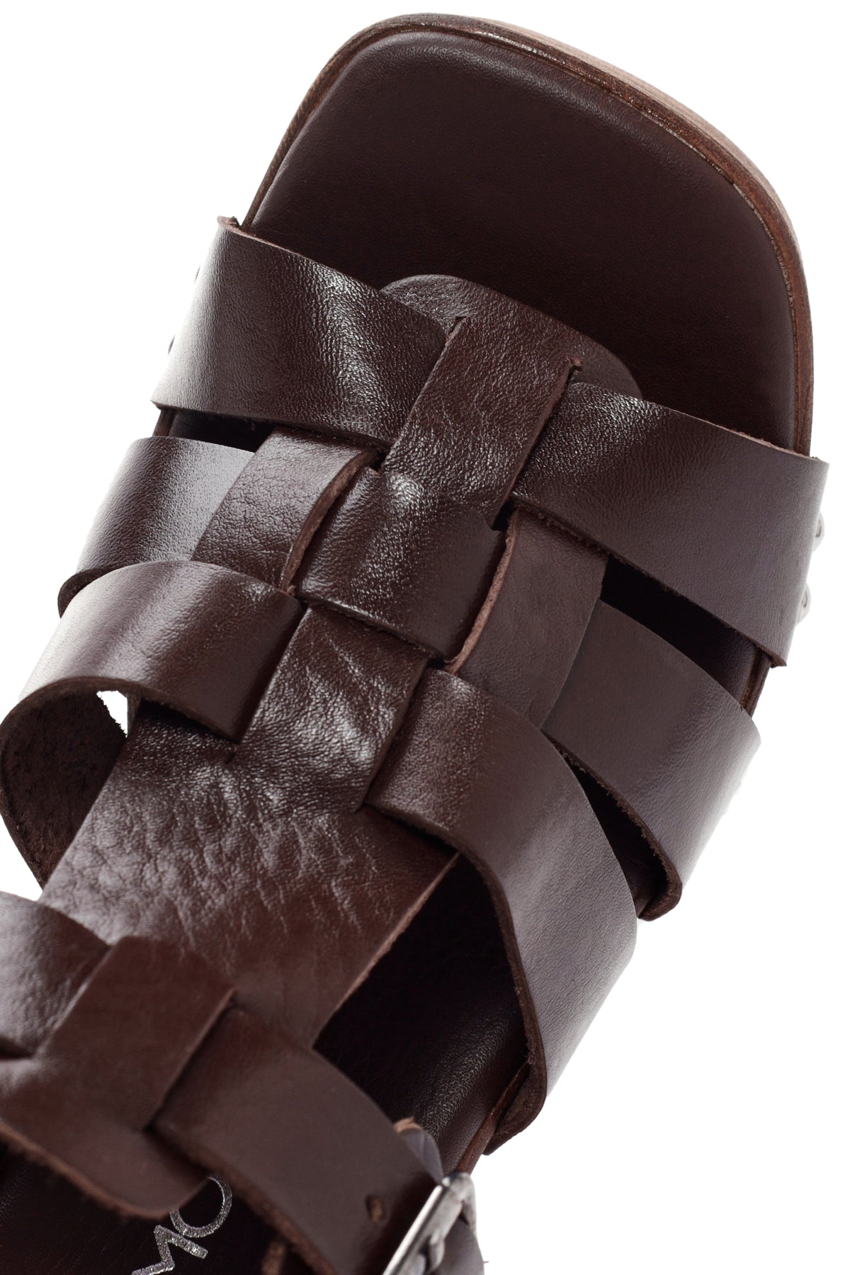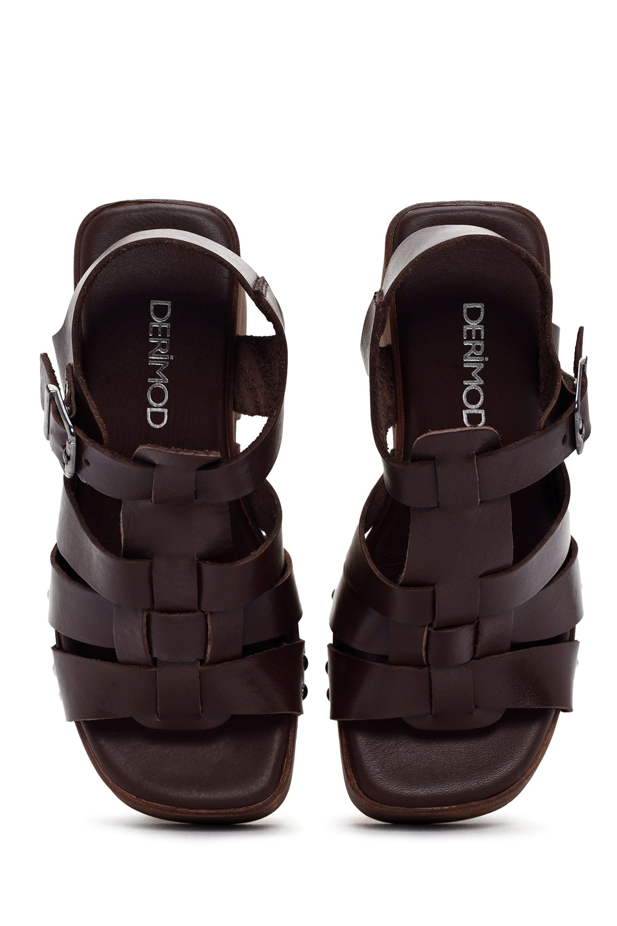 Kadın Kahverengi Kalın Topuklu Tokalı Deri Sandalet