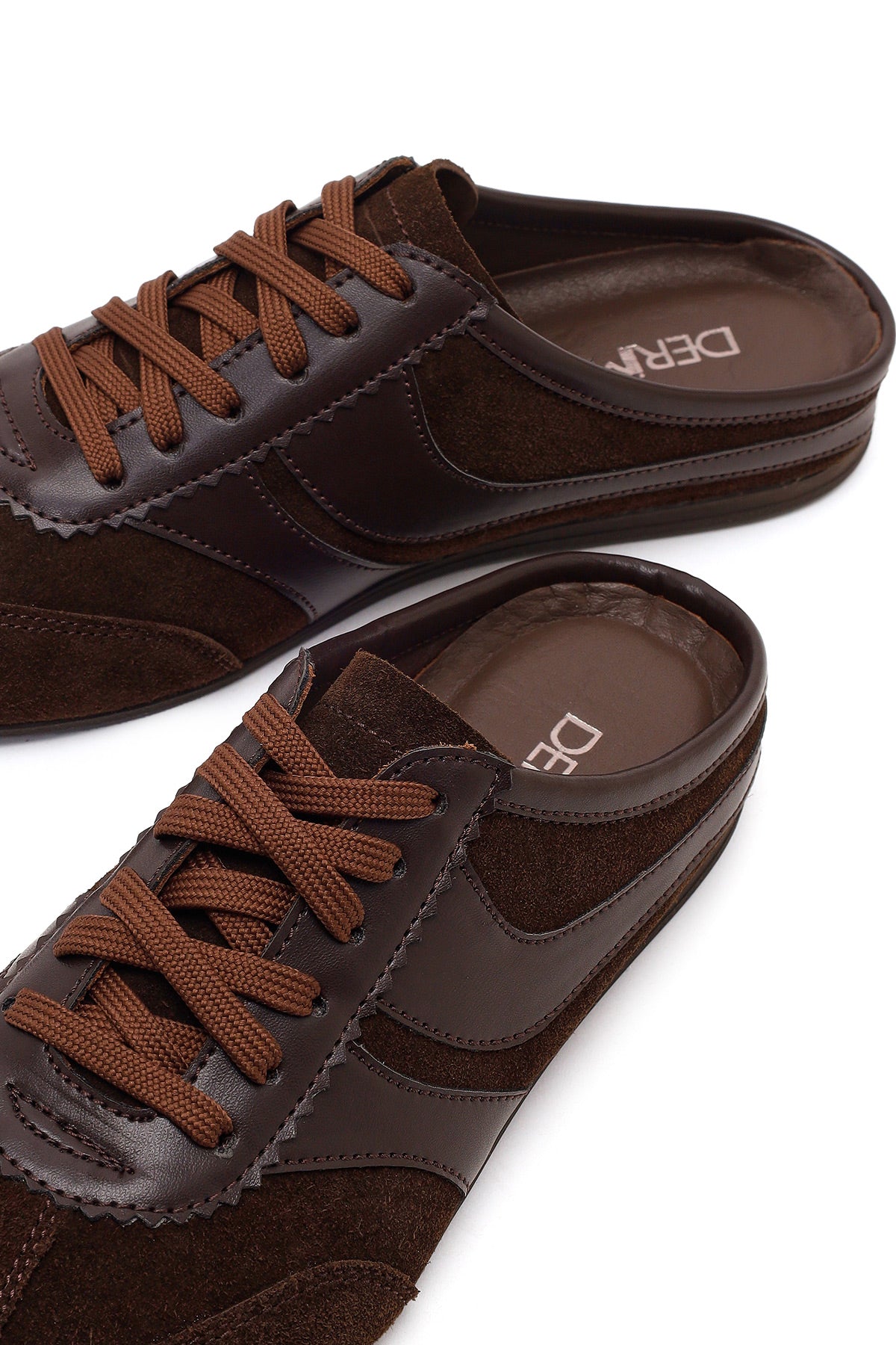 Derimod’un Zarif ve Şıklığı bir arada sunan Kadın Kahverengi Mule Arkası Açık Süet Deri Sneaker ile tarzınızı konuşturun. Ürünün kodu: 26PFD220514 25