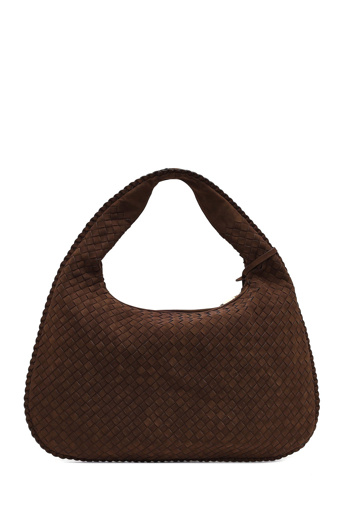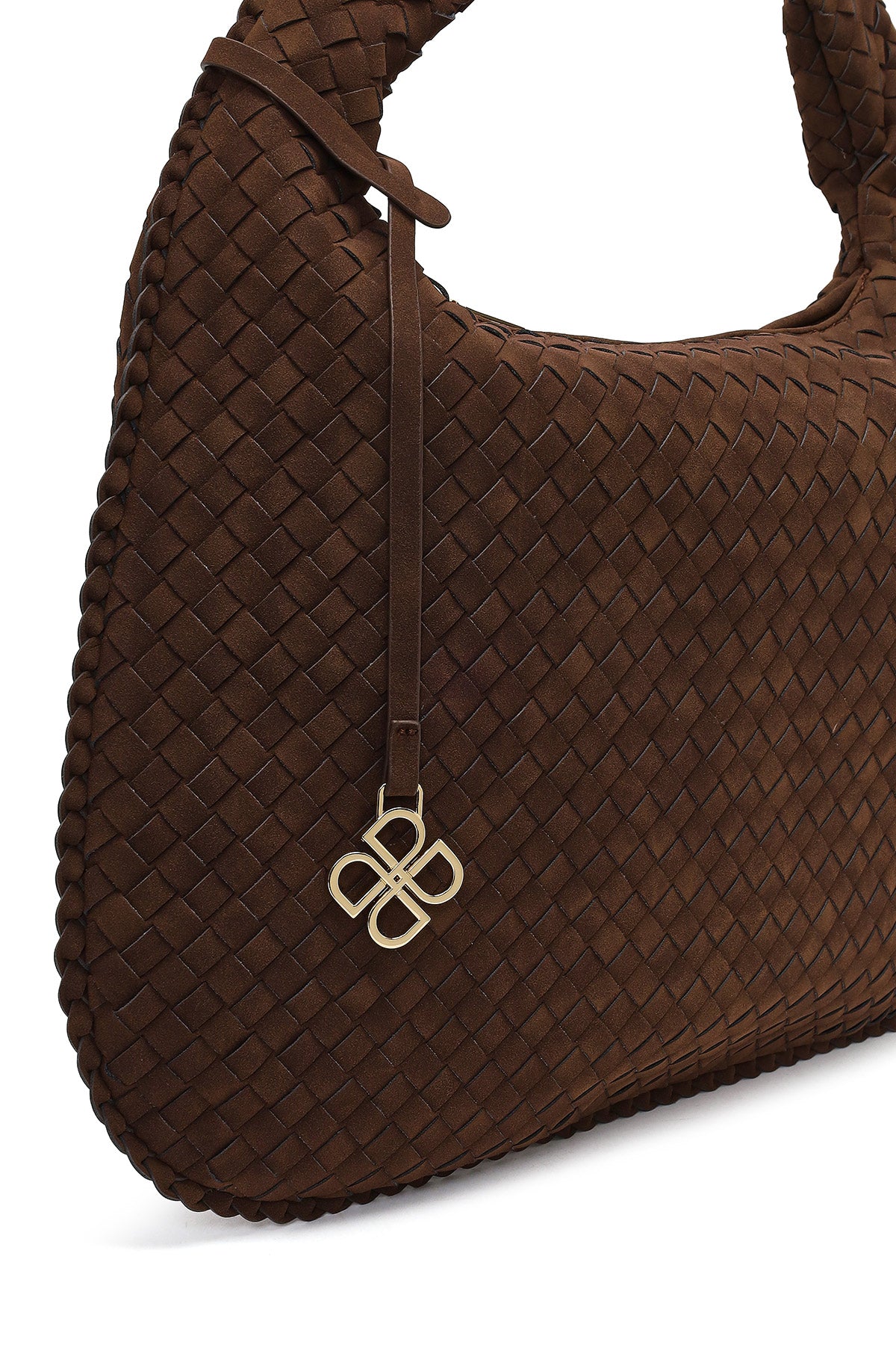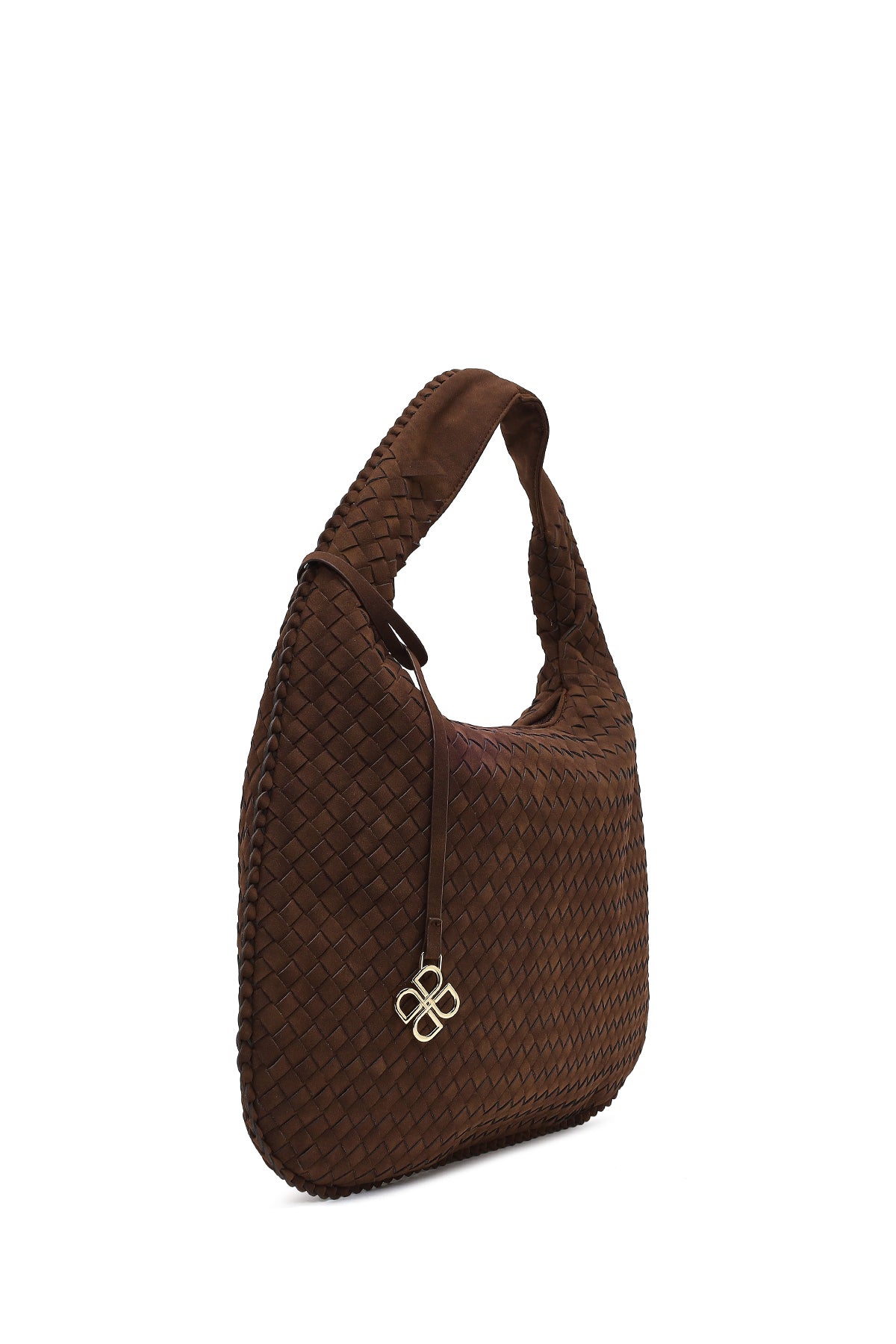 Kadın Kahverengi Örgülü Süet Omuz Çantası