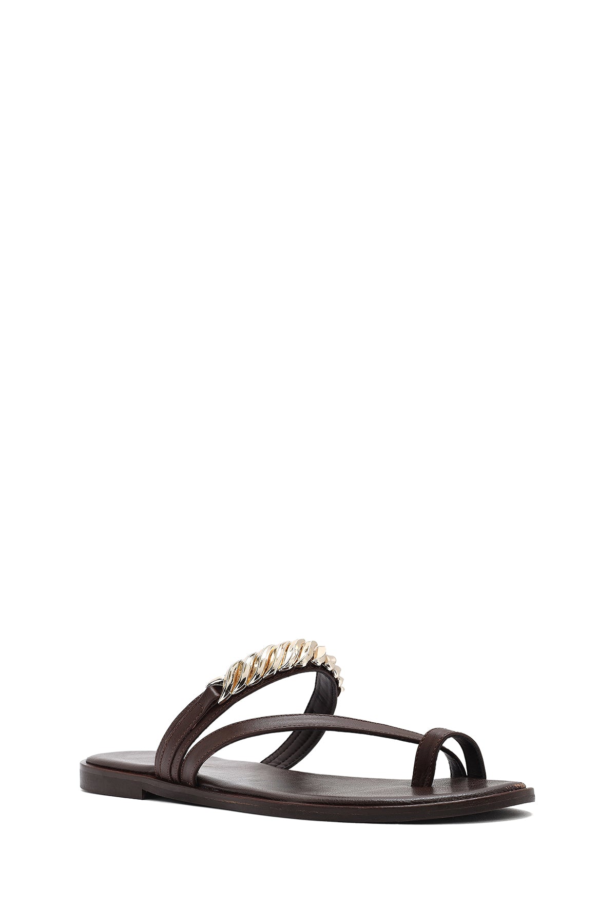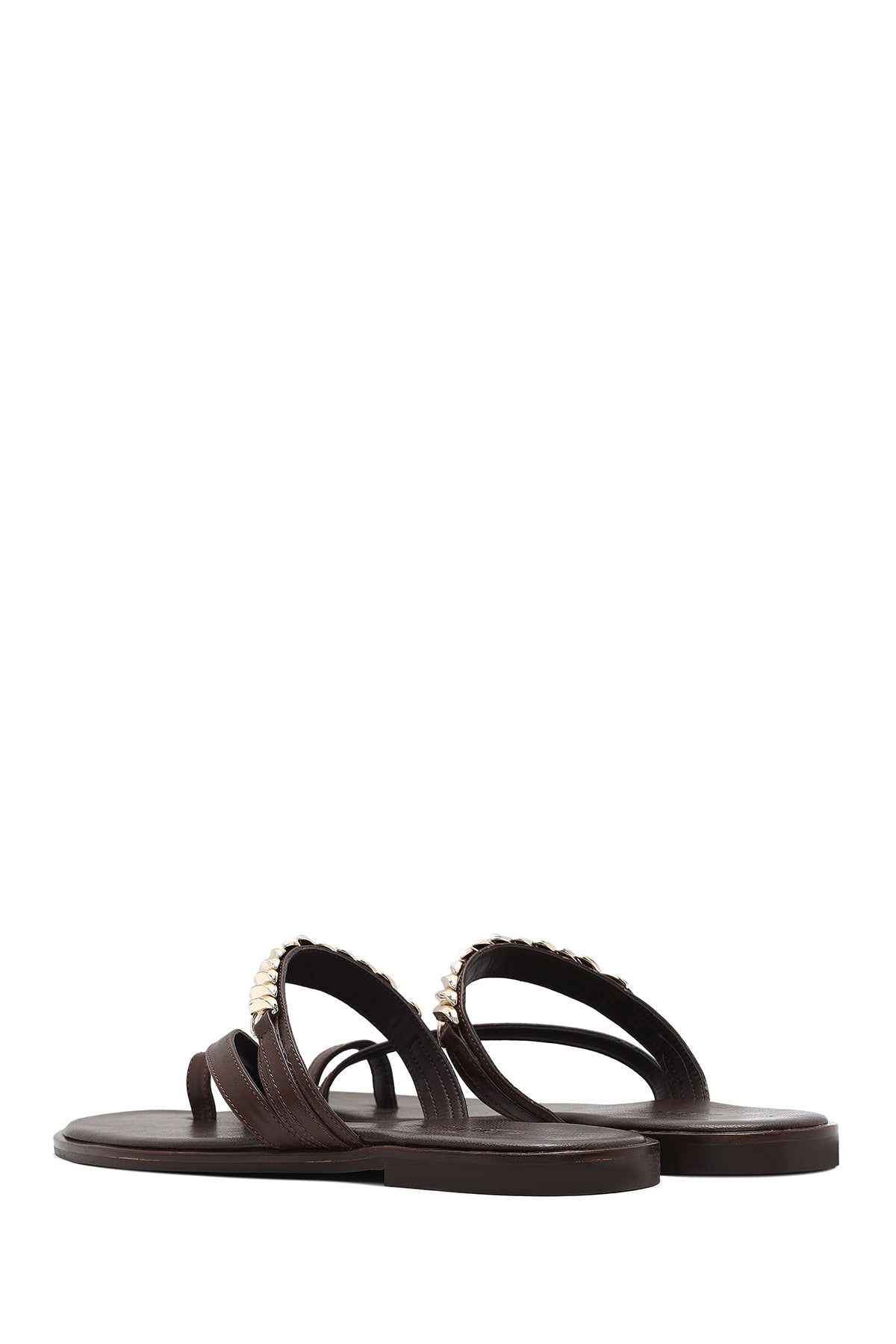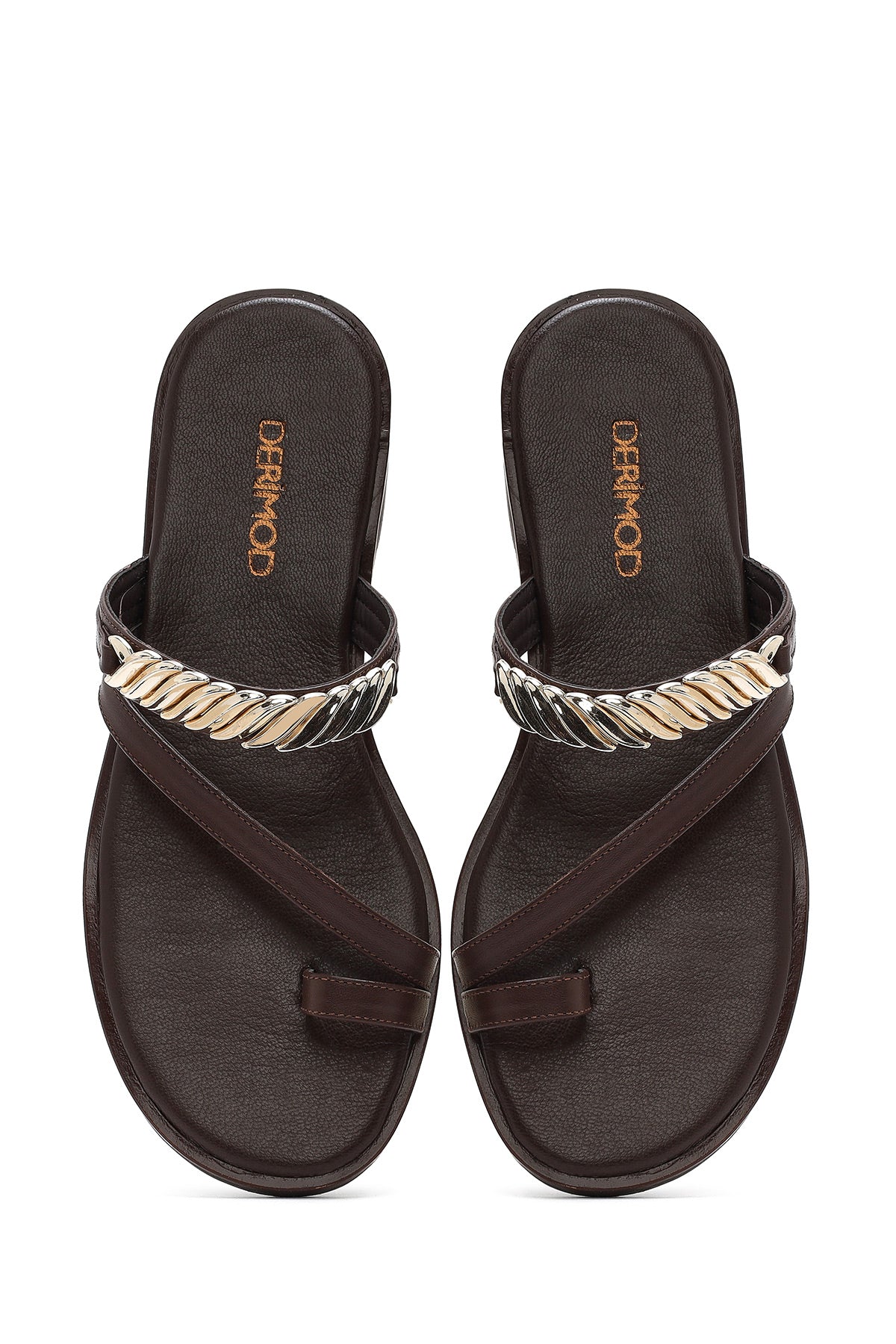 Derimod’un Zarifliği ve Şıklığı bir arada sunan Kadın Kahverengi Taşlı Parmak Arası Deri Terlik ile tarzınızı konuşturun. Ürünün kodu: 25SFD160618 25