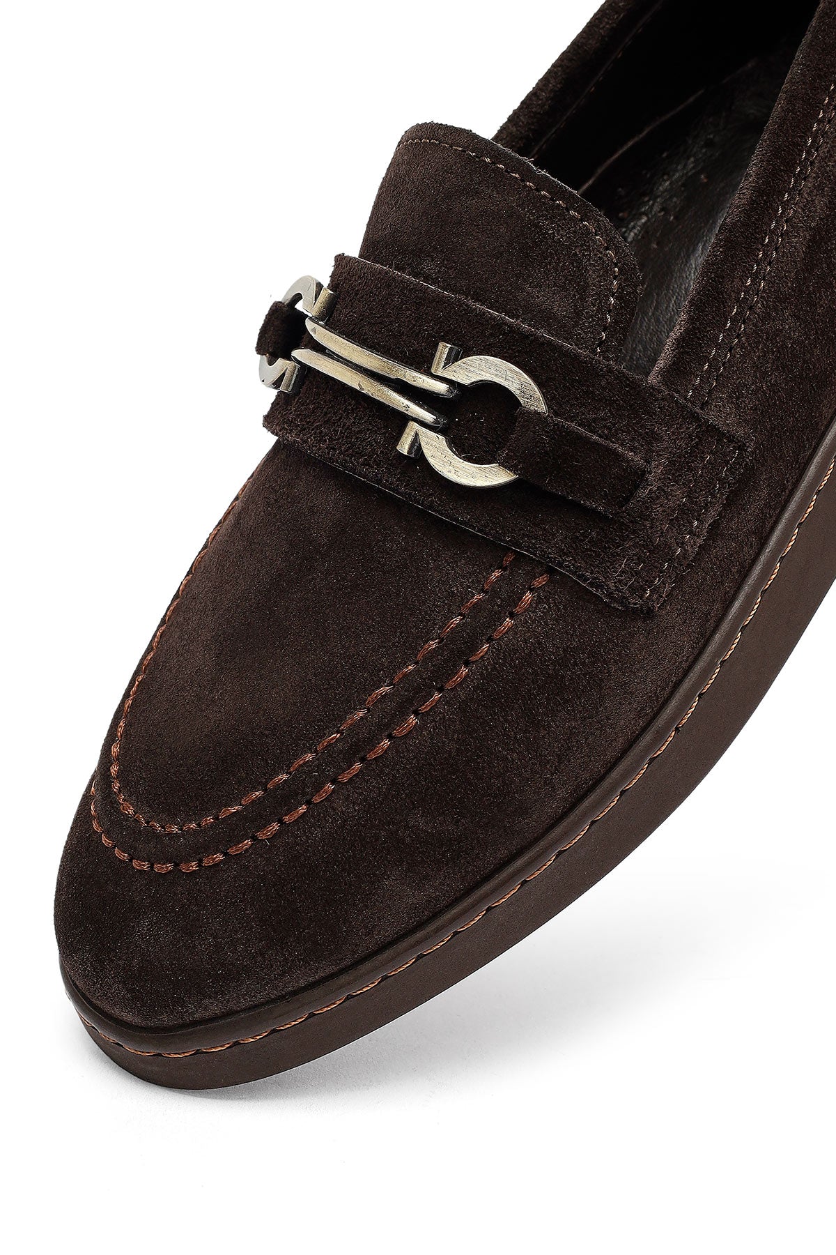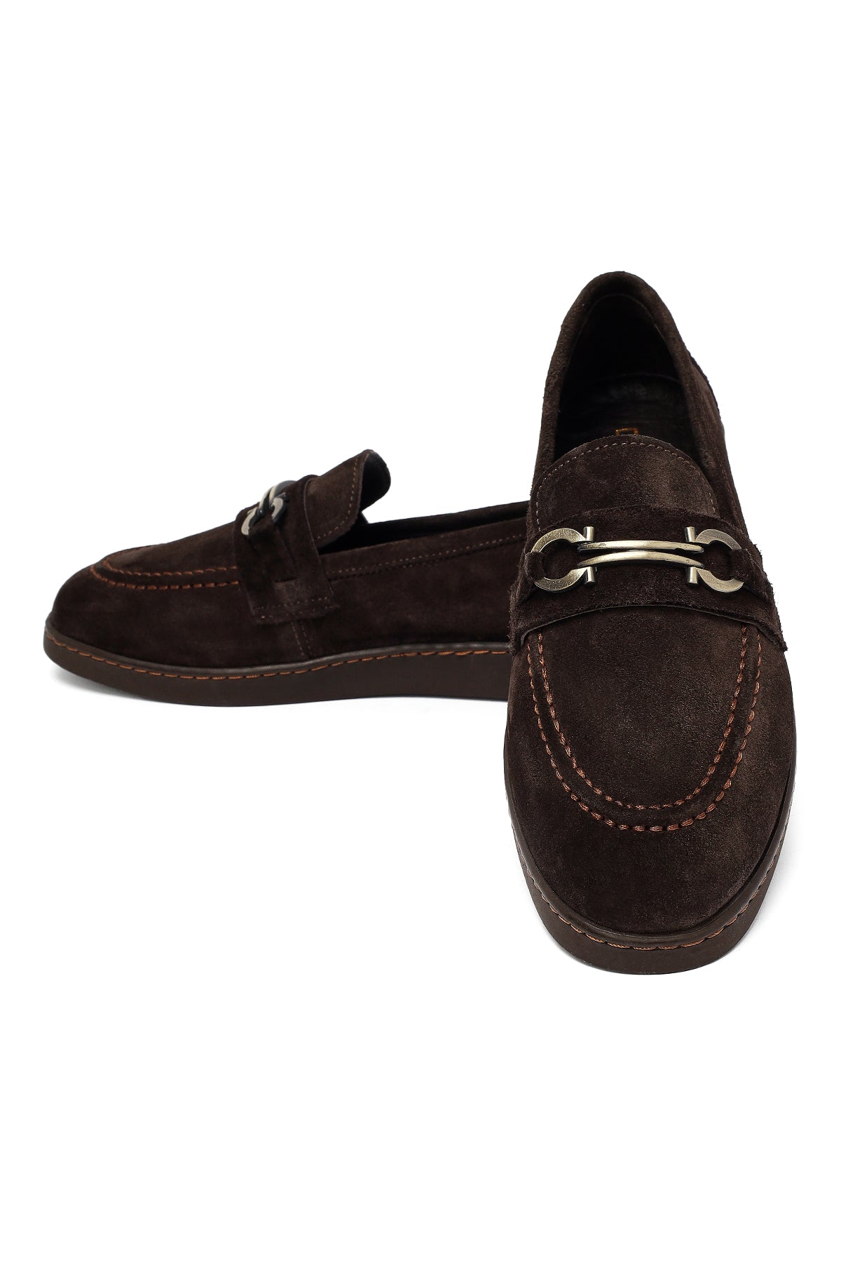 Sonbahar koleksiyonunun zarif loafer modeli, kahverengi süet deri üst yüzeyi ve metal toka detayıyla dikkat çekiyor. Tekstil astar kullanımı ayağın nefes almasını sağlarken, 3 cm yüksekliğindeki taban şık bir görünüm sunuyor. Modern çizgileri ve zamansız tasarımı ile günlük kullanıma uygun. Özellikle sonbahar aylarında, hem casual hem şık giyim kombinleriyle mükemmel uyum sağlıyor. Kullanım alanları: Ofis ortamı, günlük aktiviteler ve şehir gezmeleri için ideal. Ürün kodu: 25AFD204310