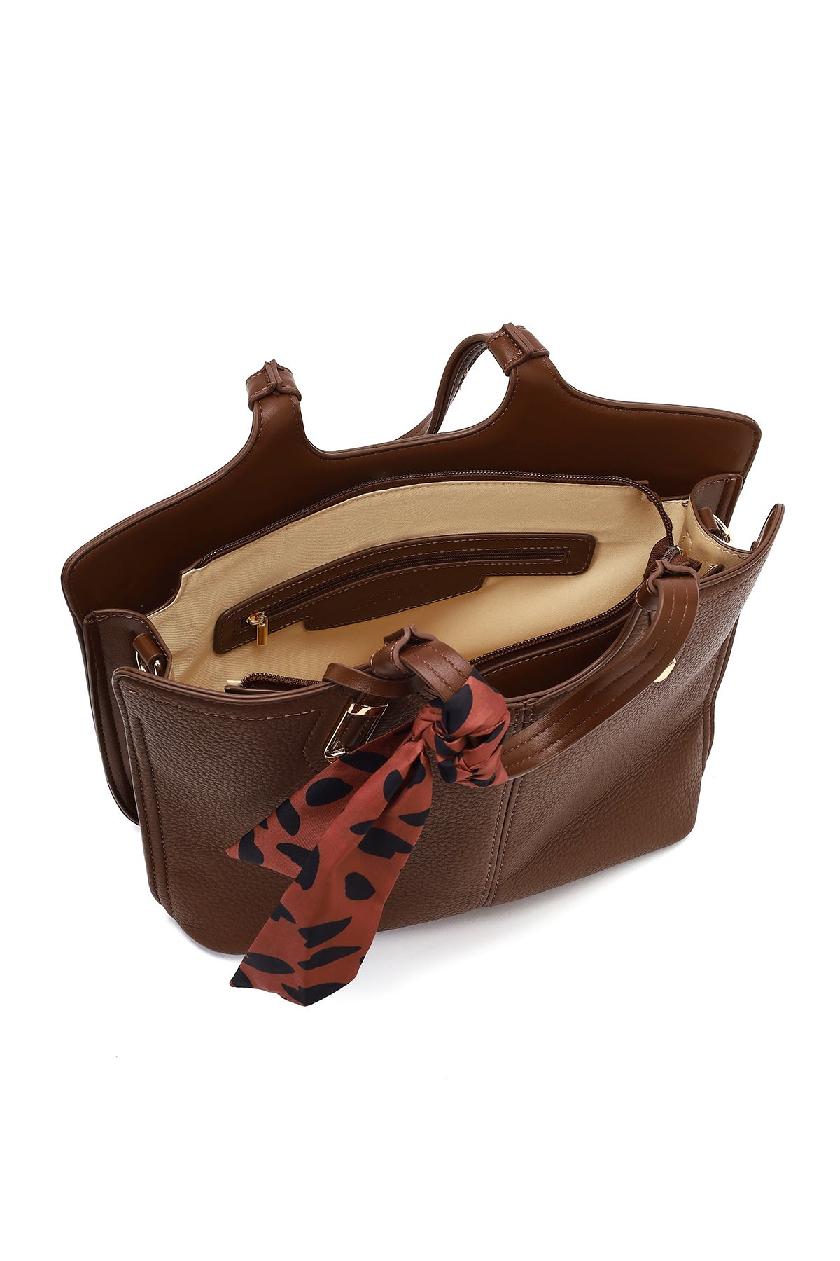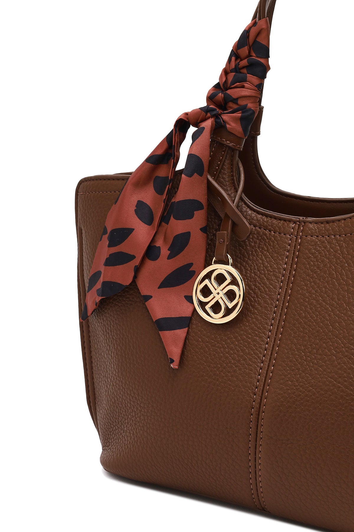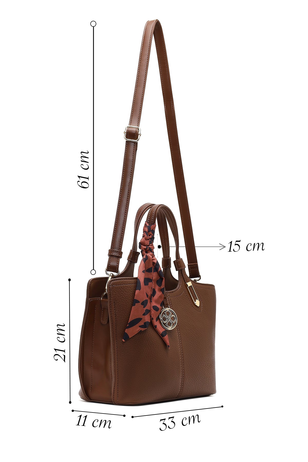 Kadın Kahverengi Uzun Askılı AKsesuarlı Kol Çantası