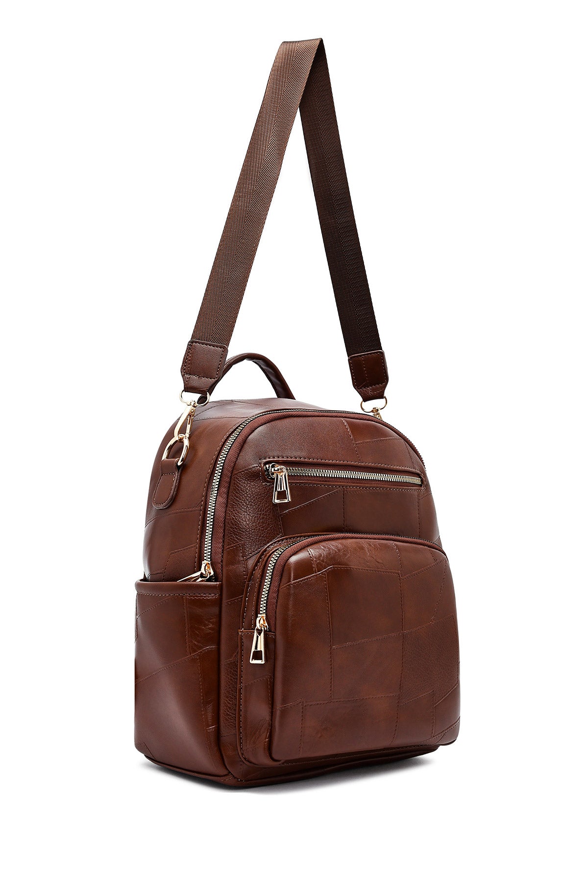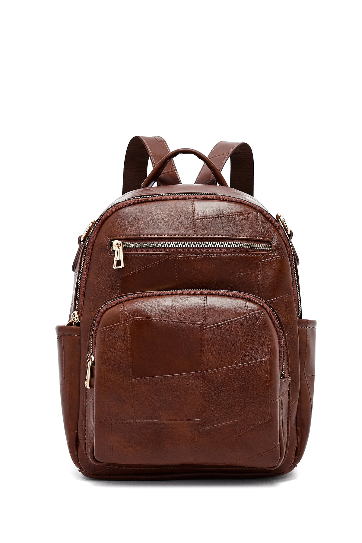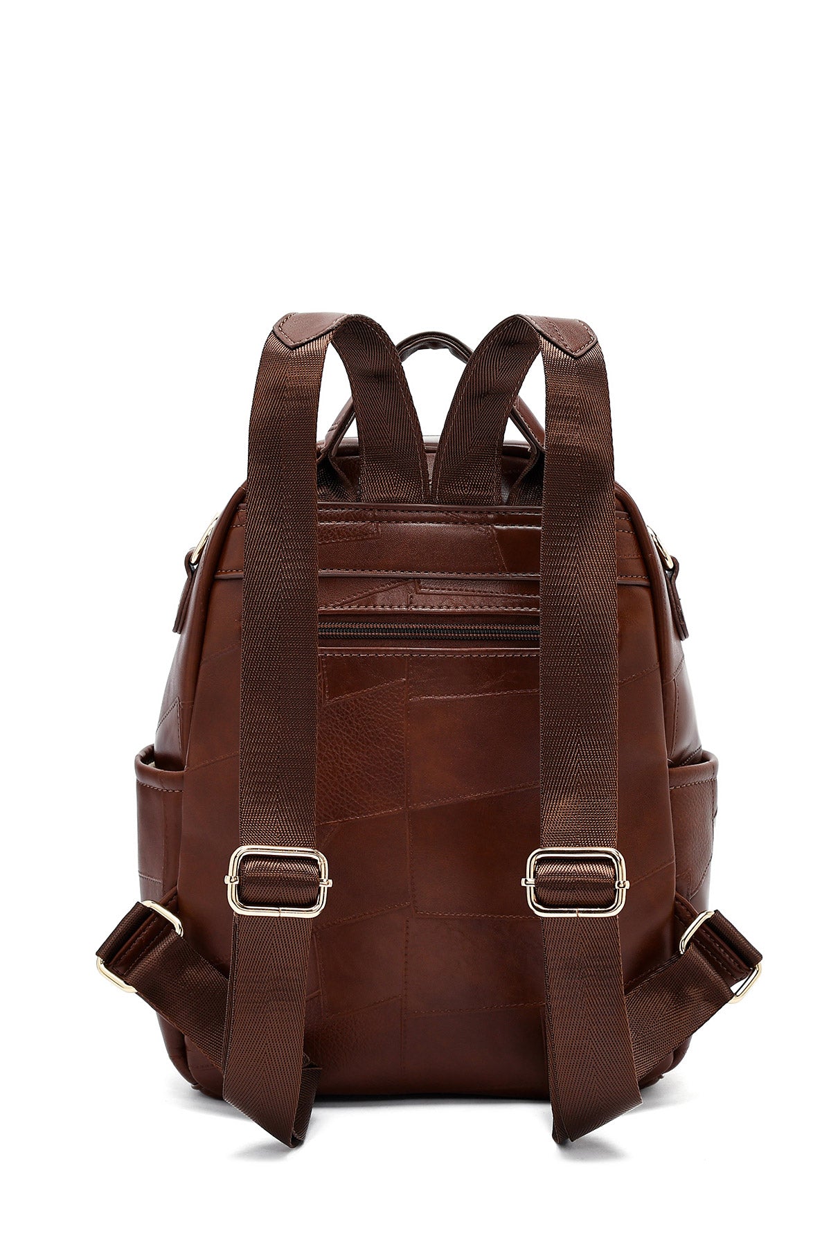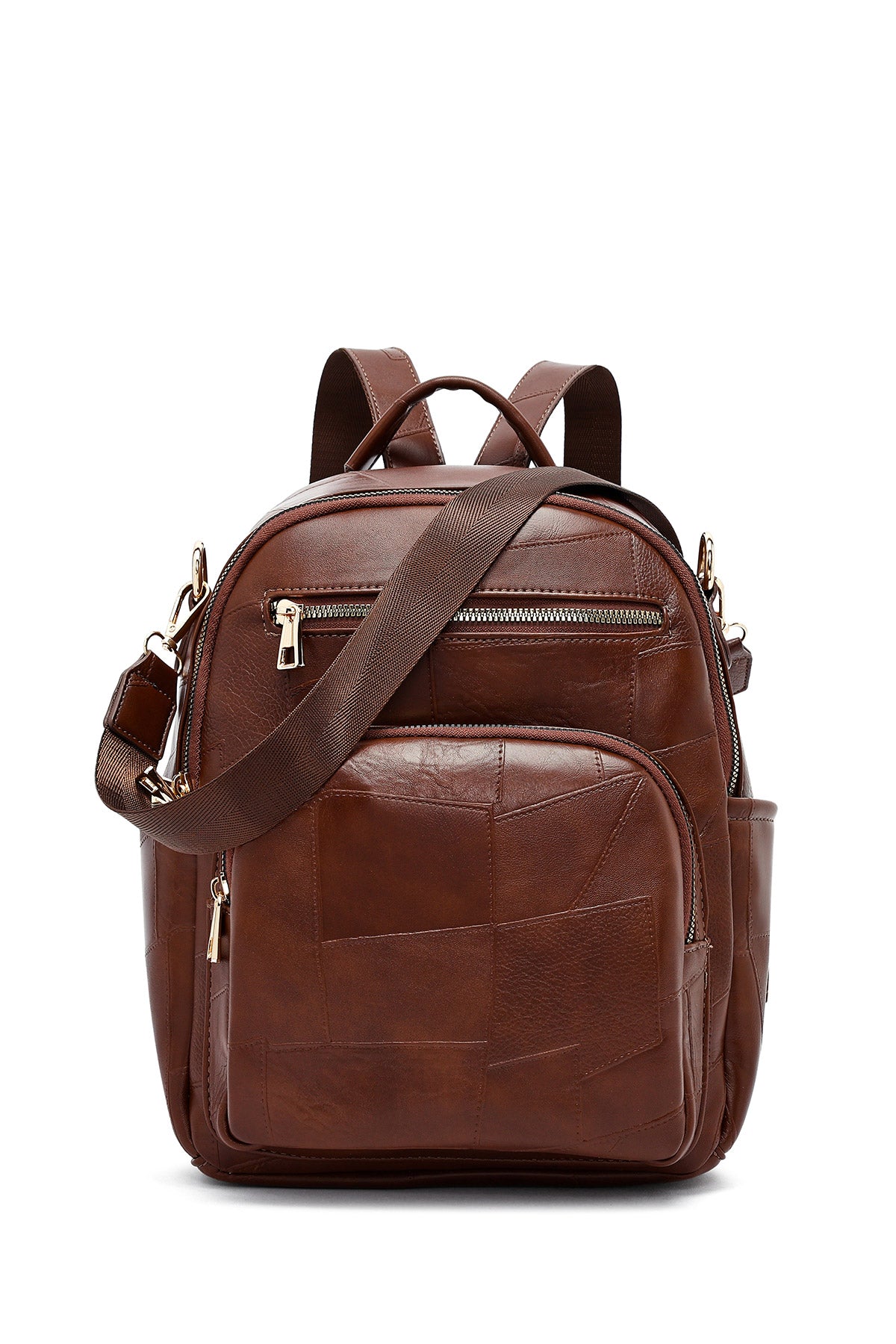 Kadın Kahverengi Uzun Askılı Baskılı Sırt Çantası