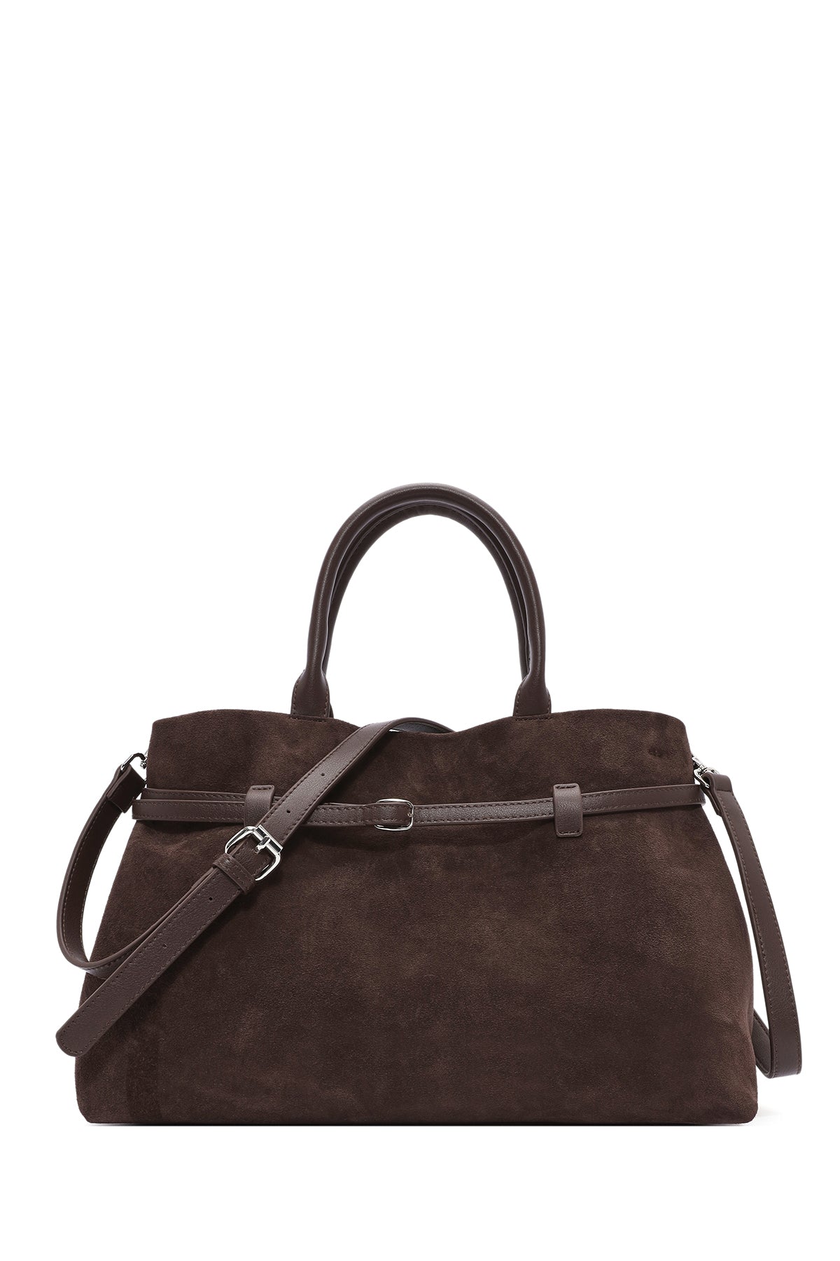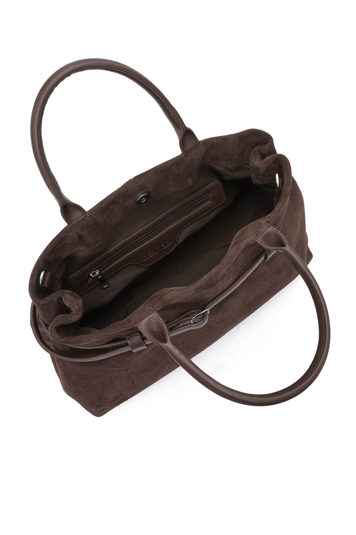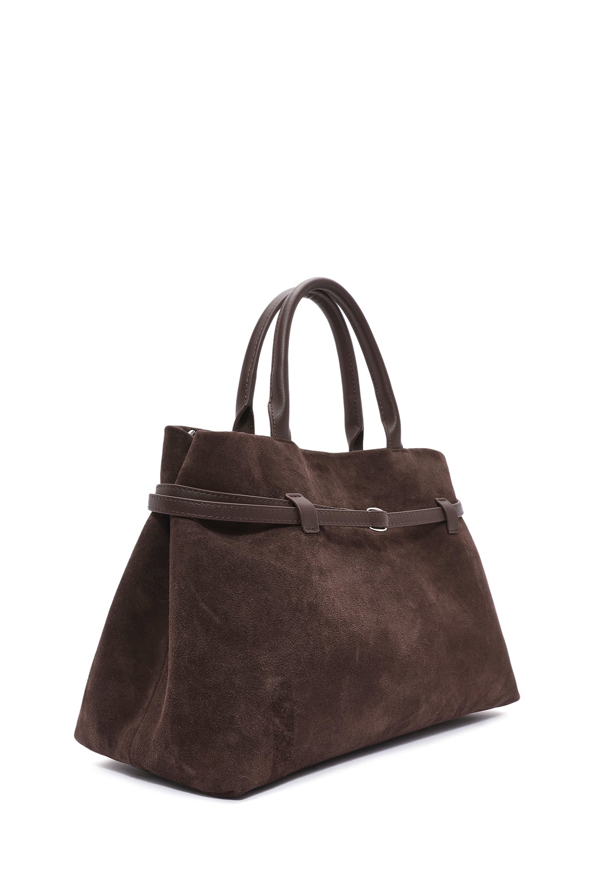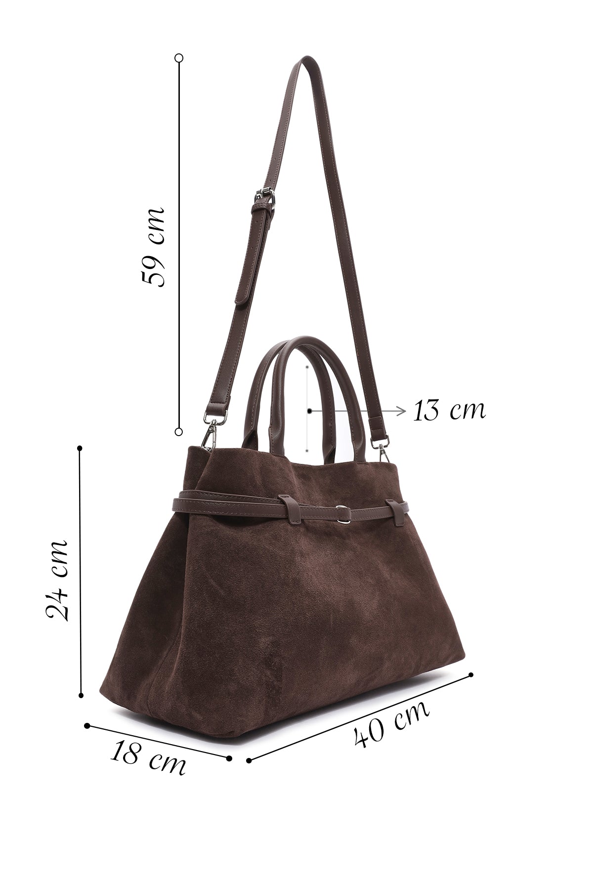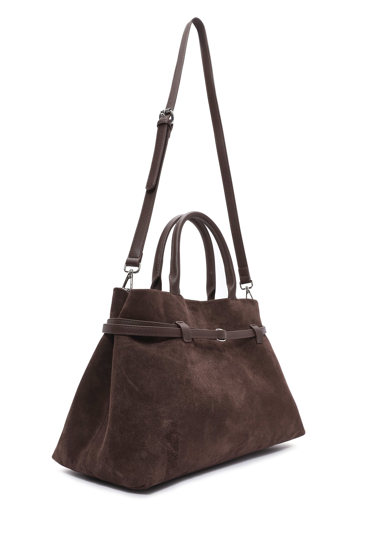 Kadın Kahverengi Uzun Askılı Süet Deri Klasik Kol Çantası