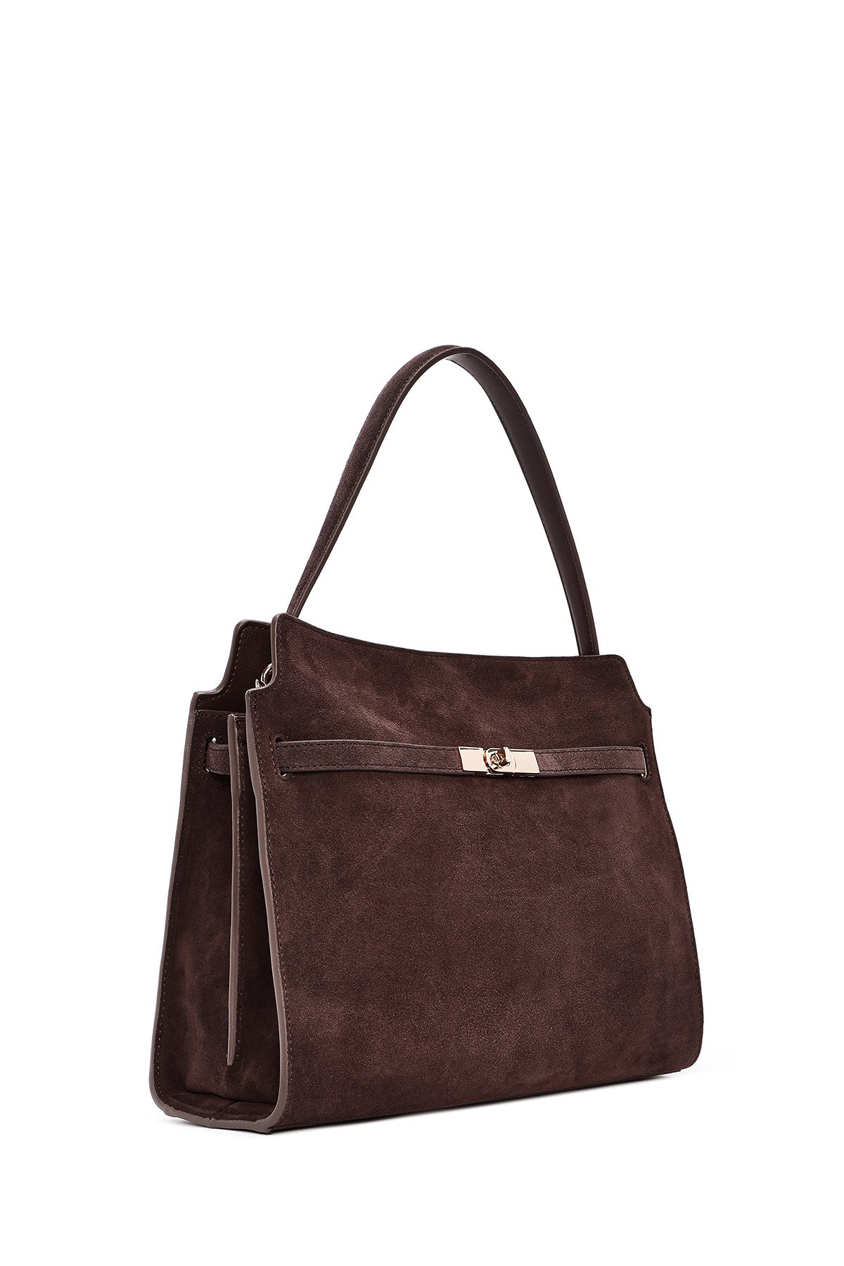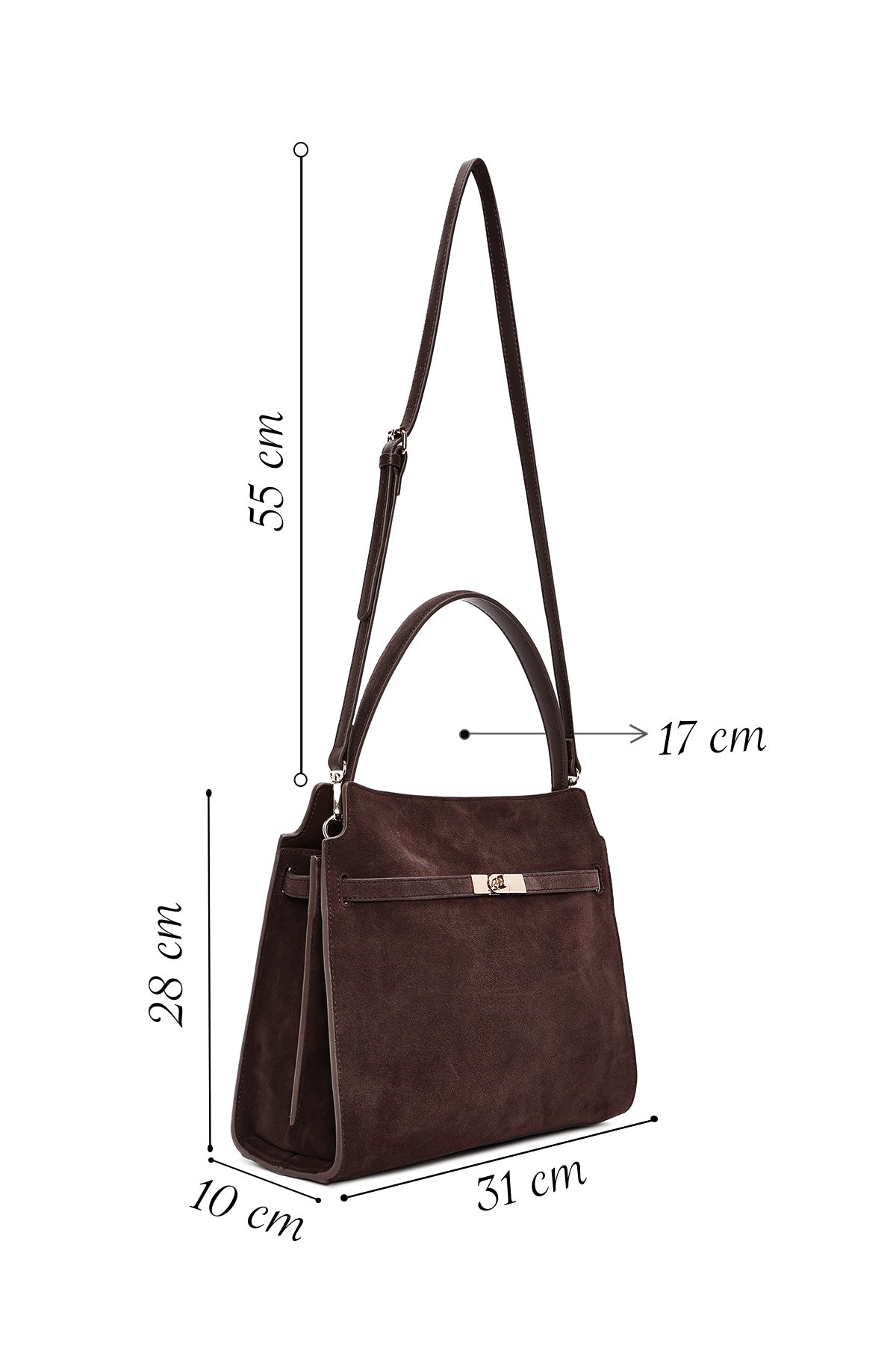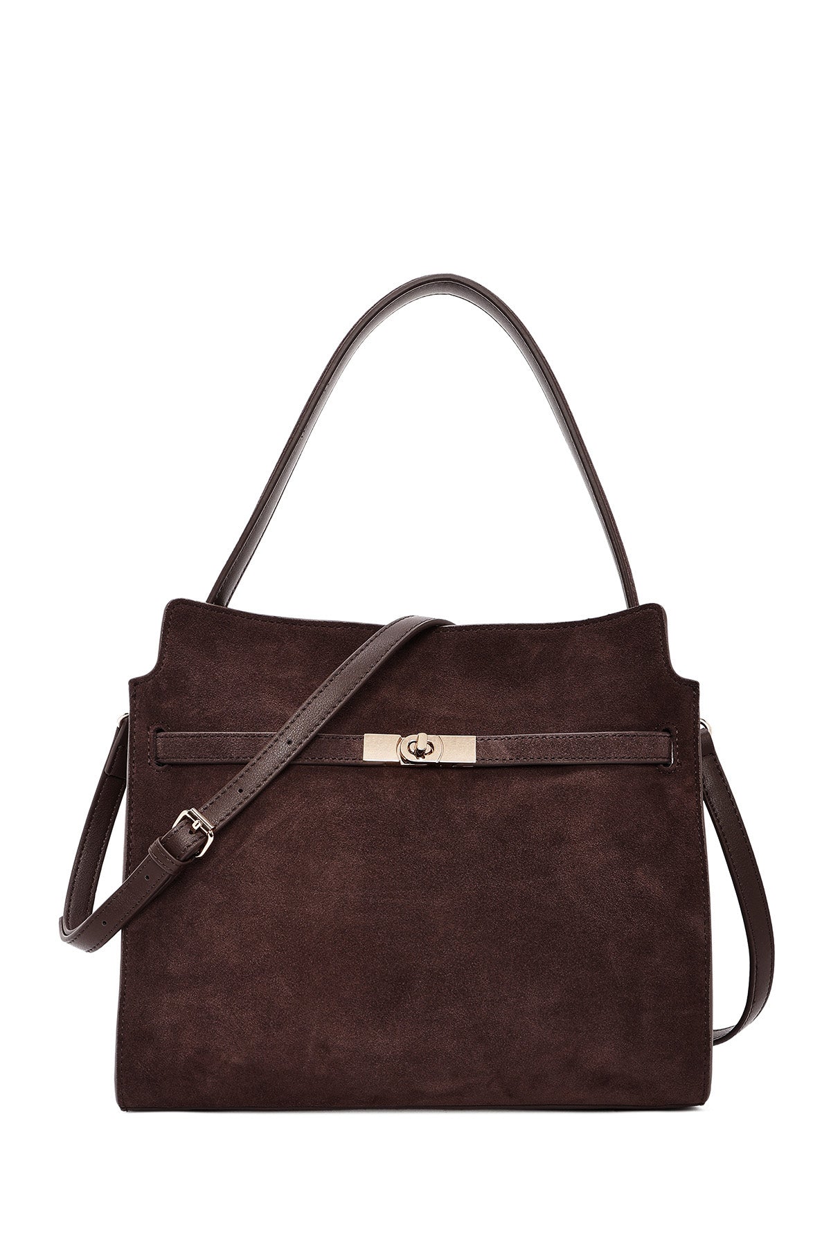 Kadın Kahverengi Uzun Askılı Süet Deri Klasik Omuz Çantası