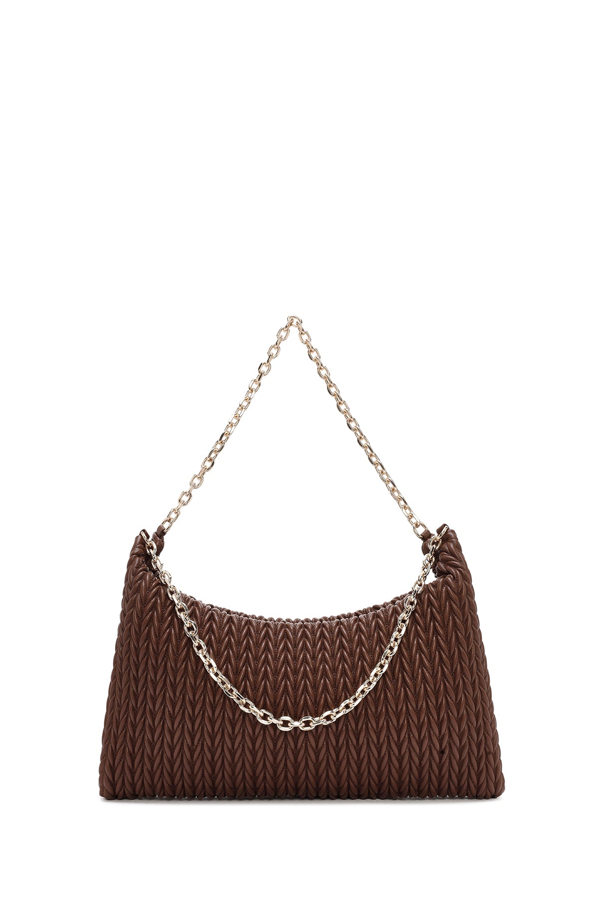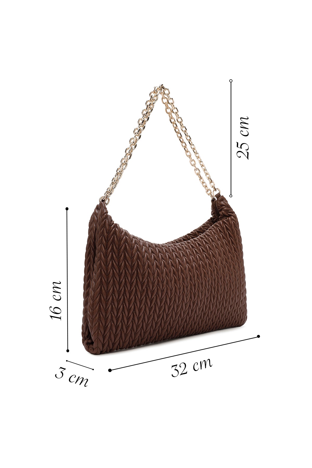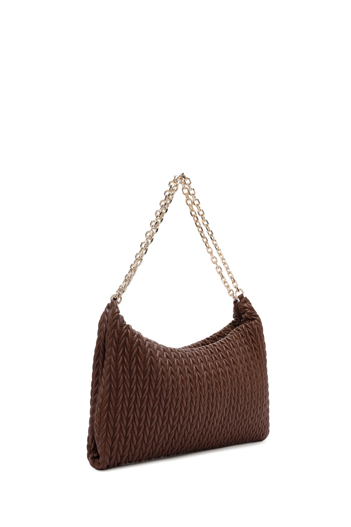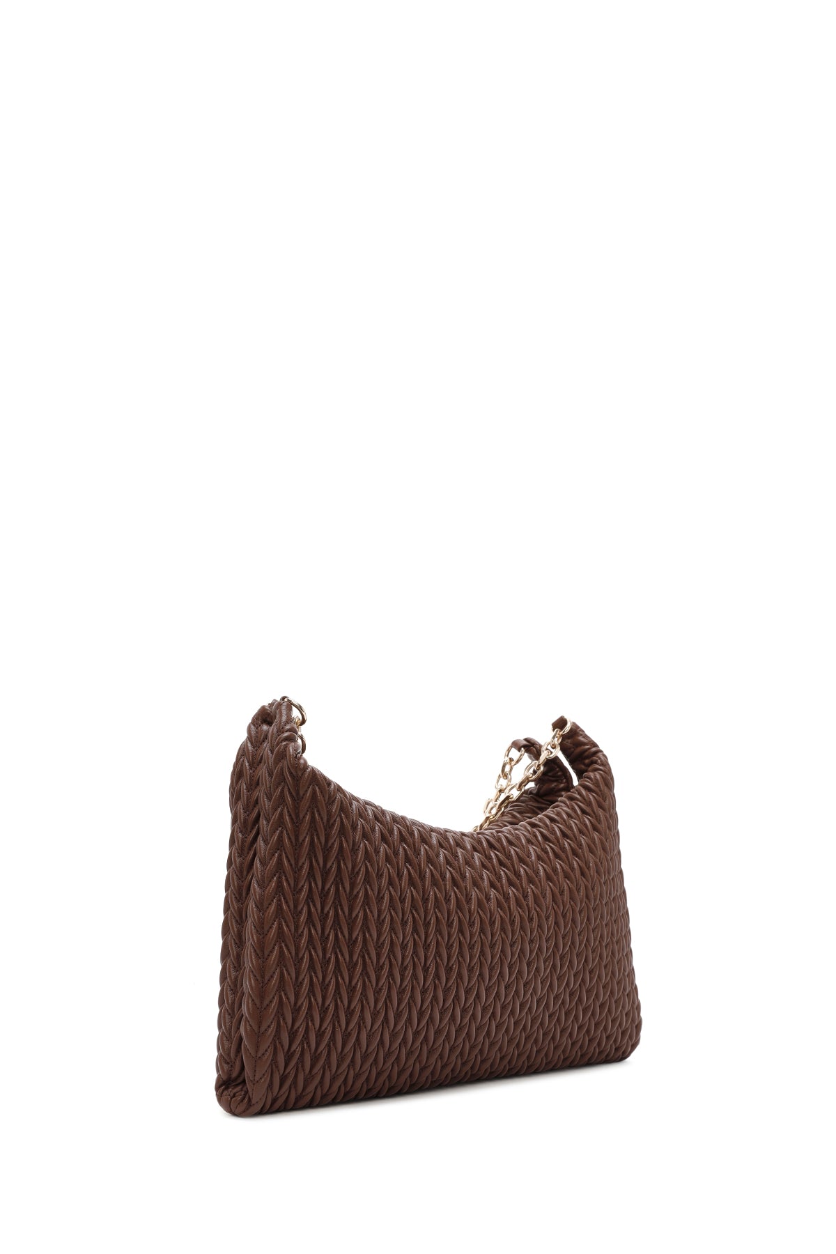 Kadın Kahverengi Zincir Askılı Baskılı Omuz Çantası