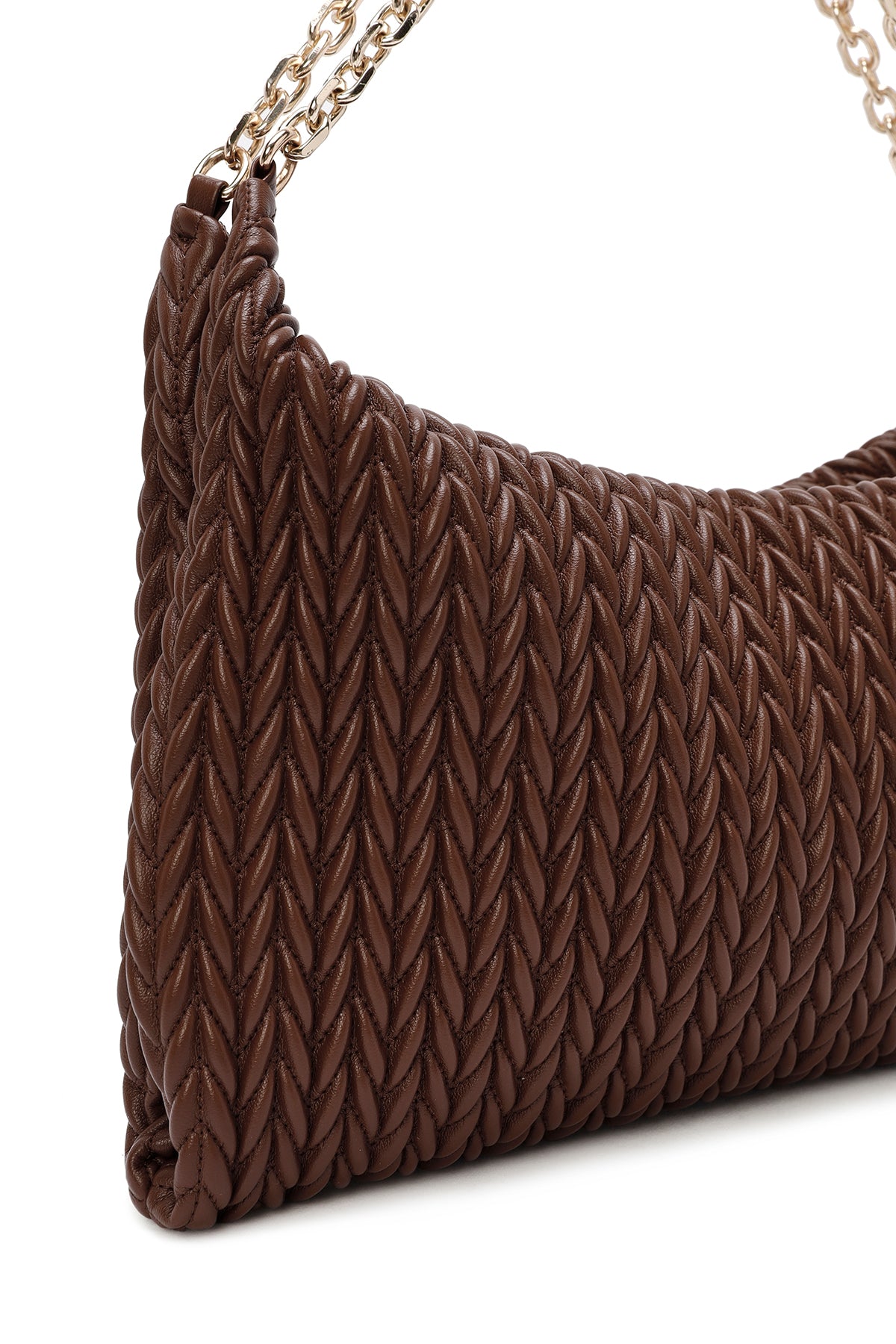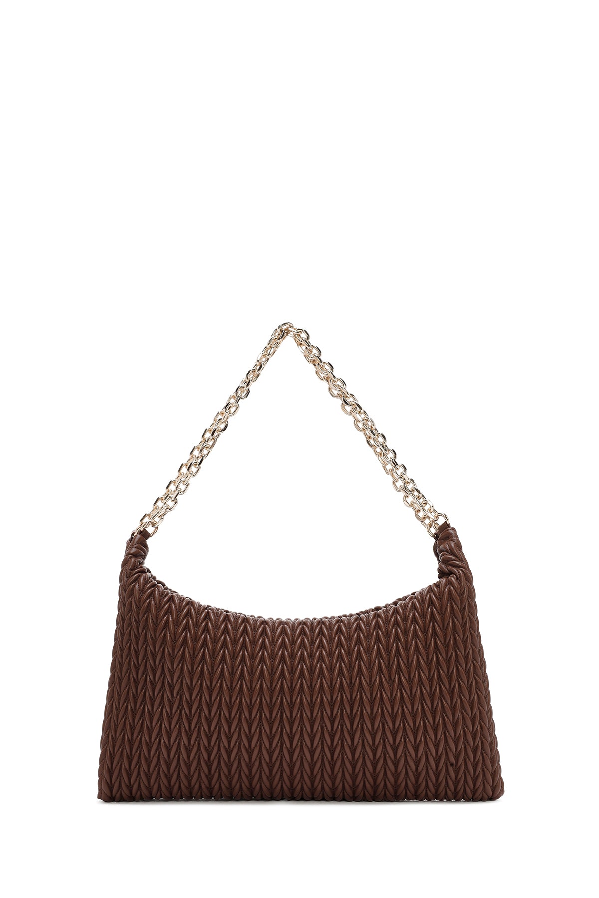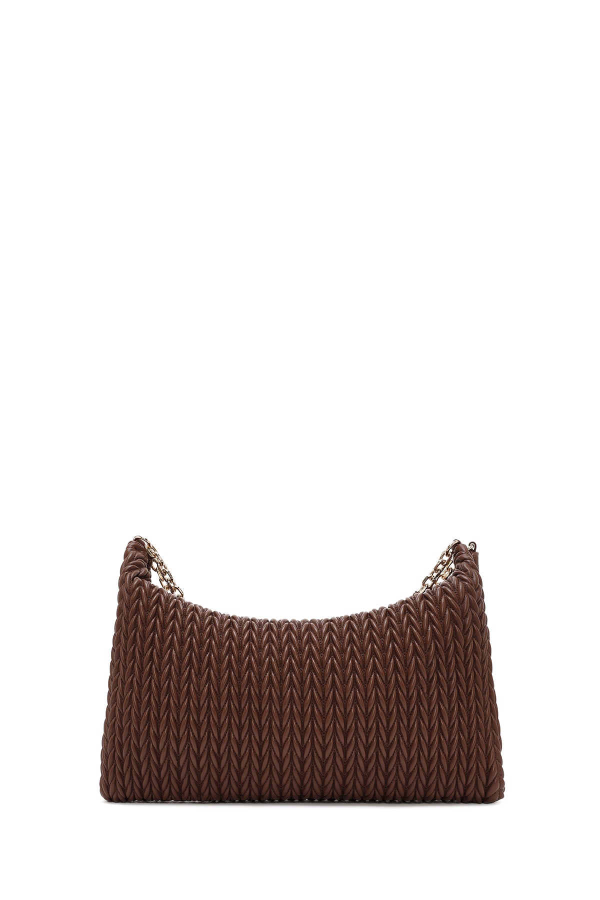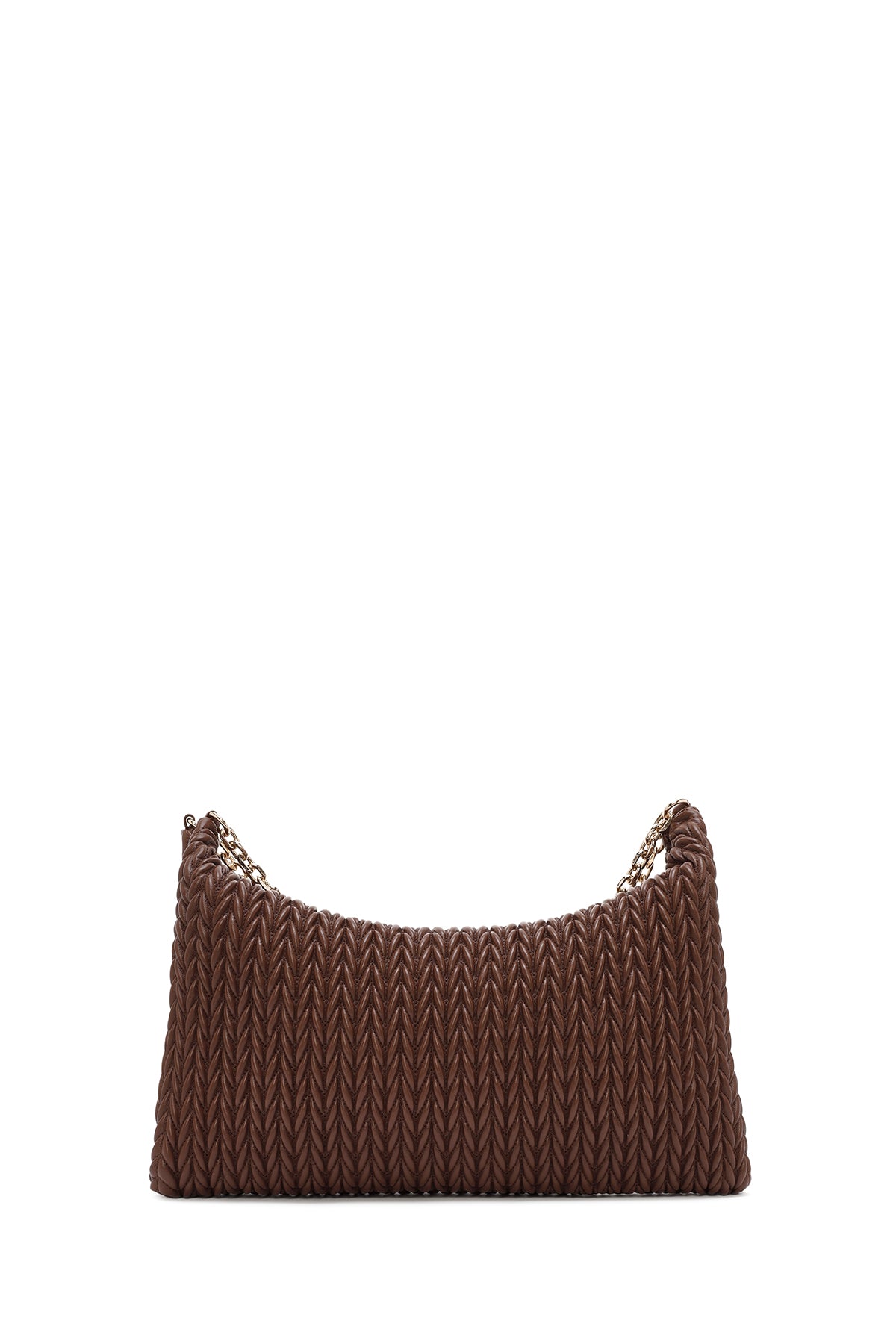 Kadın Kahverengi Zincir Askılı Baskılı Omuz Çantası