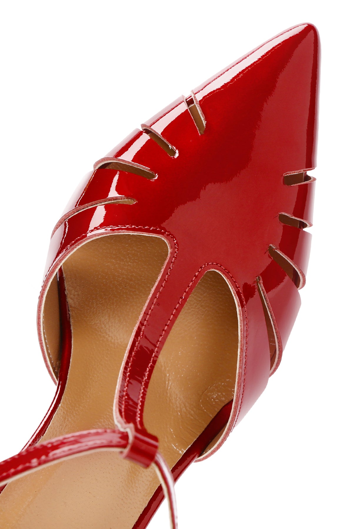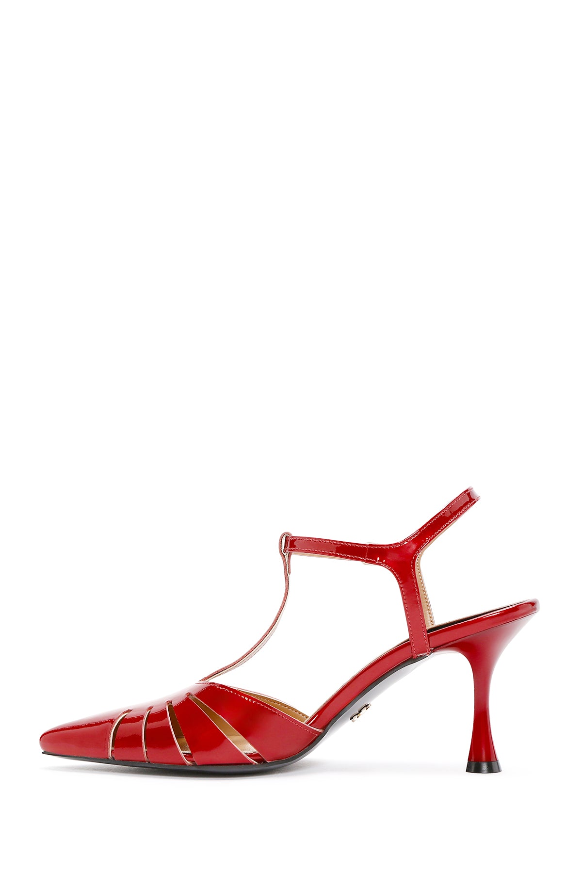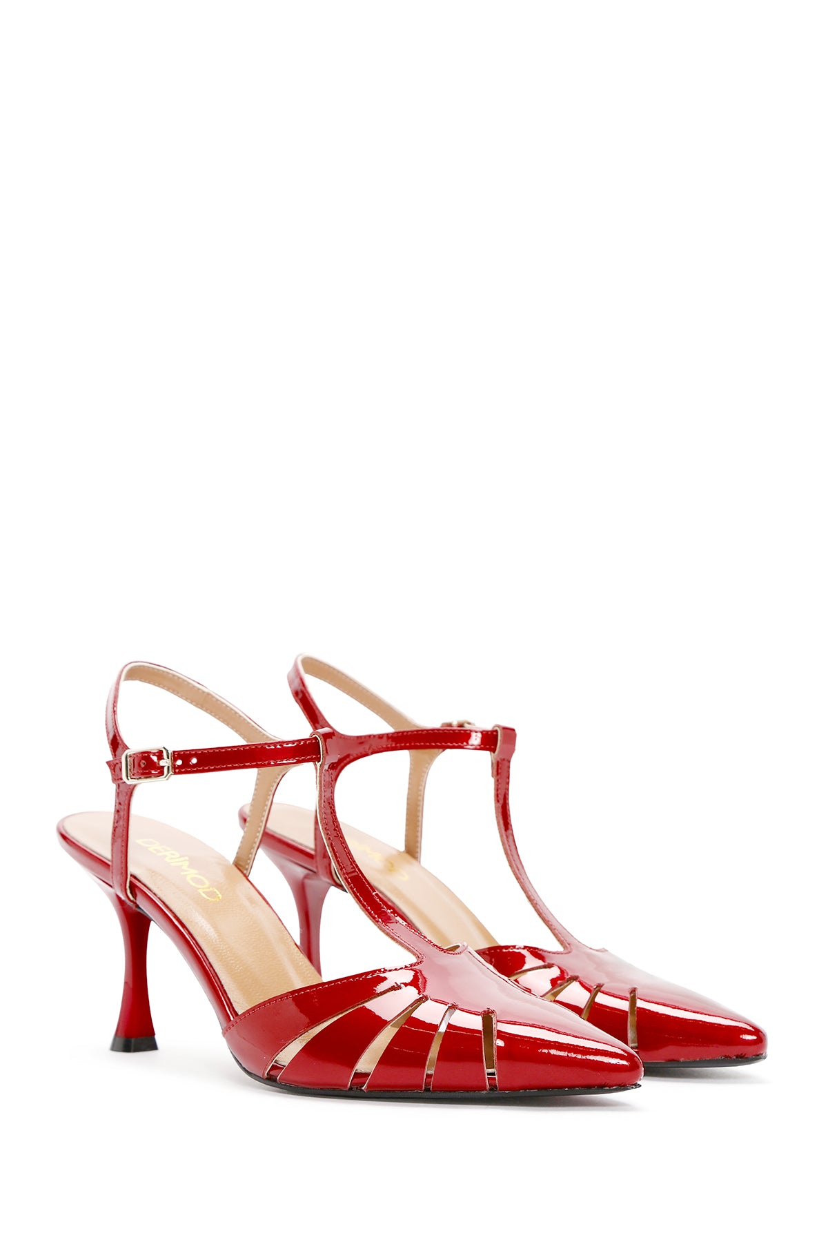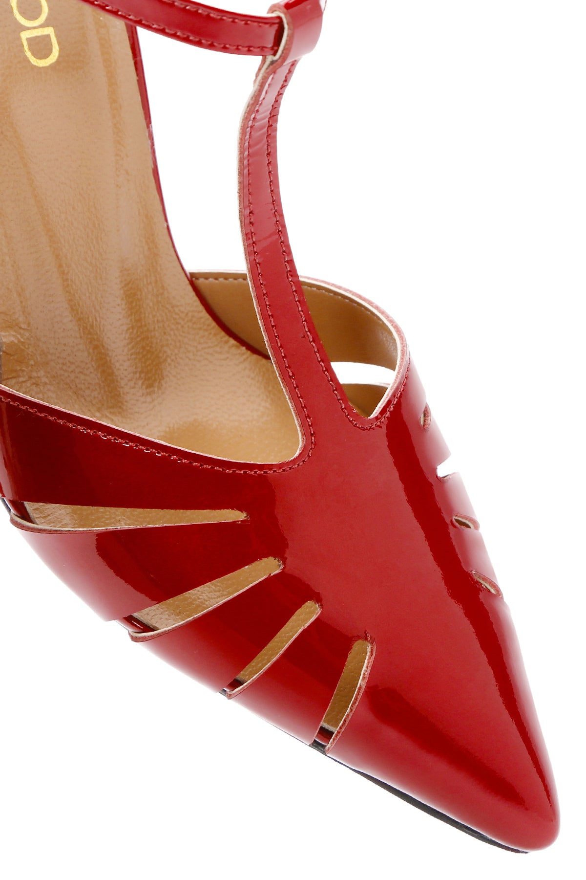 Kadın Kırmızı Bilekten Bantlı Arkası Açık İnce Topuklu Rugan Deri Ayakkabı