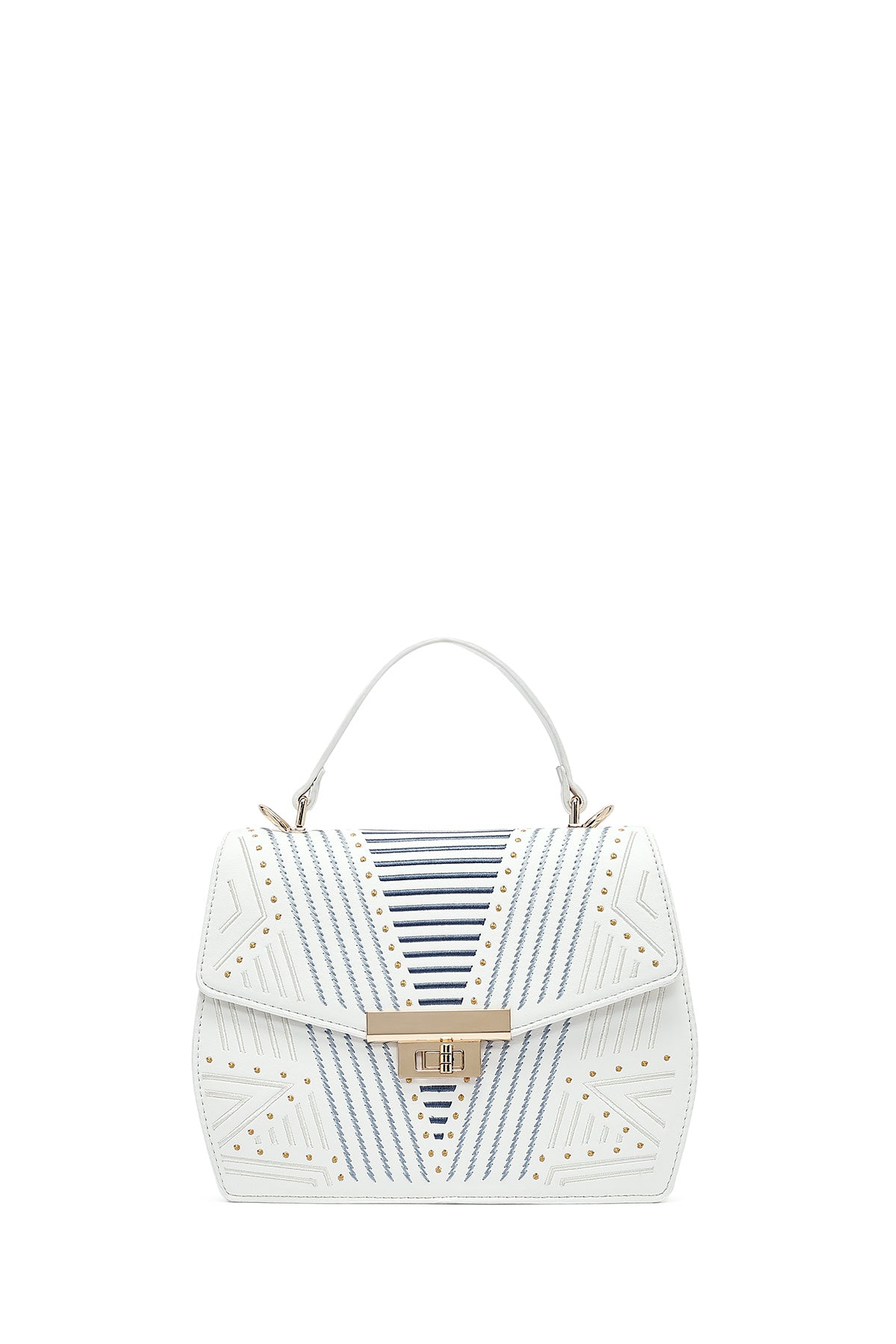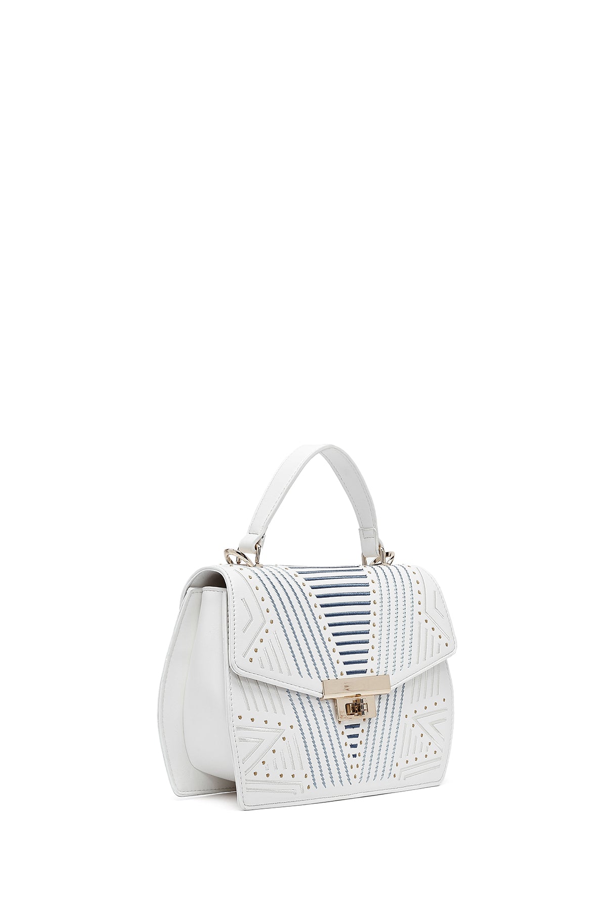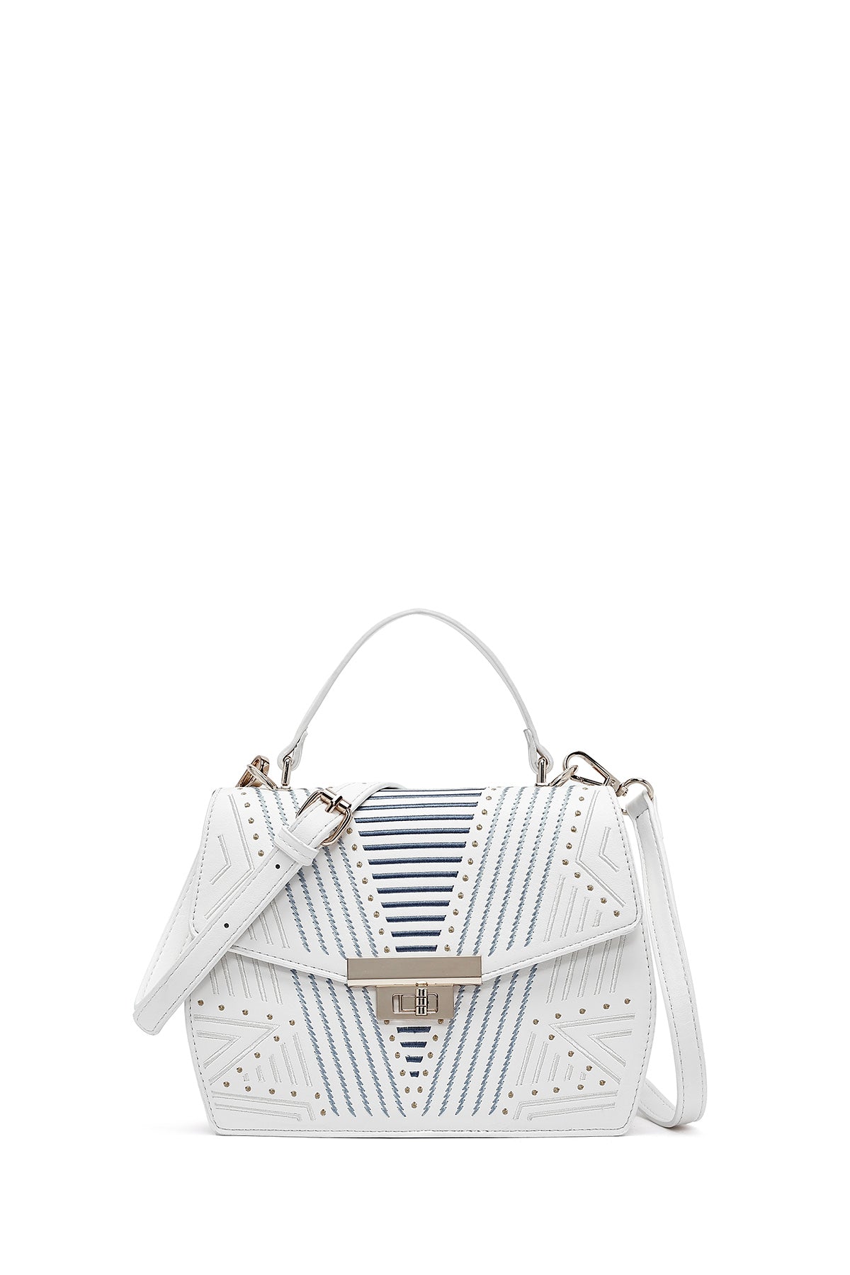 Kadın Krem Baskılı Uzun Askılı Kol Çantası