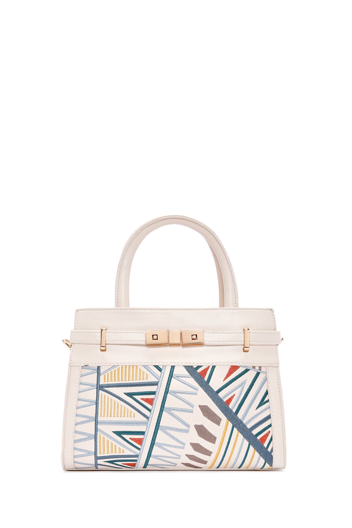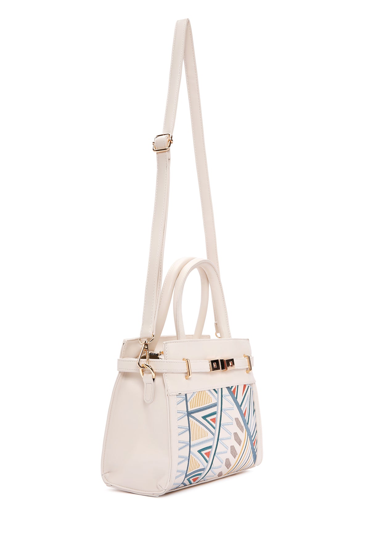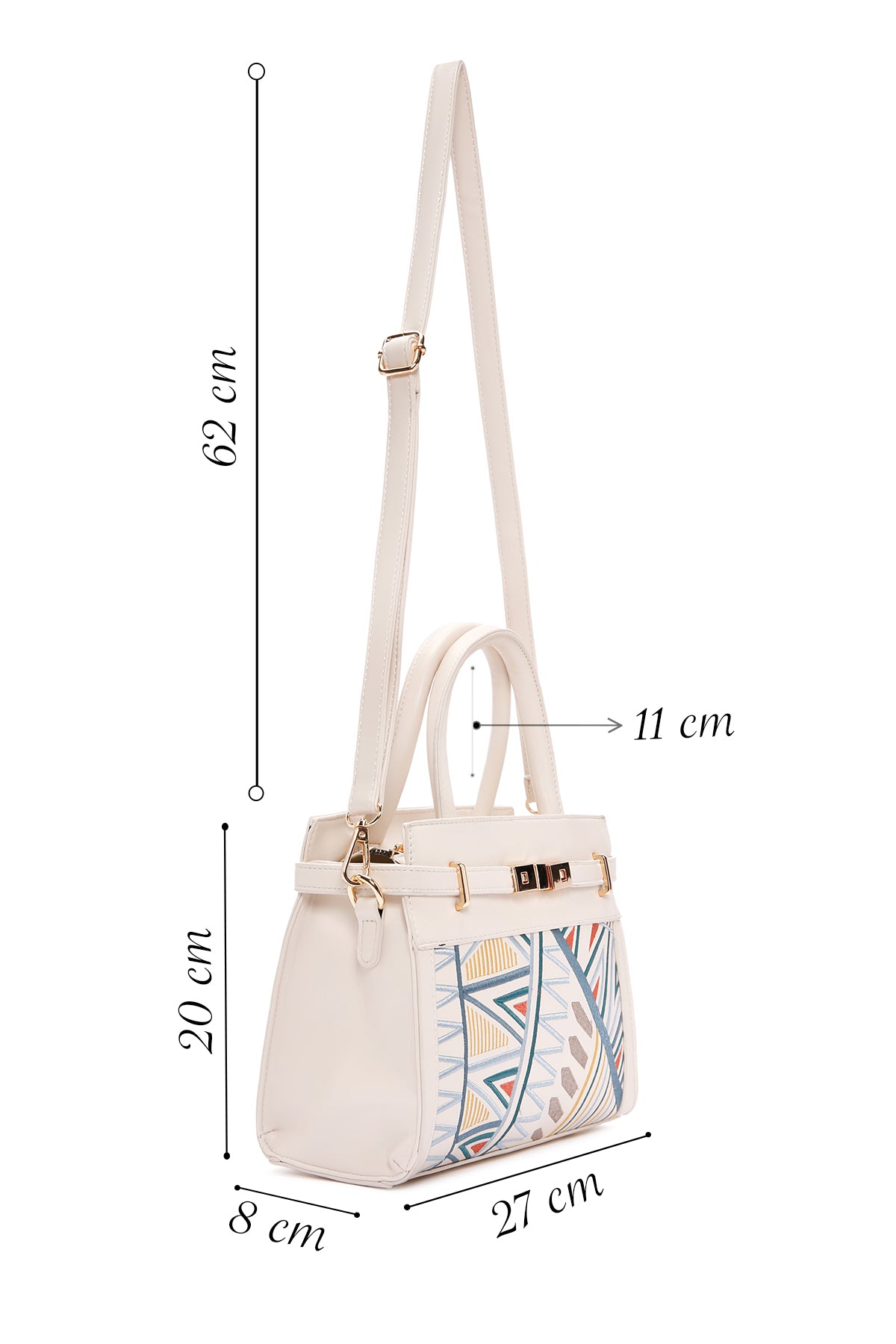 Kadın Krem Baskılı Uzun Askılı Kol Çantası