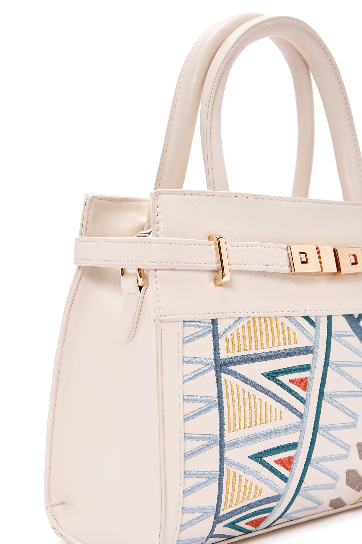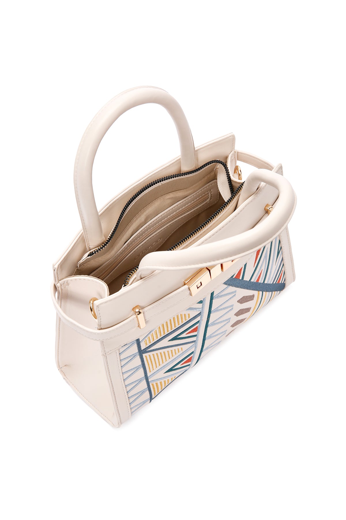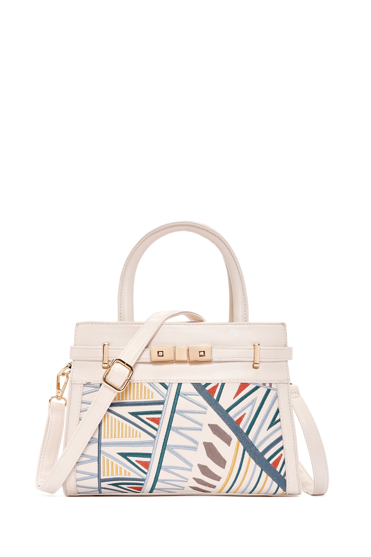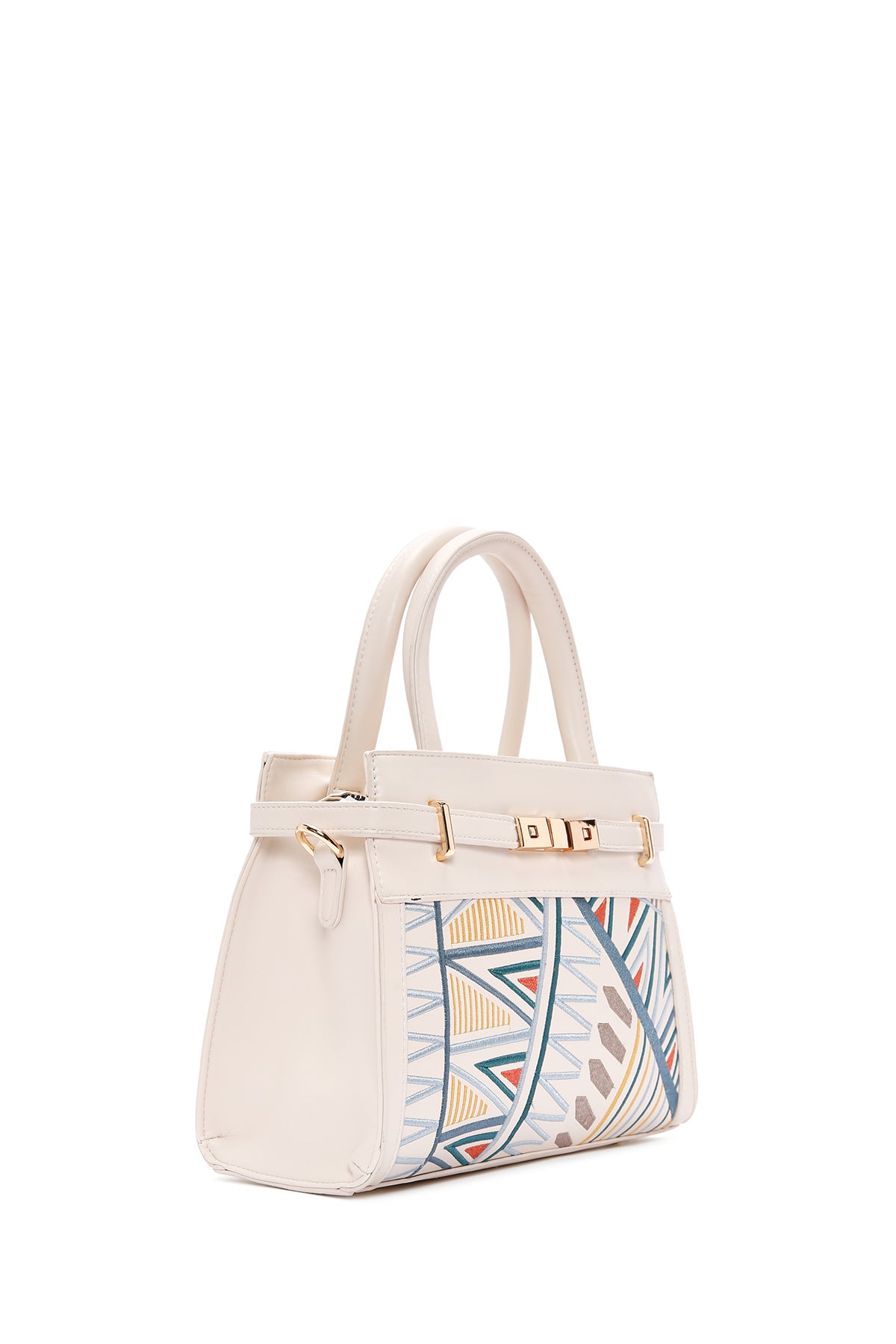 Kadın Krem Baskılı Uzun Askılı Kol Çantası
