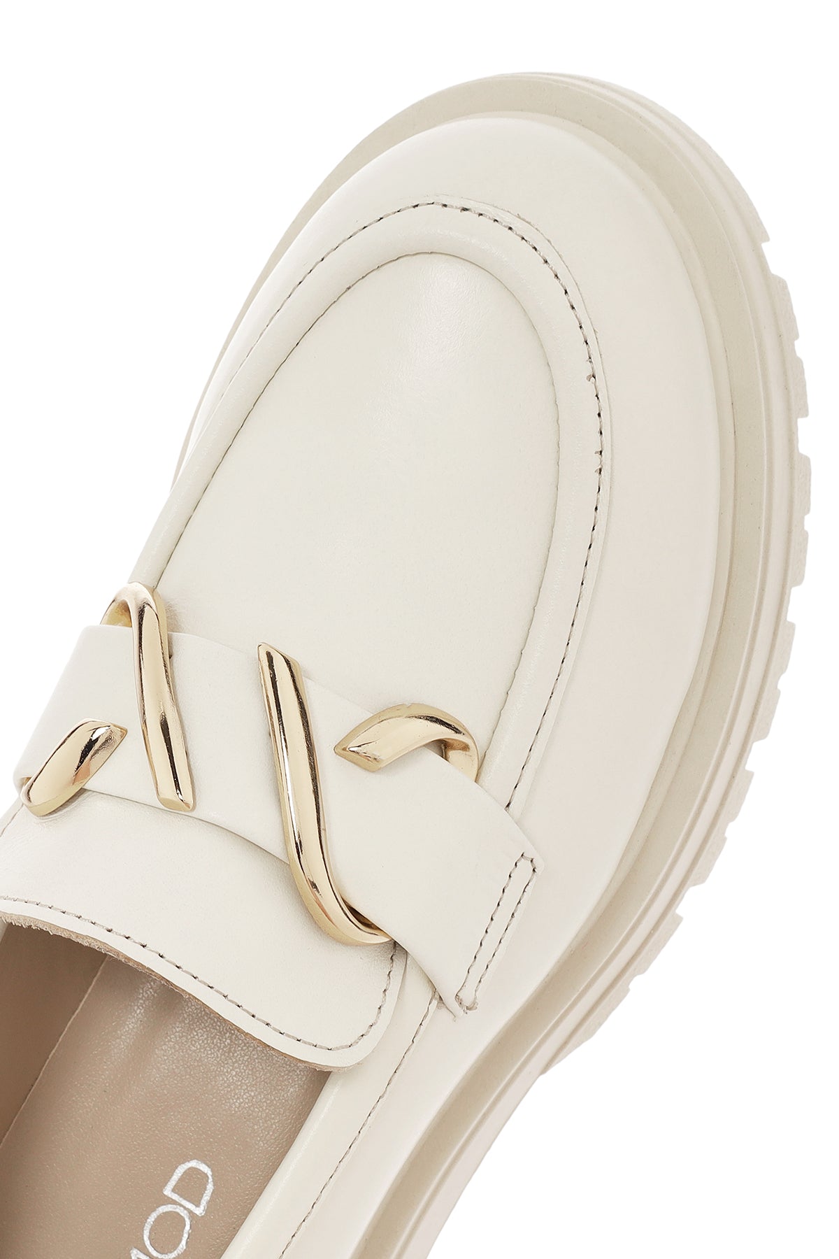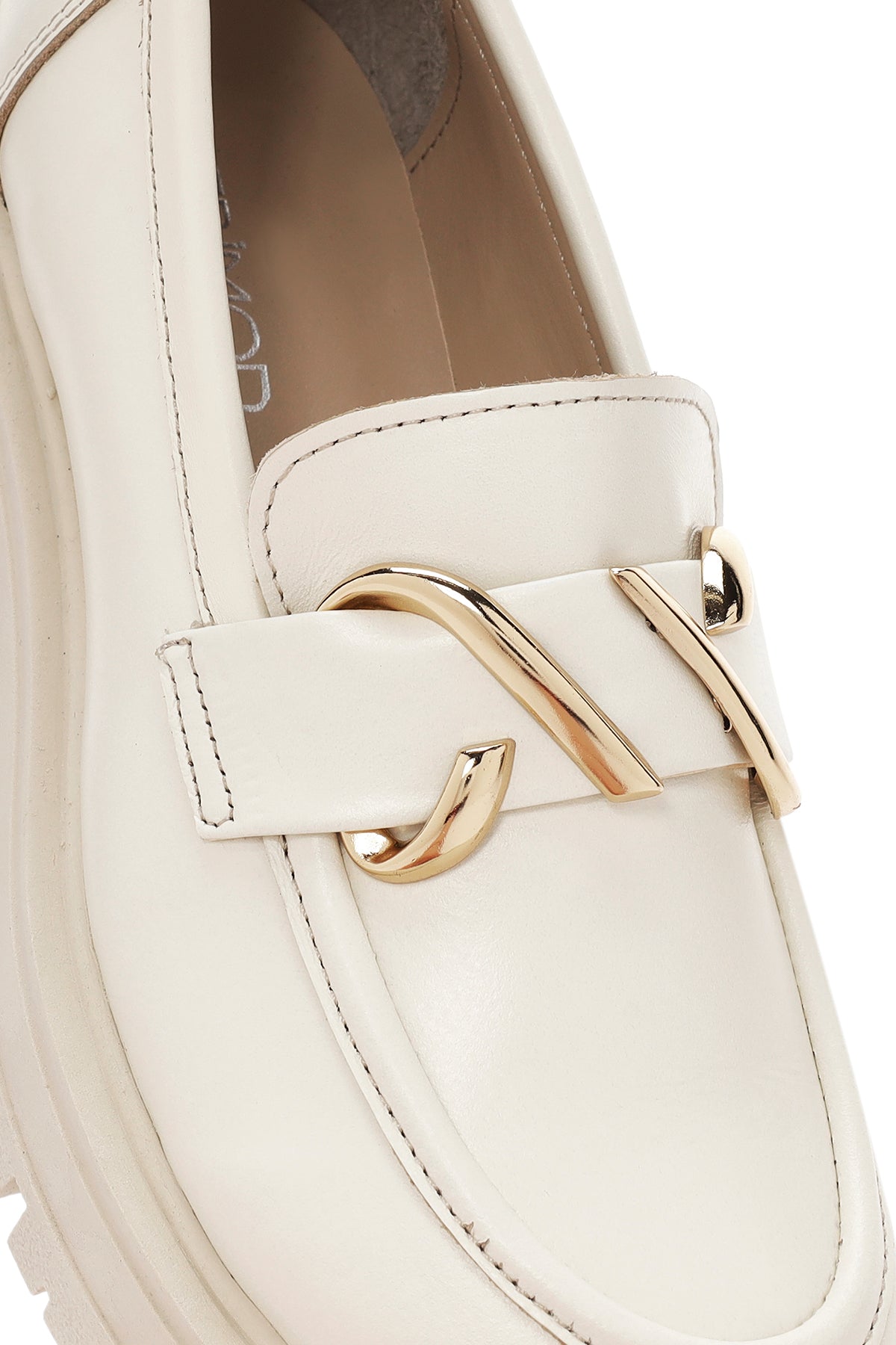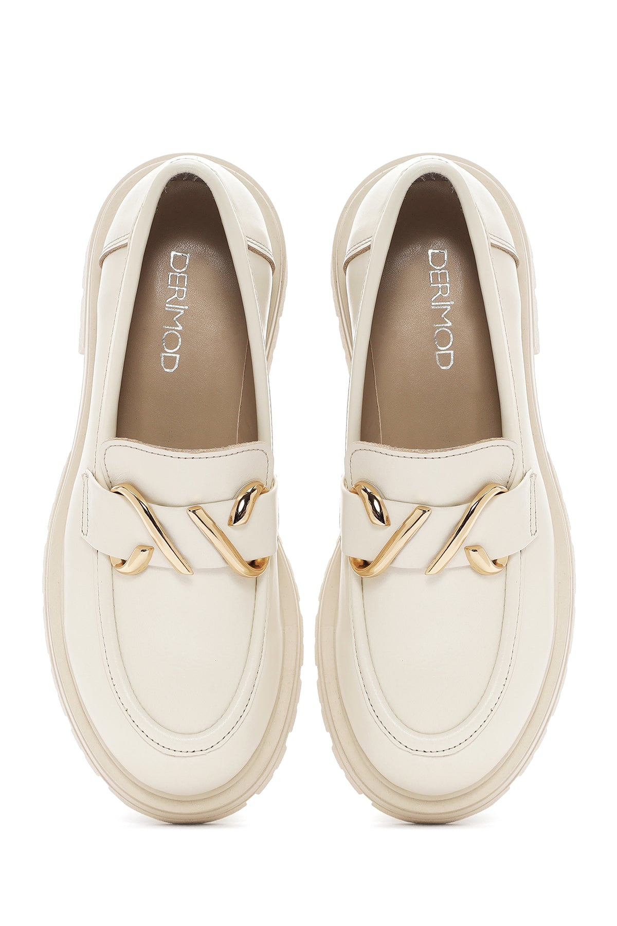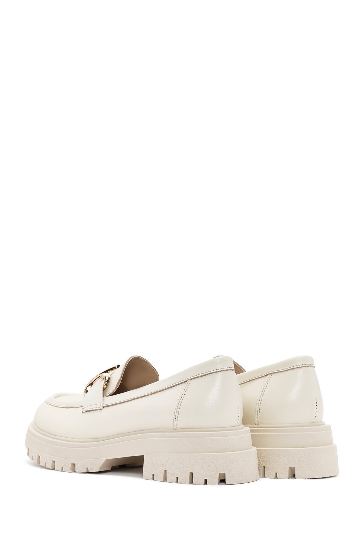 Kadın Krem Deri Maskülen Loafer