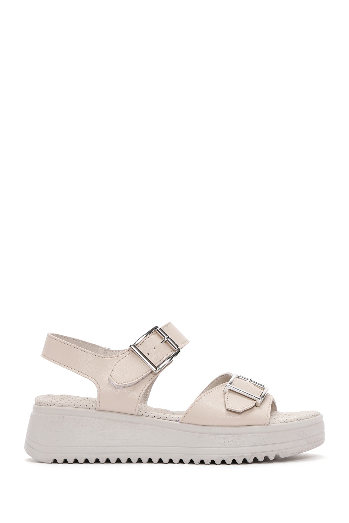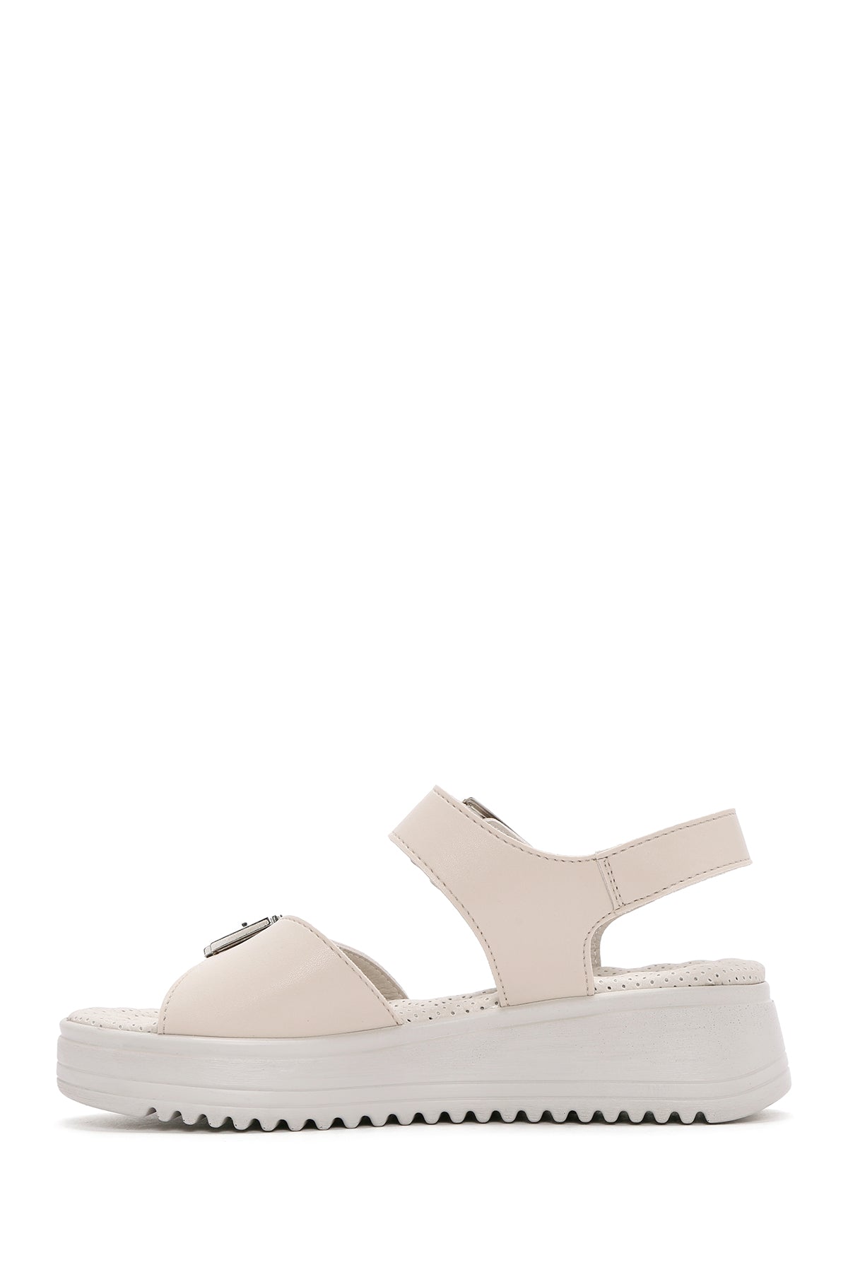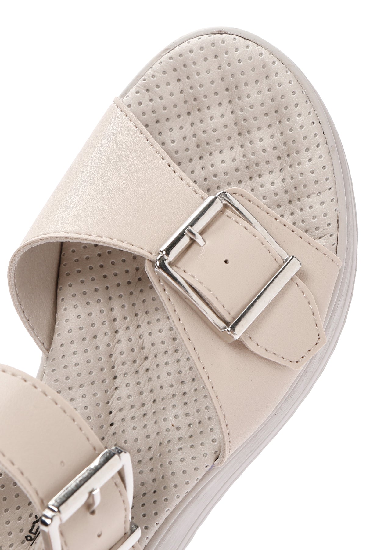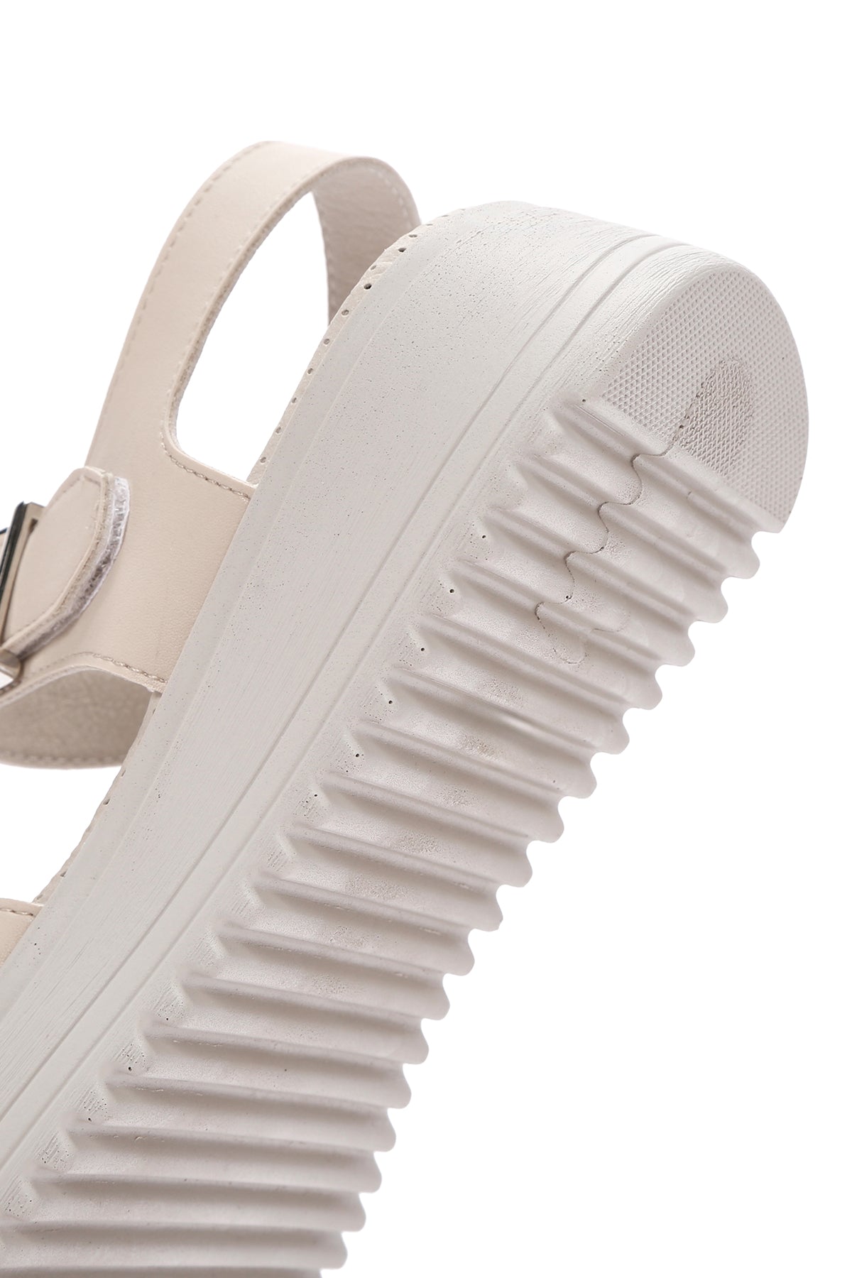 Kadın Krem Kalın Tabanlı Bilekten Bantlı Comfort Sandalet