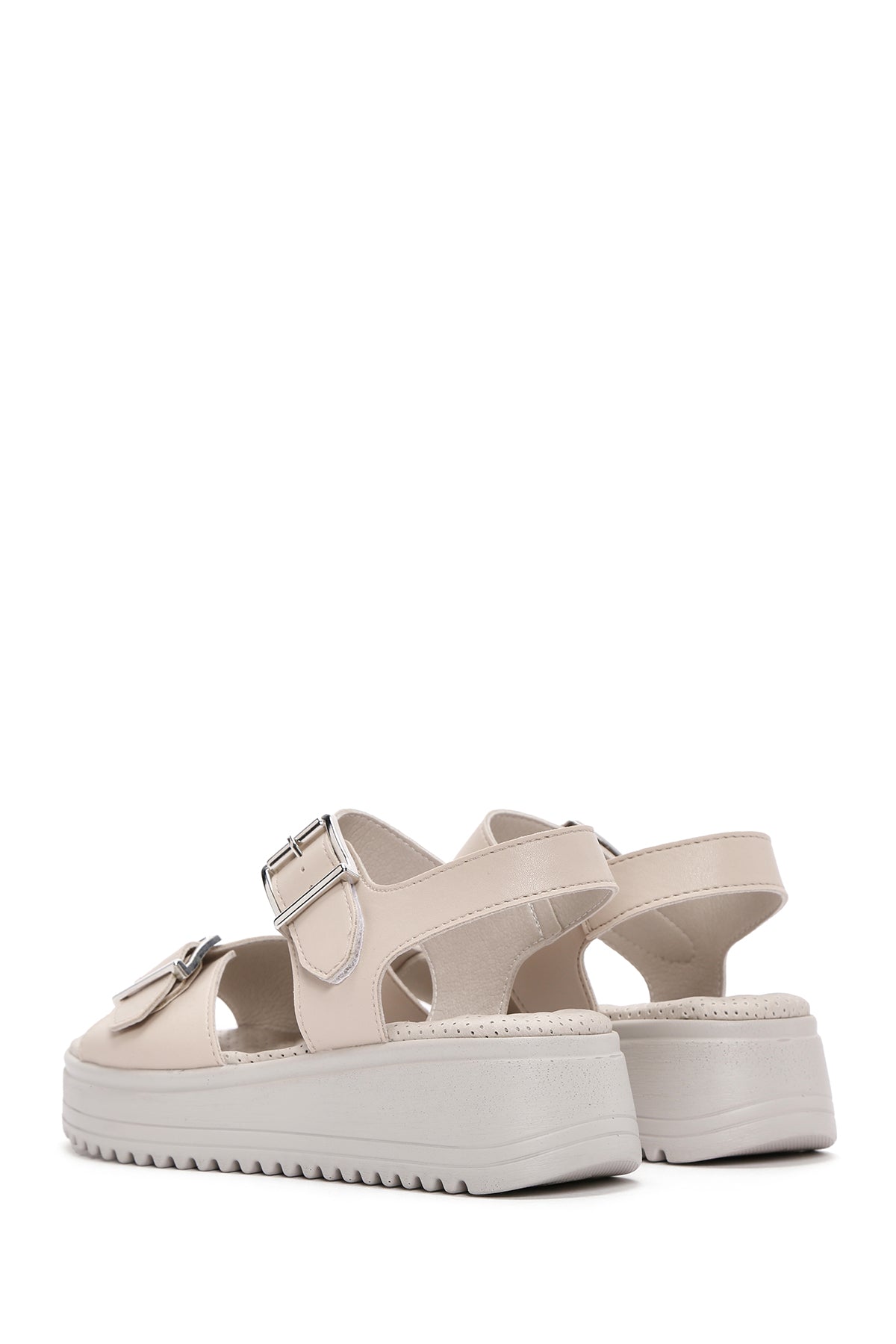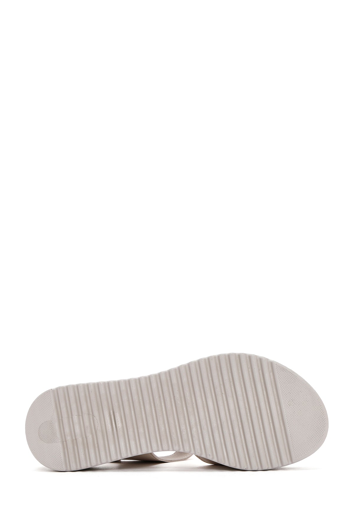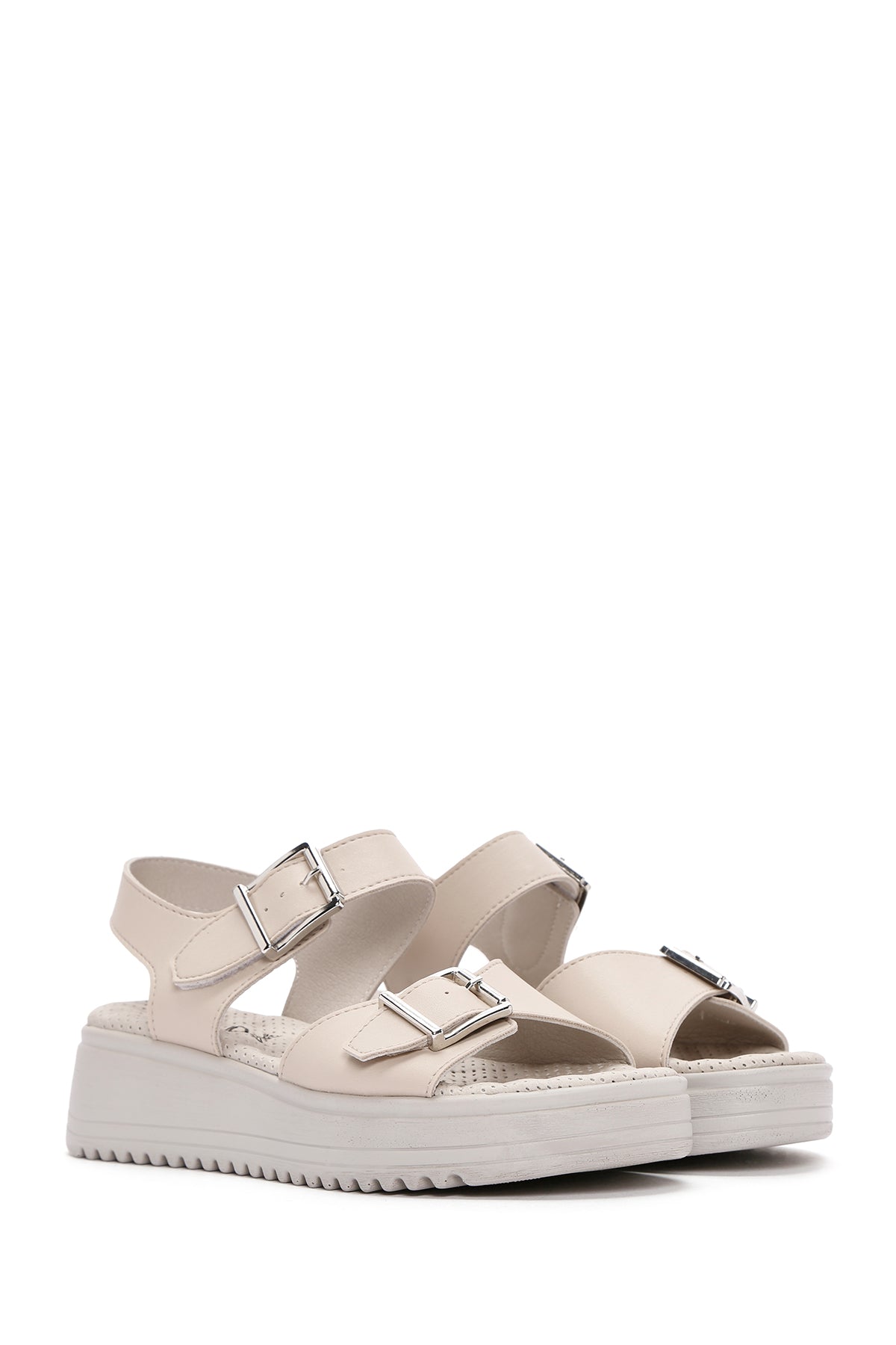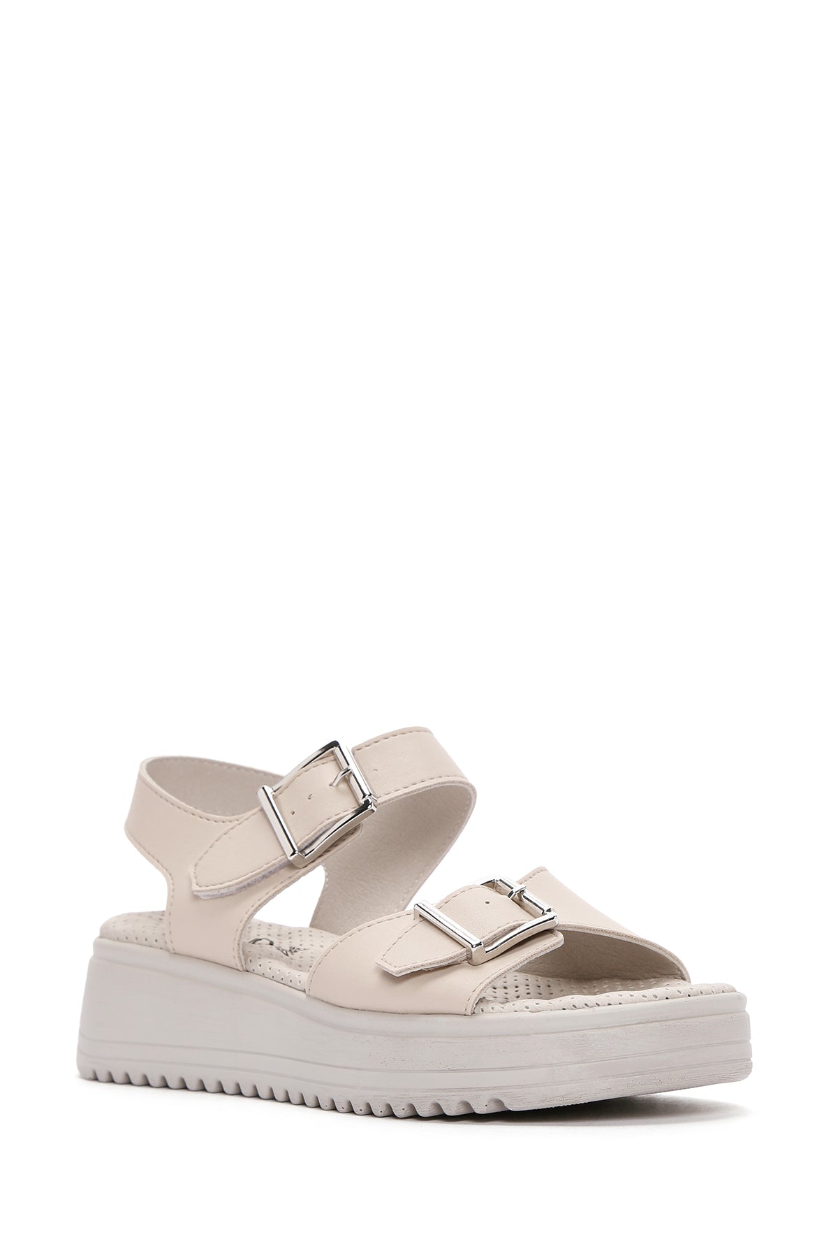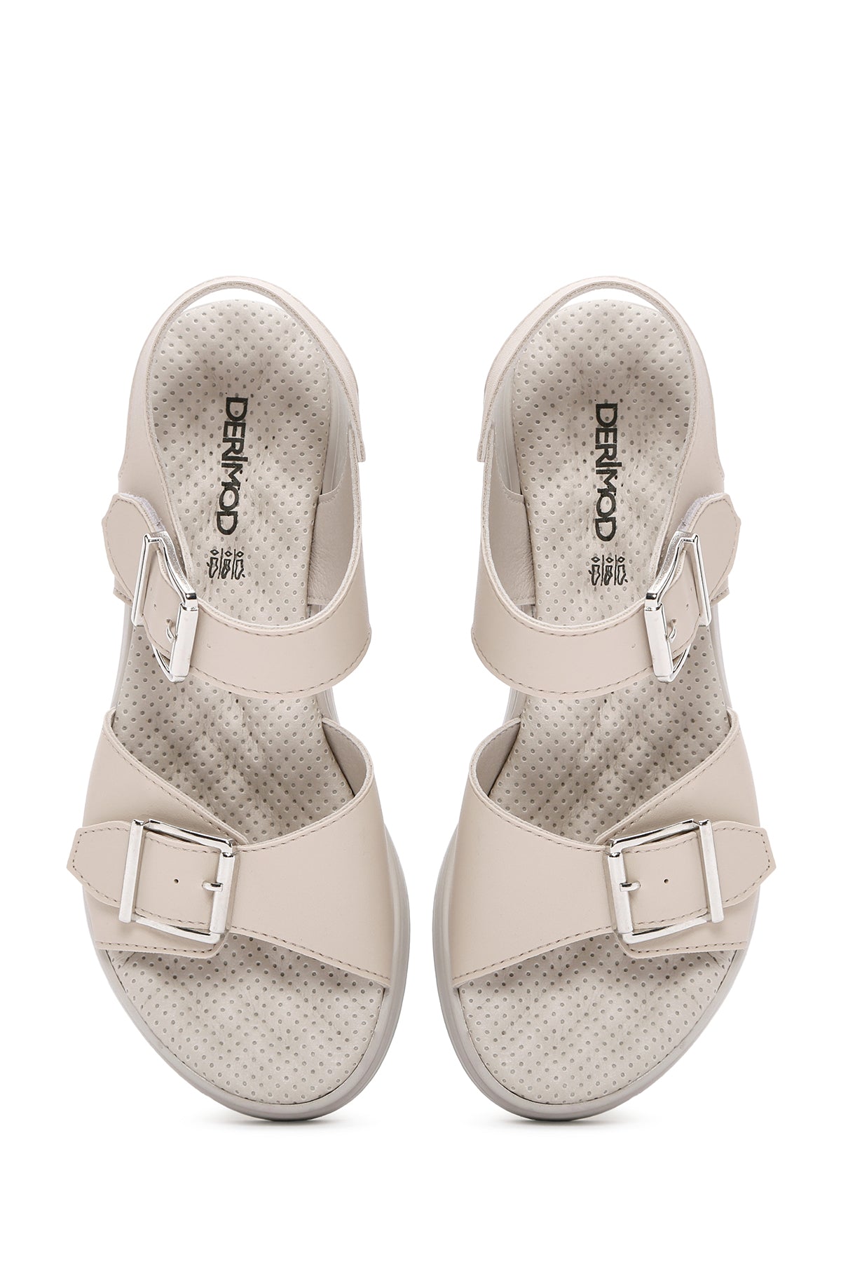 Kadın Krem Kalın Tabanlı Bilekten Bantlı Comfort Sandalet