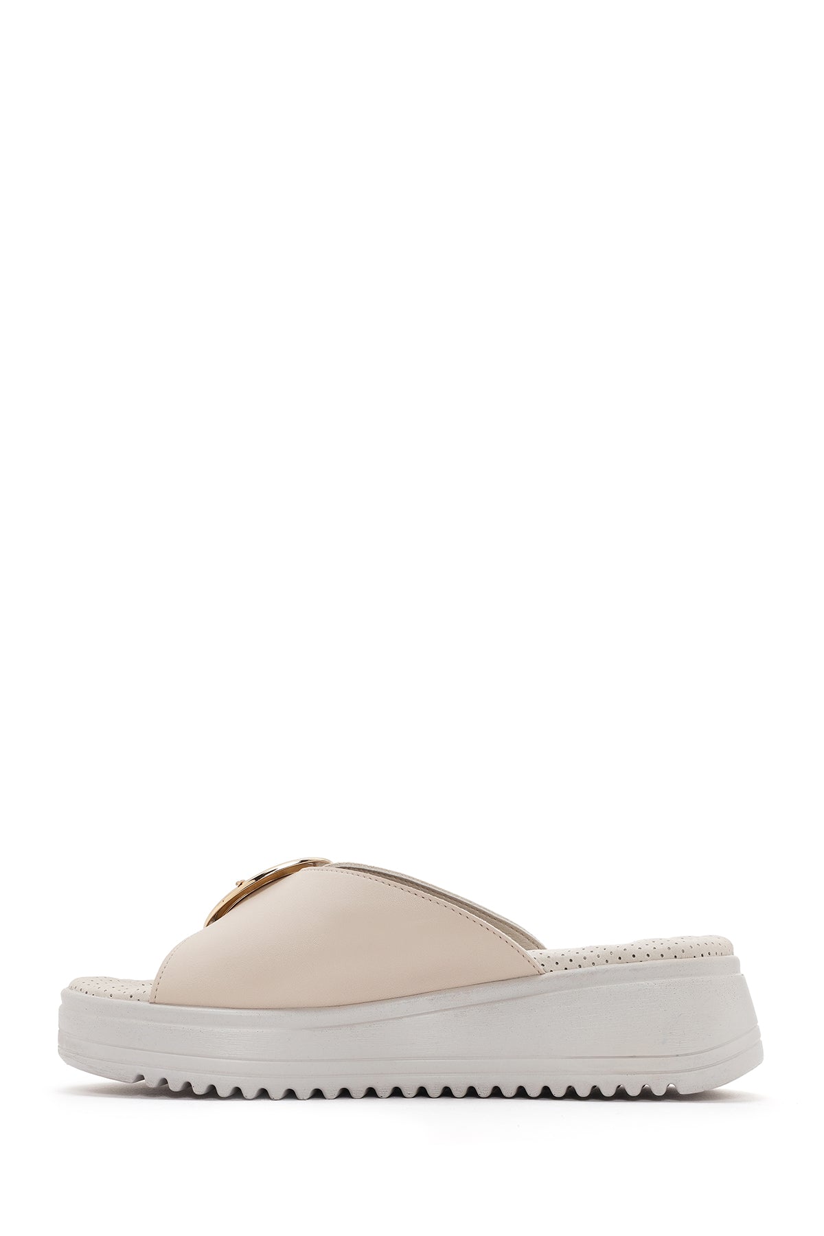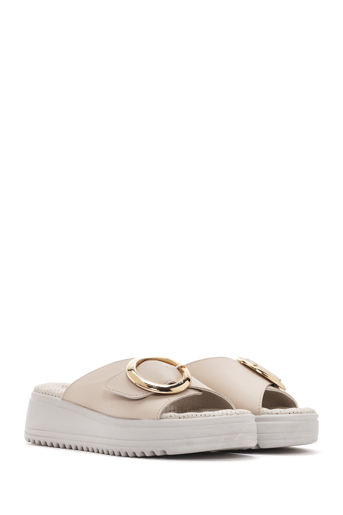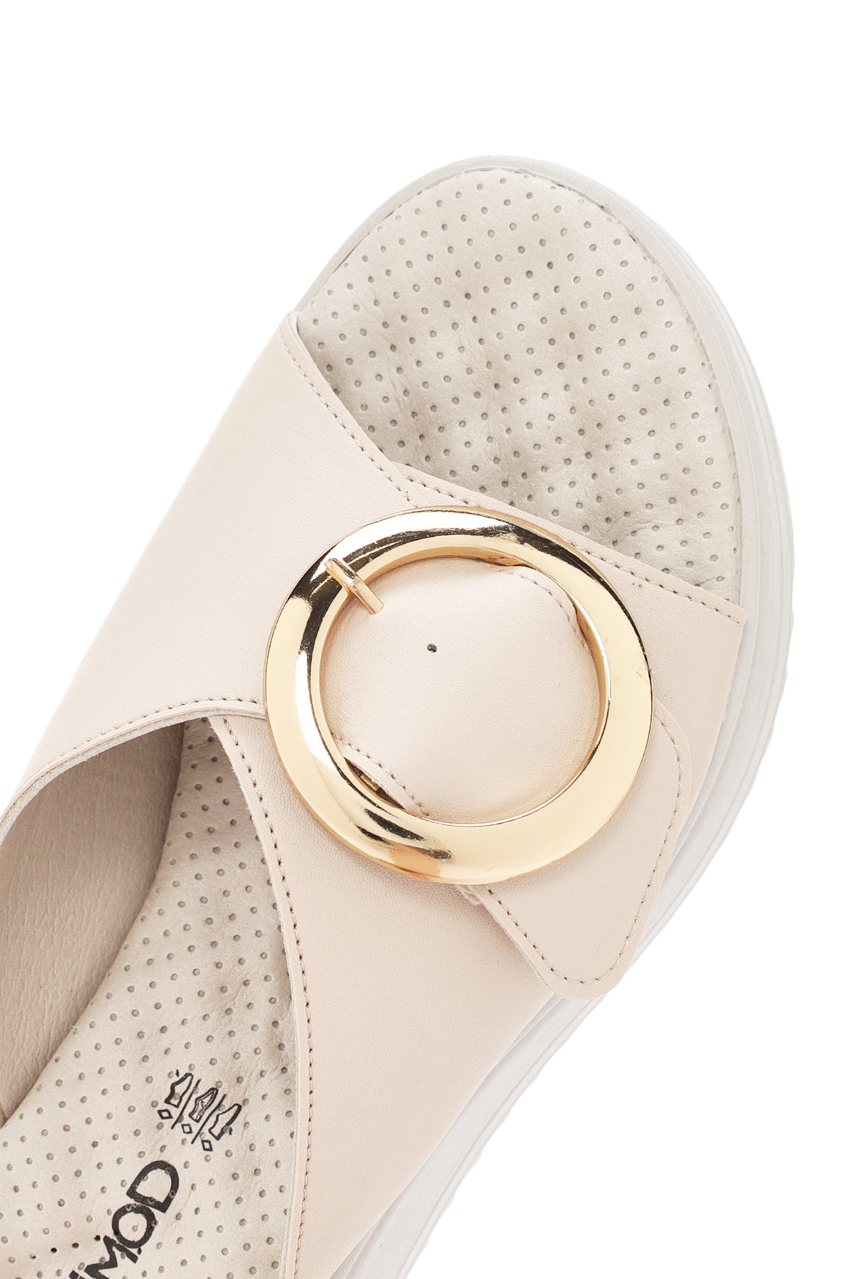 Kadın Krem Kalın Tabanlı Toka Detaylı Comfort Terlik