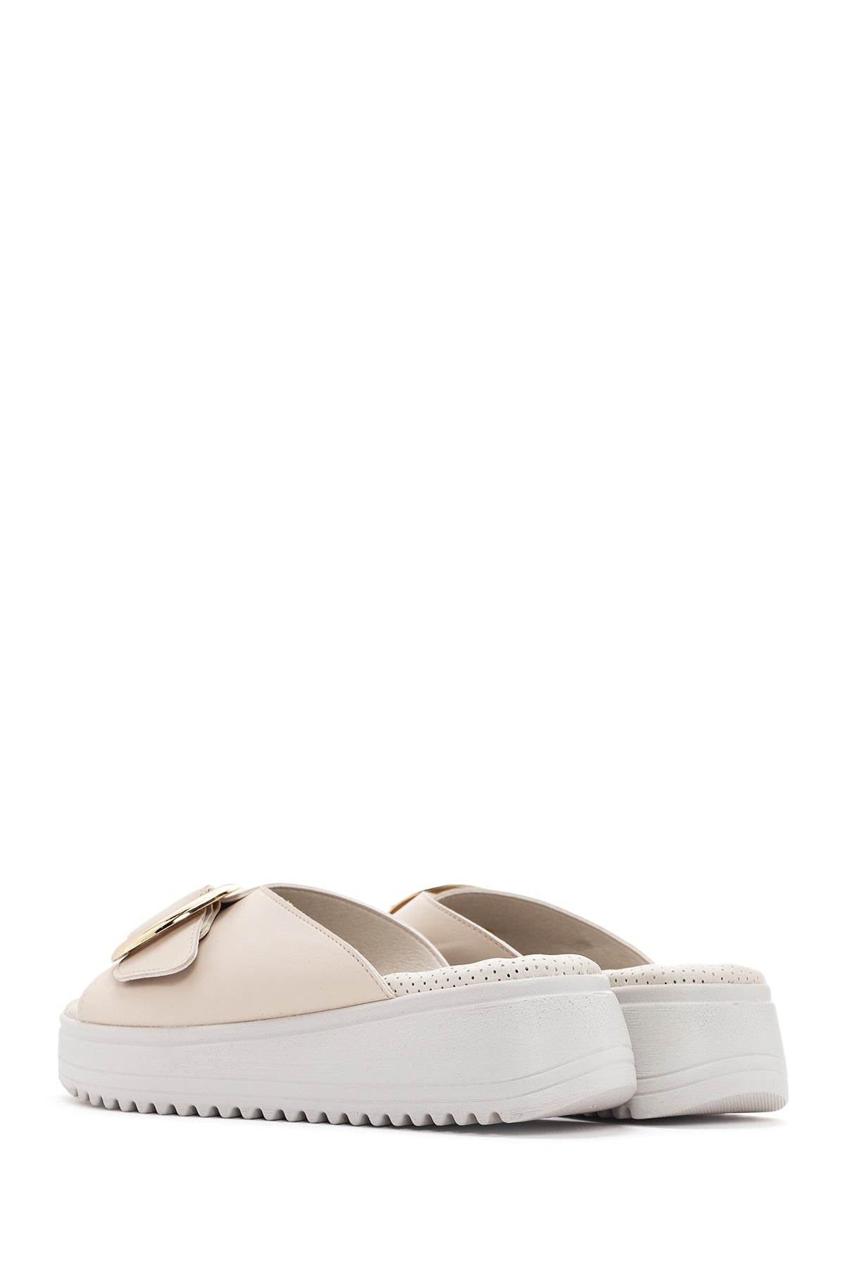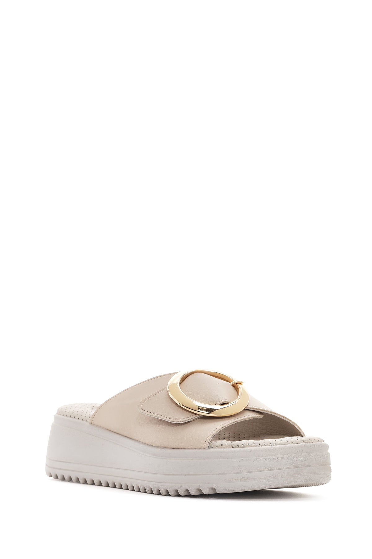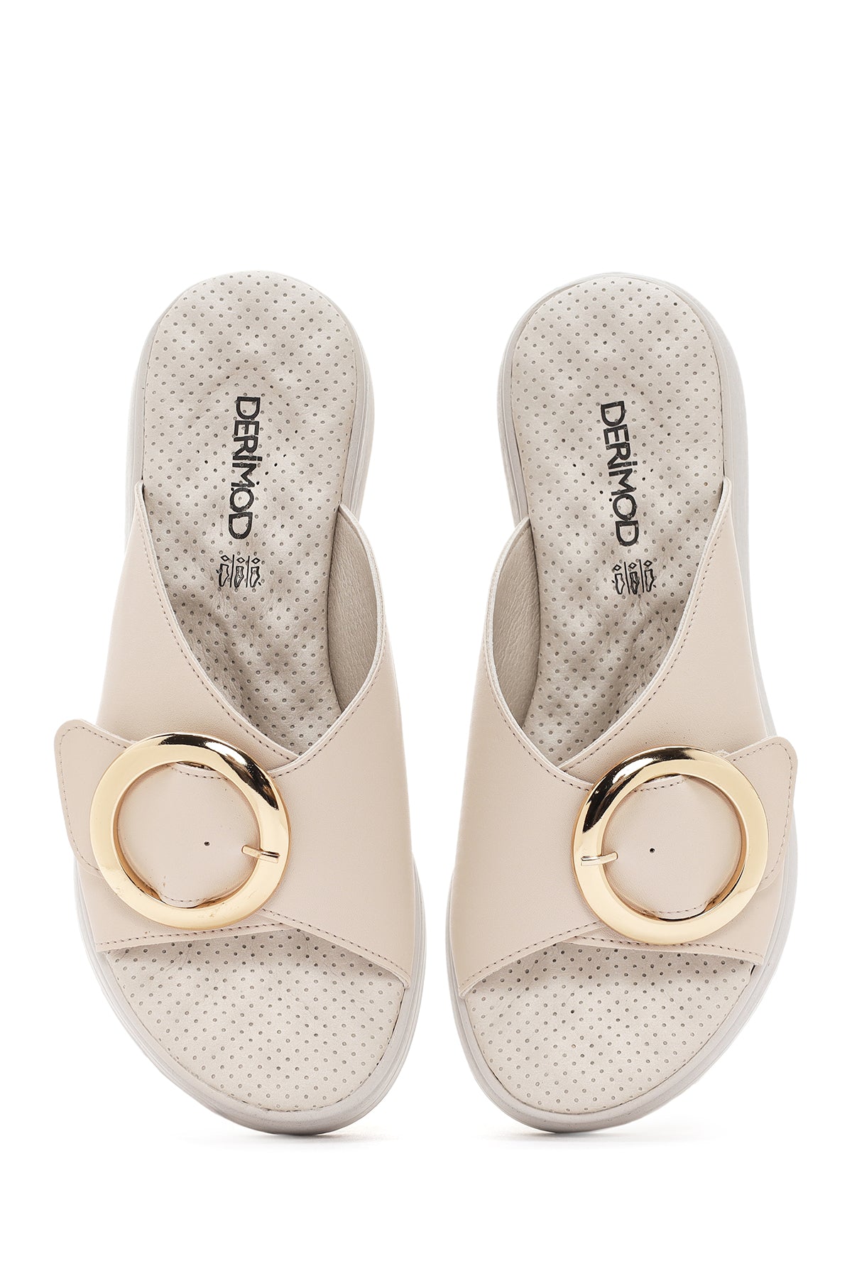 Kadın Krem Kalın Tabanlı Toka Detaylı Comfort Terlik