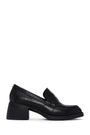 Kadın Krem Kalın Topuklu Deri Maskülen Loafer