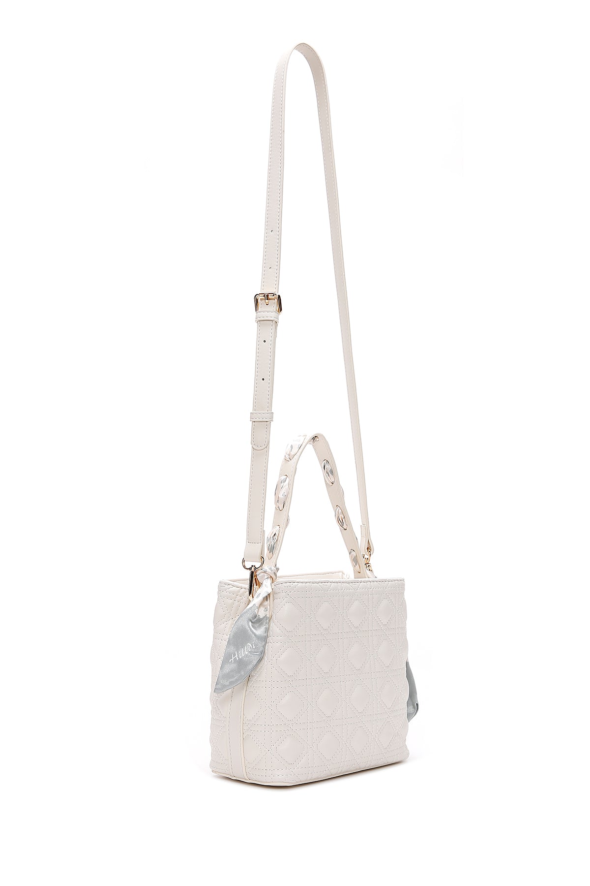 Kadın Krem Uzun Askılı Aksesuar Detaylı Kapitone Kol Çantası