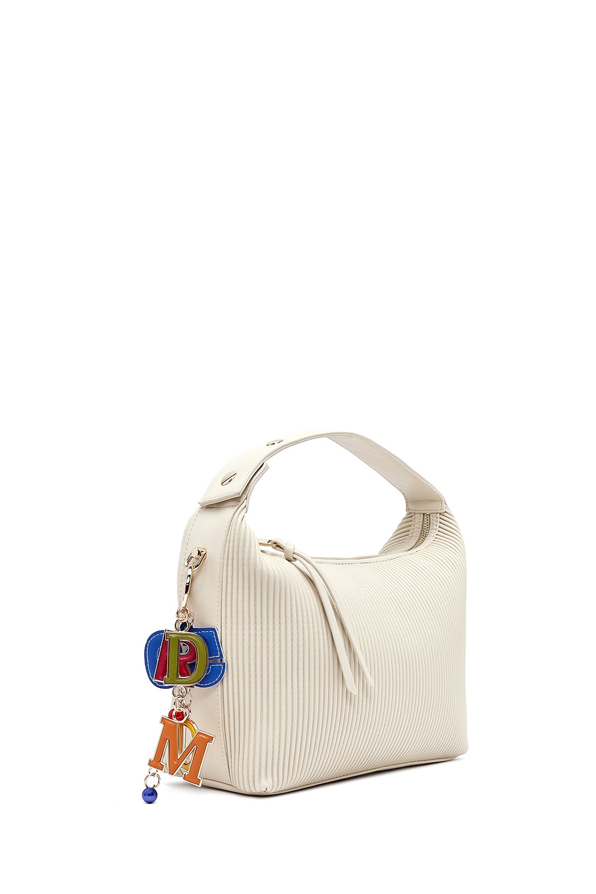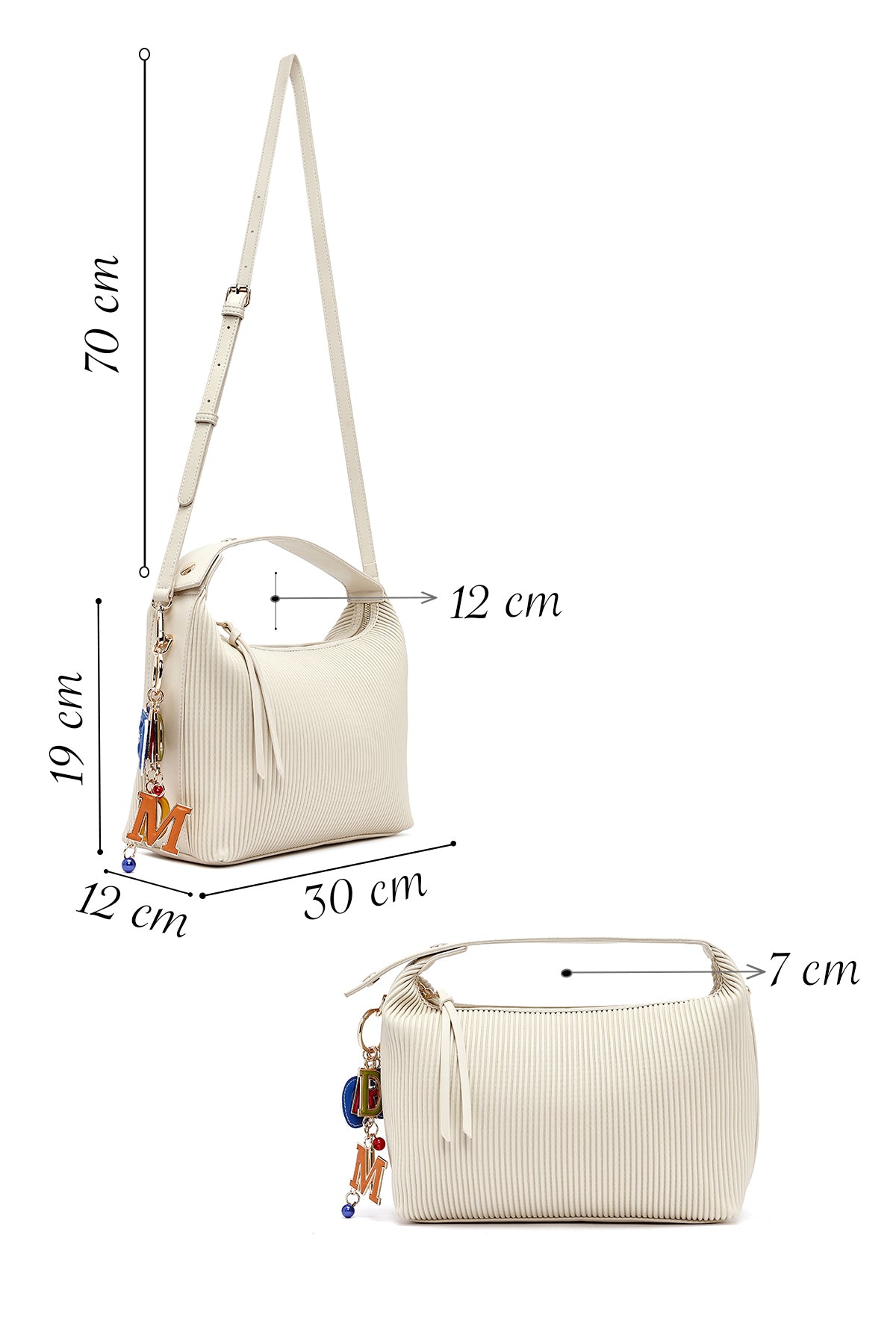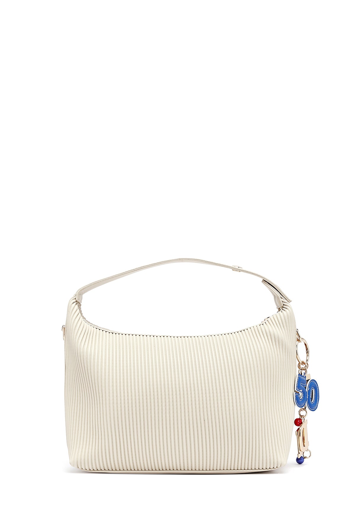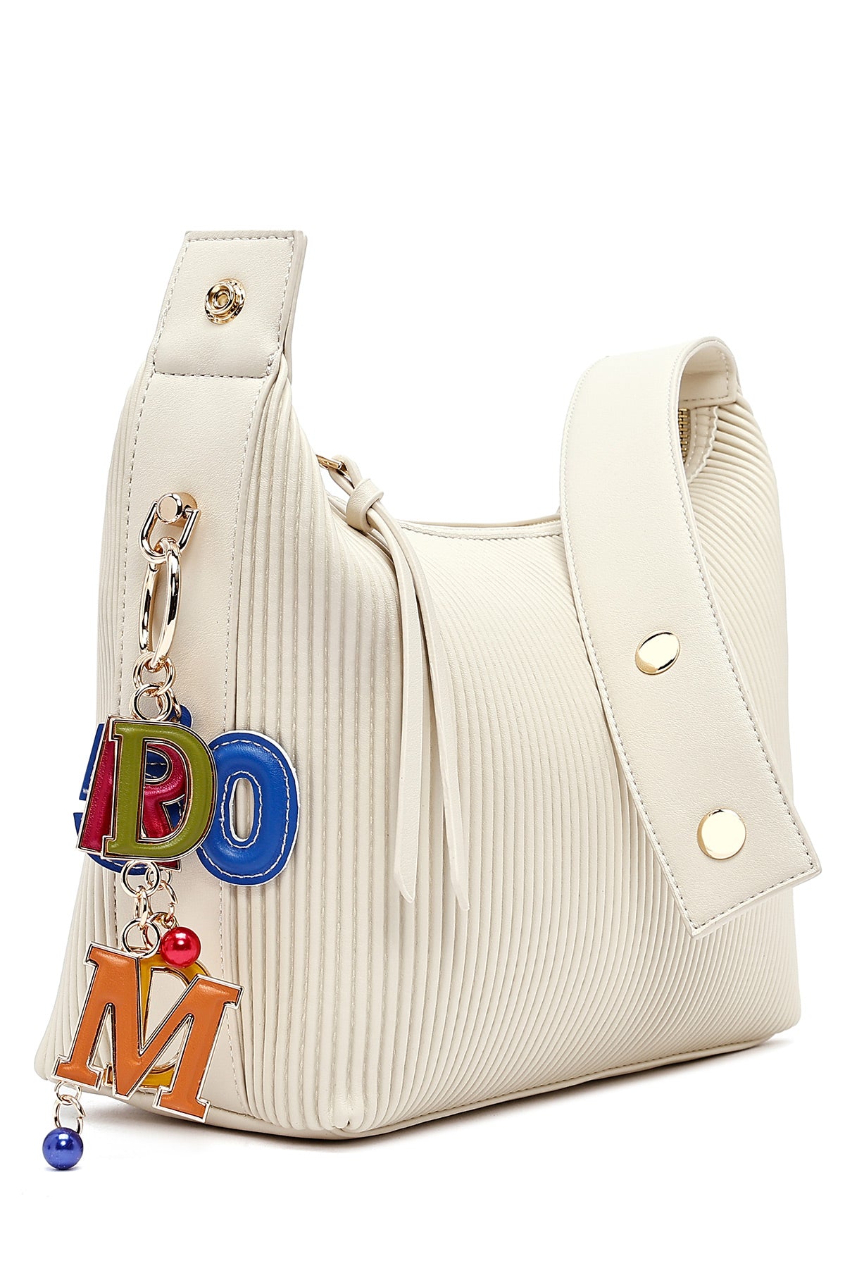 Kadın Krem Uzun Askılı Baskılı Charmlı Kol Çantası