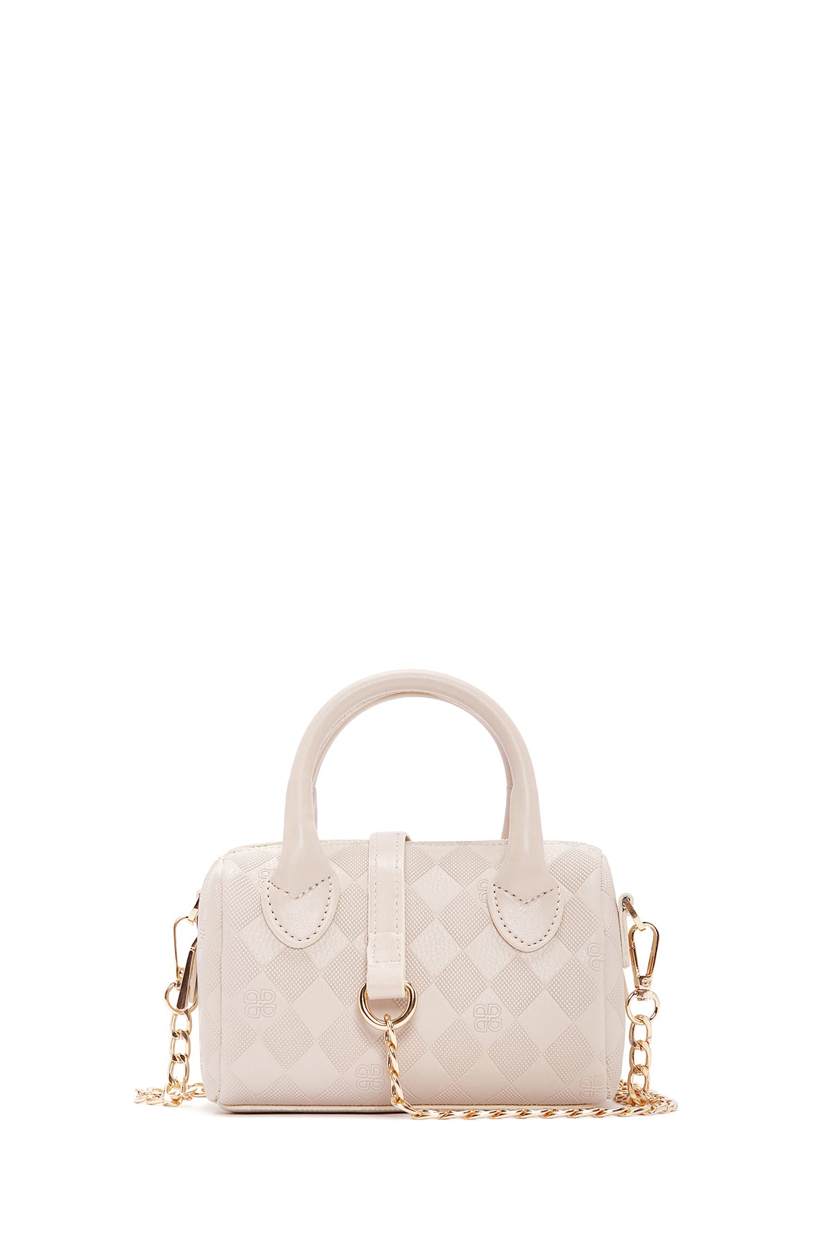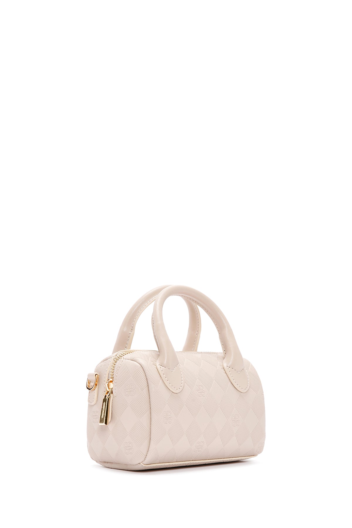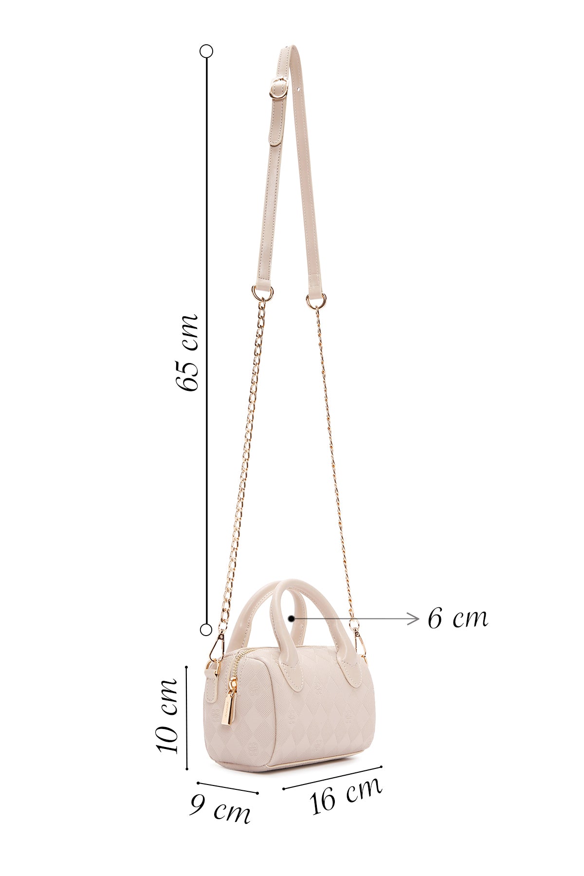 Kadın Krem Uzun Askılı Baskılı Mini Çapraz Çanta