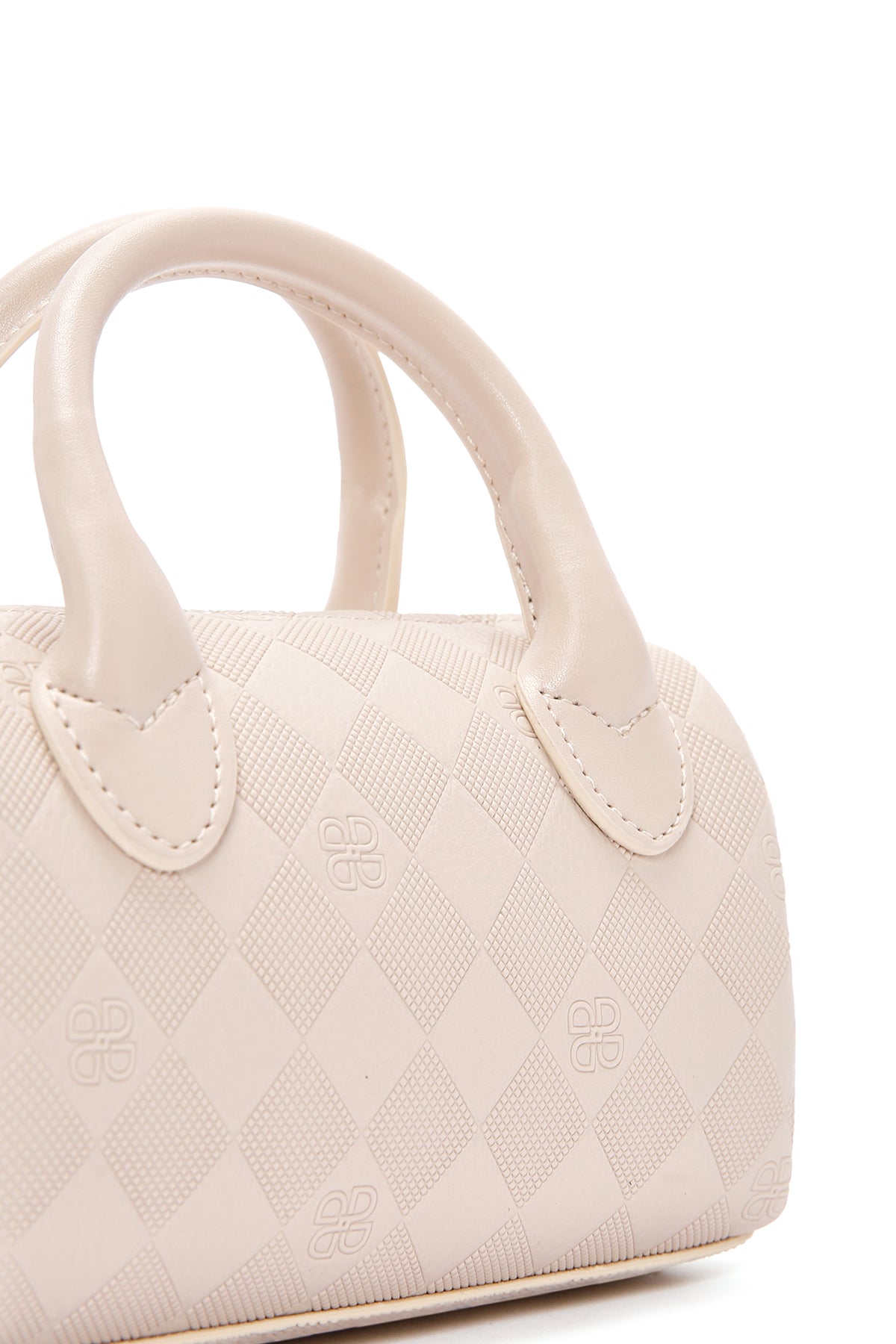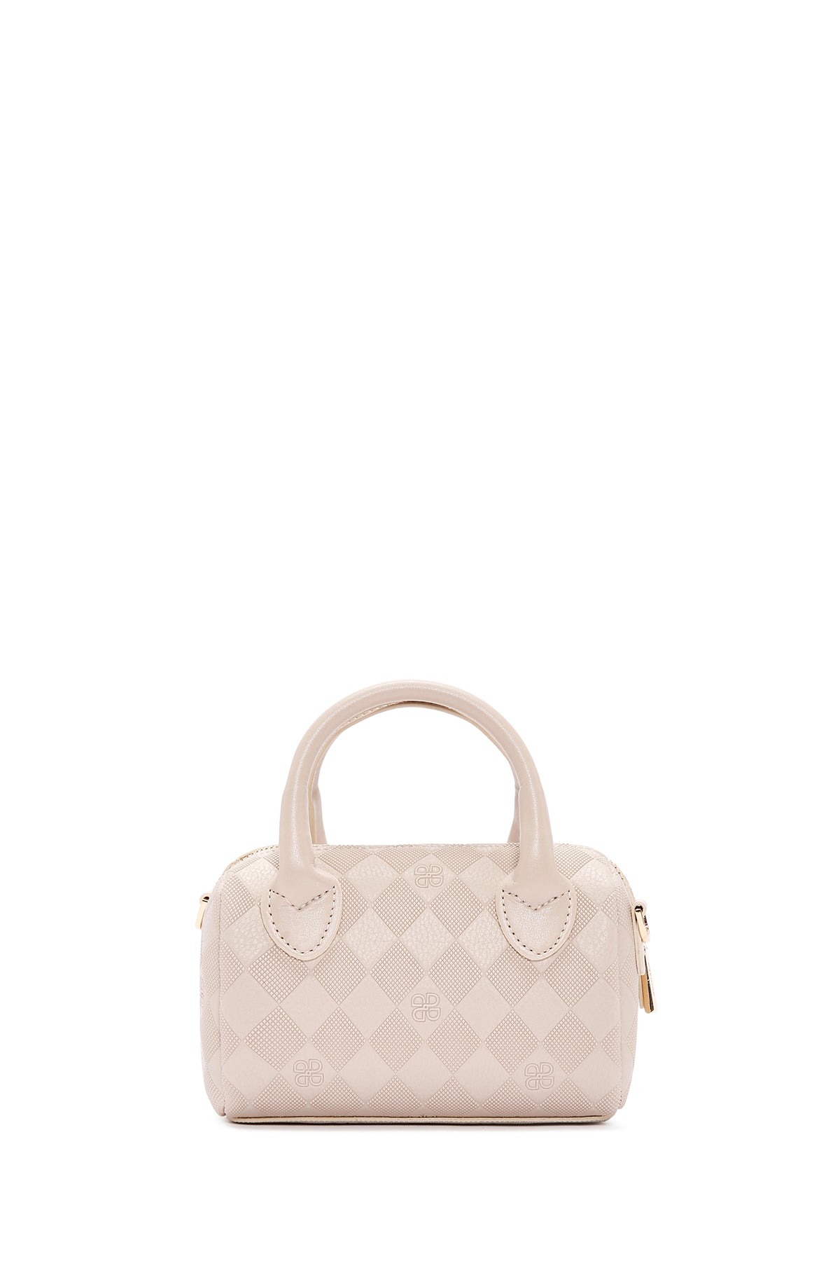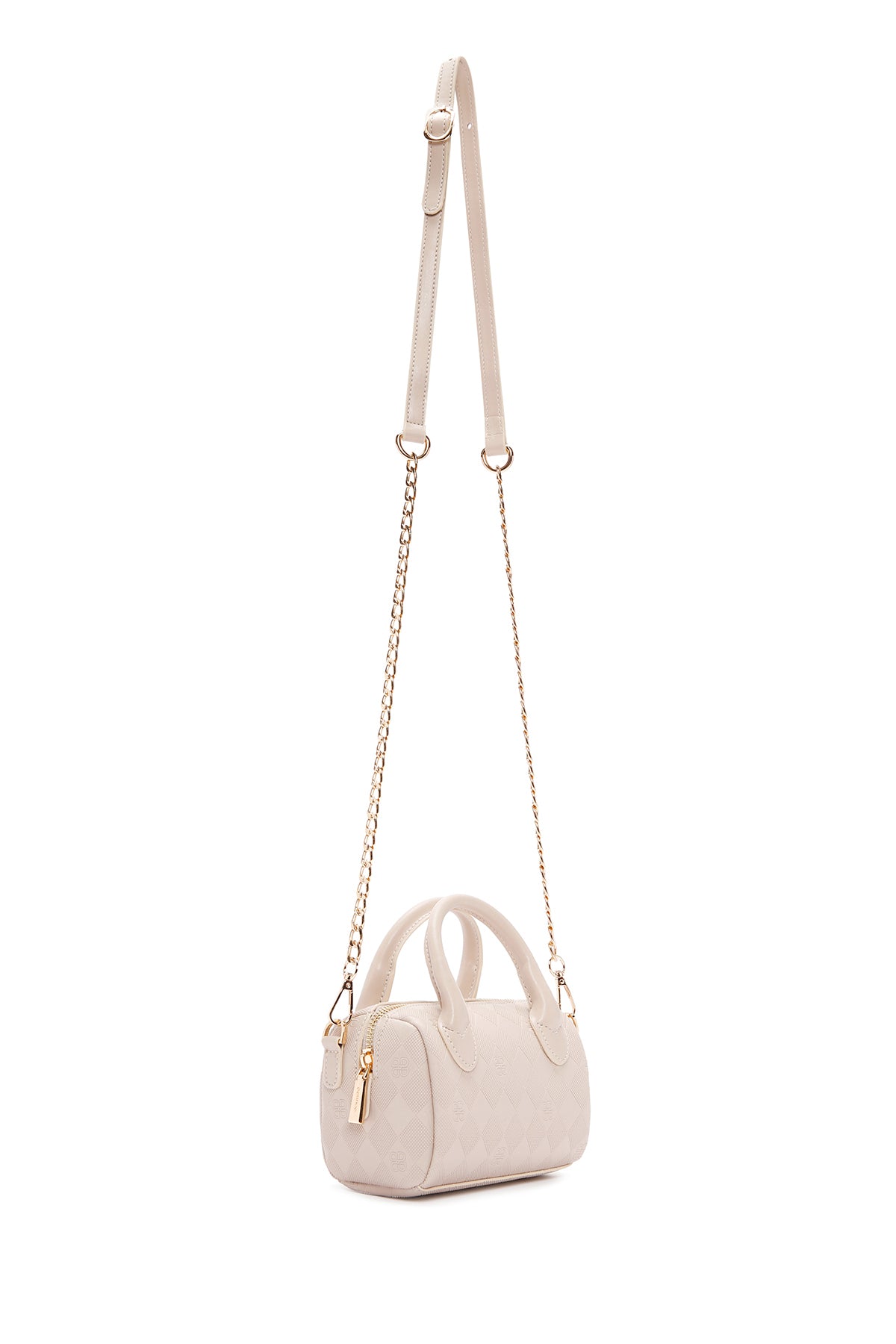 Kadın Krem Uzun Askılı Baskılı Mini Çapraz Çanta