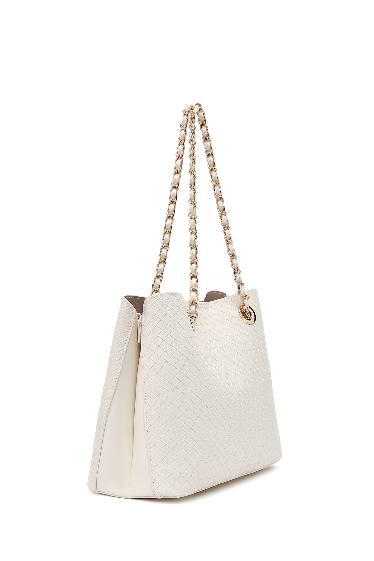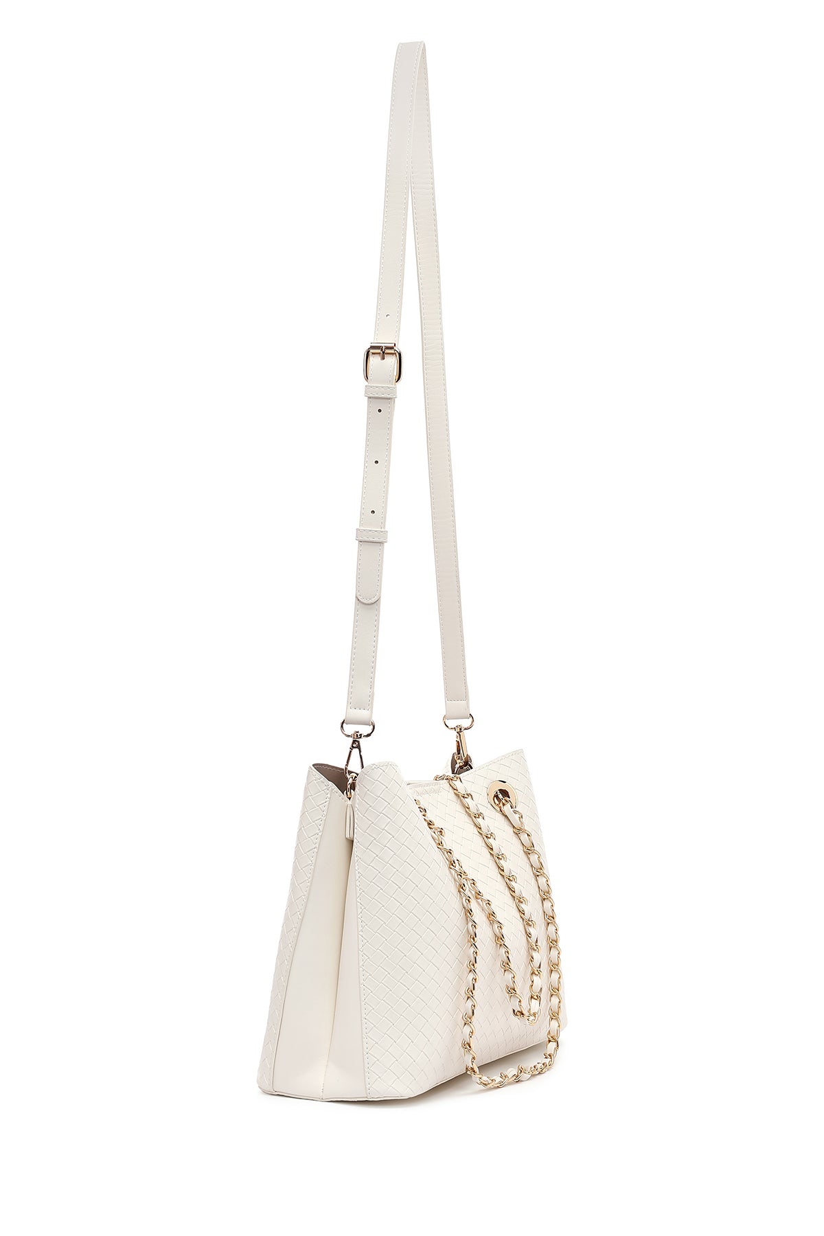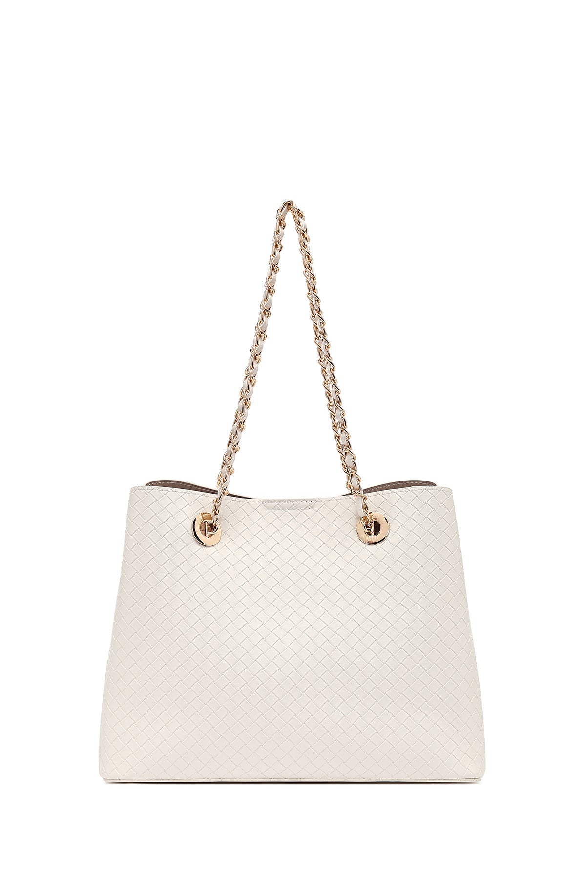 Kadın Krem Uzun Askılı Baskılı Omuz Çantası