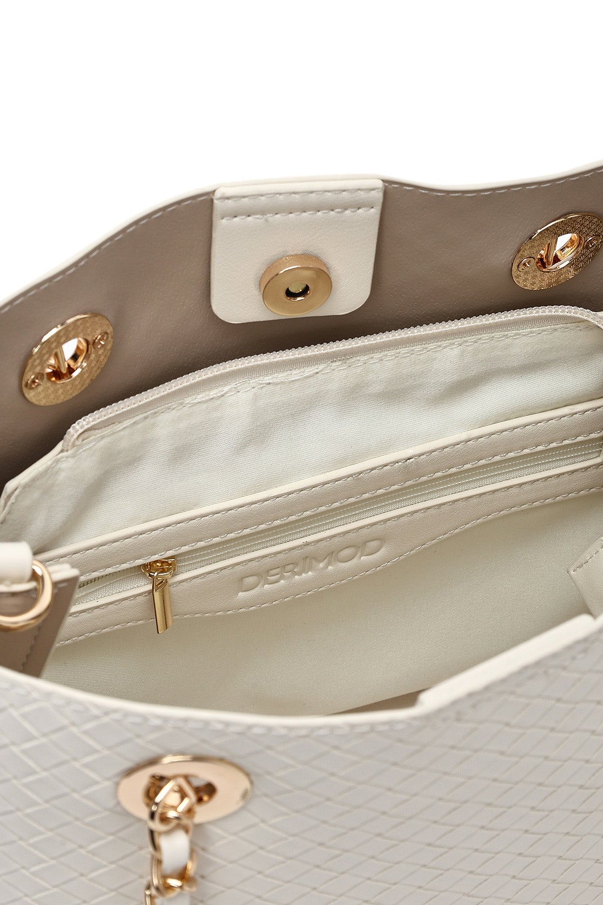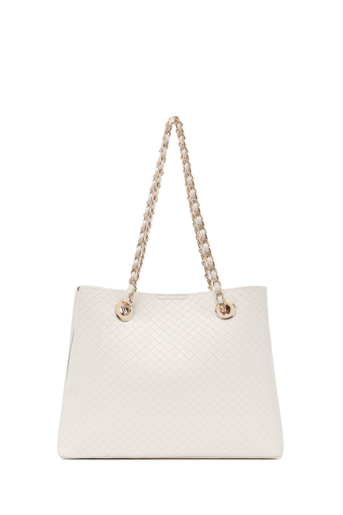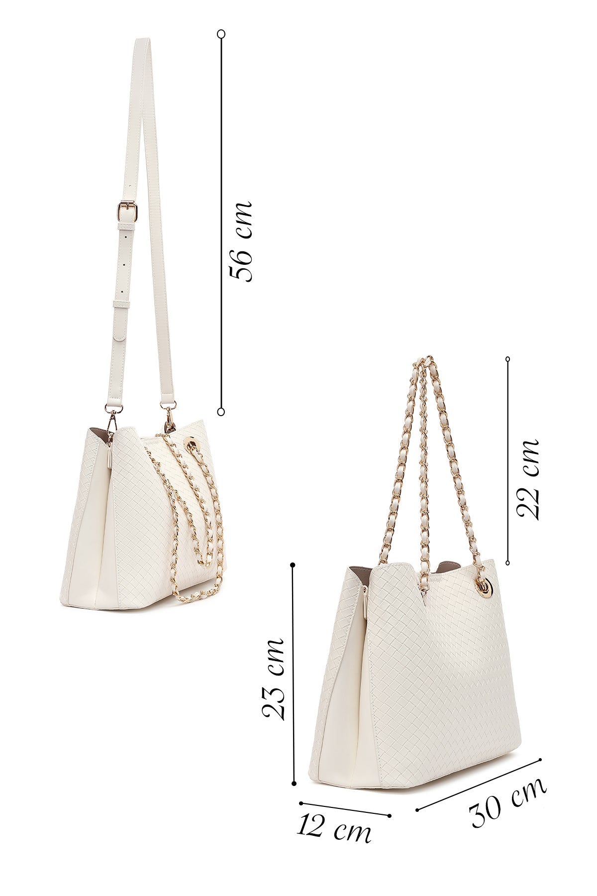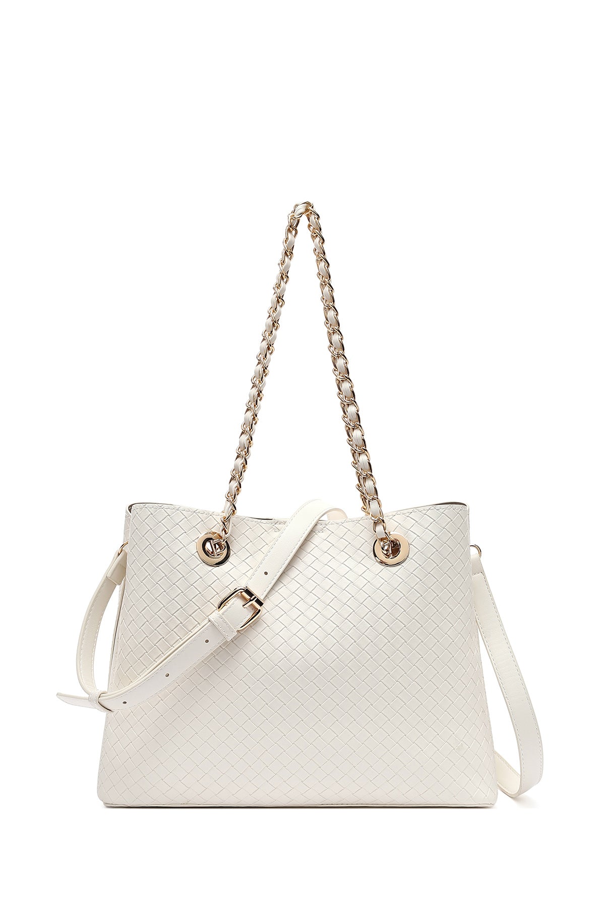 Kadın Krem Uzun Askılı Baskılı Omuz Çantası