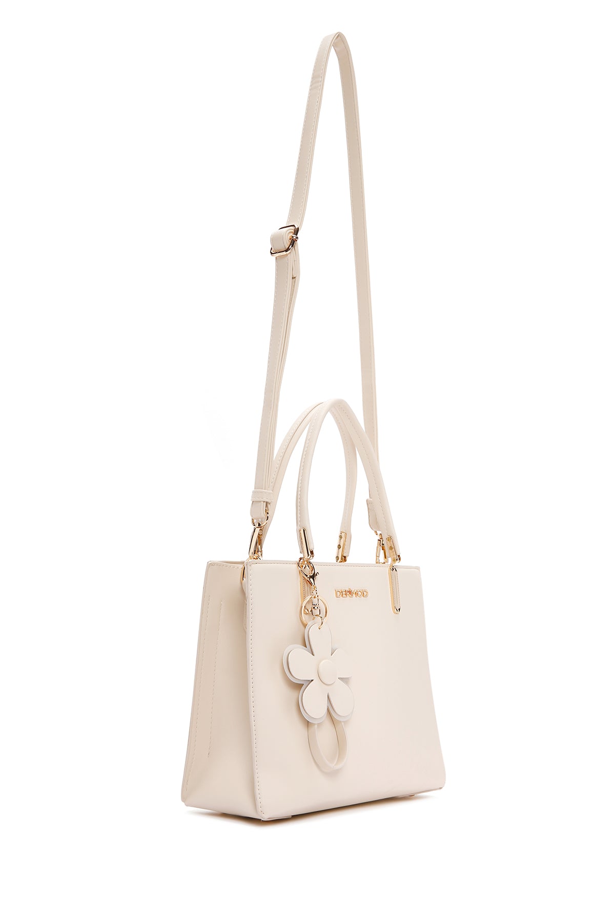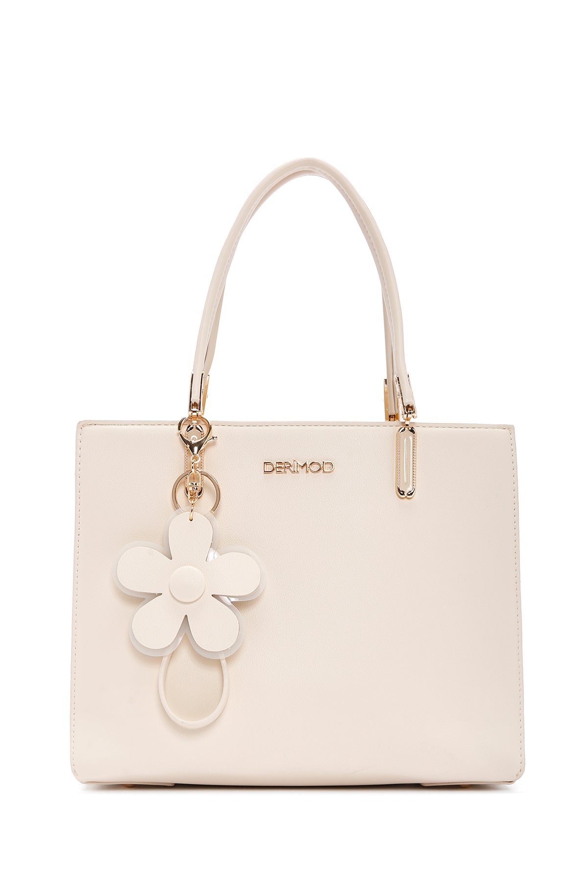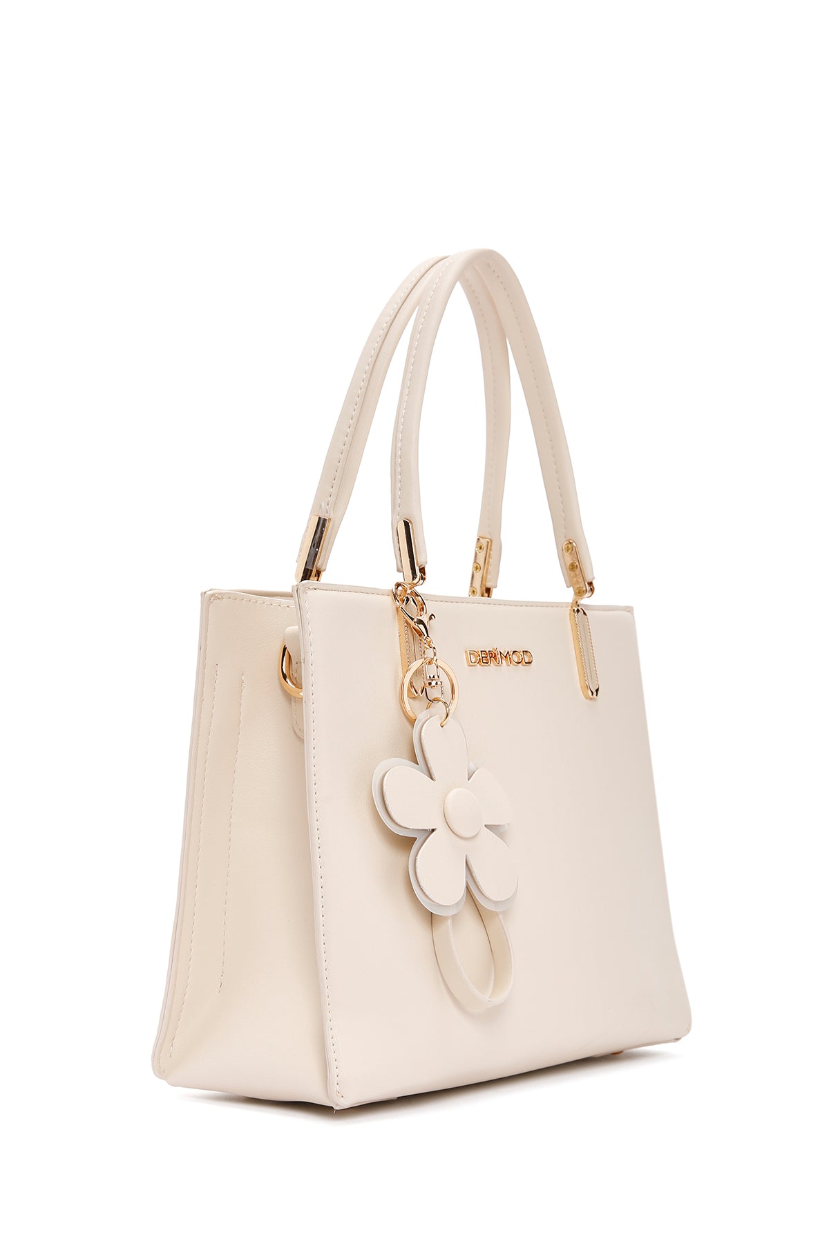 Kadın Krem Uzun Askılı Charmlı Kol Çantası