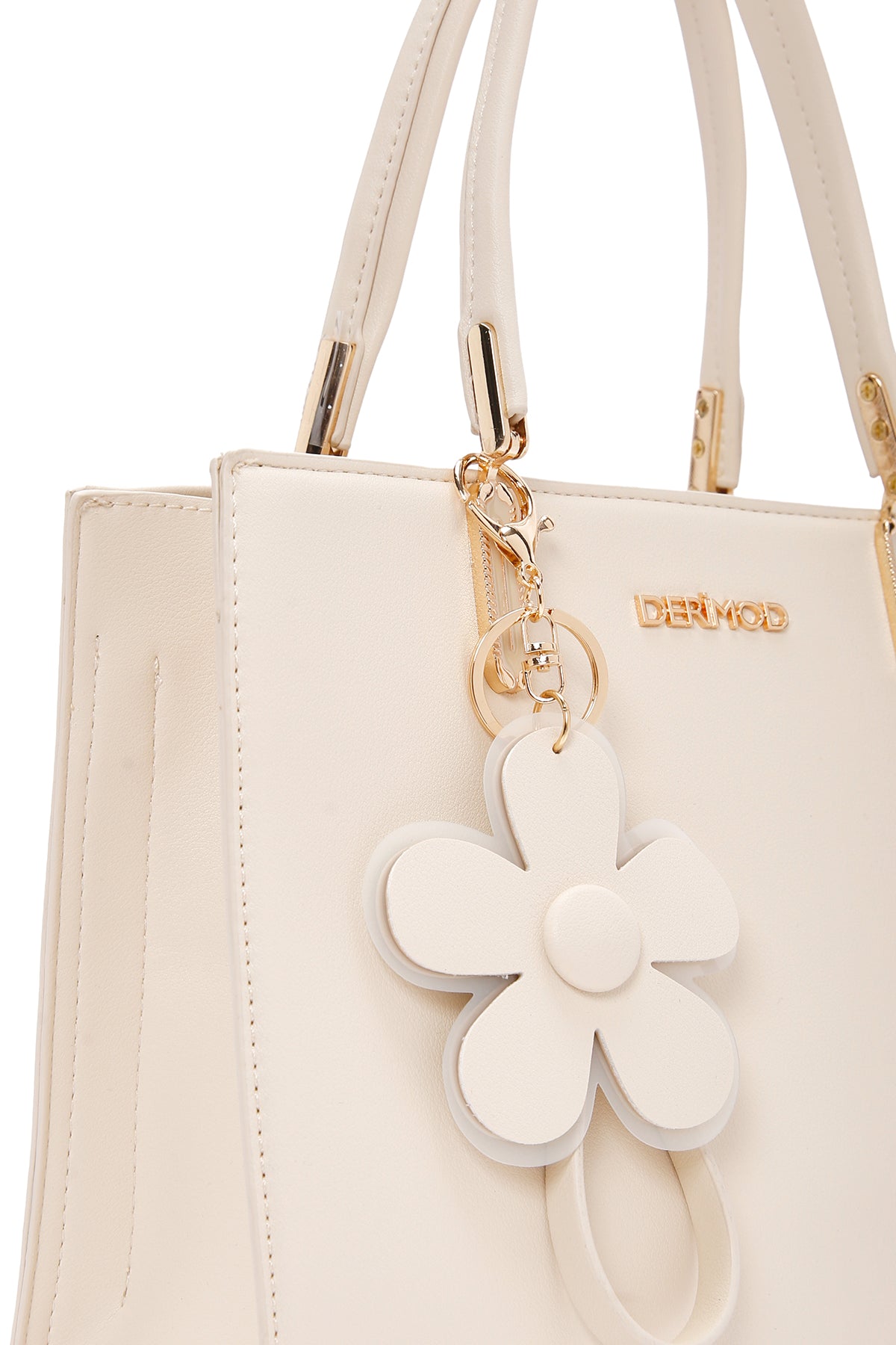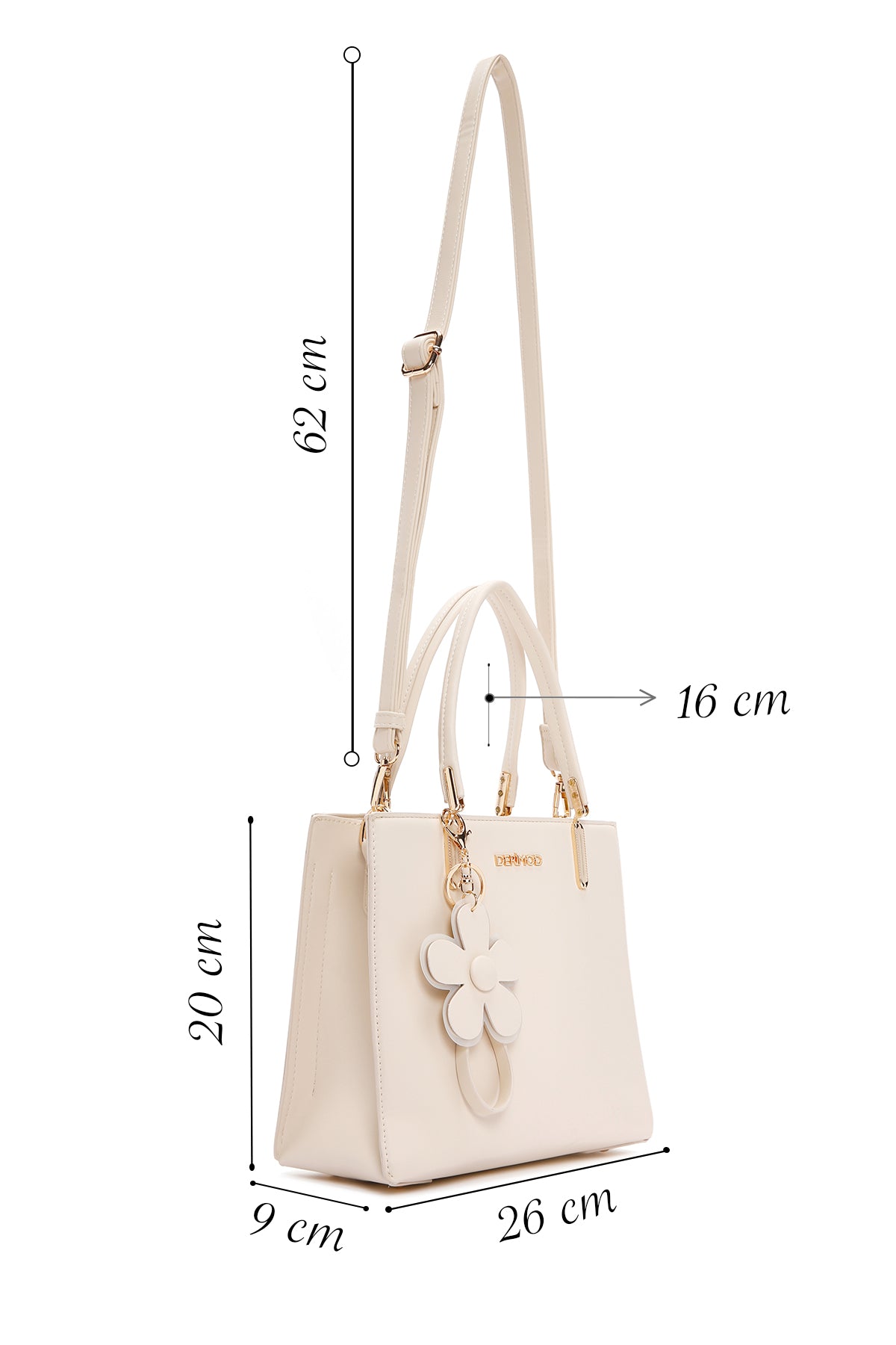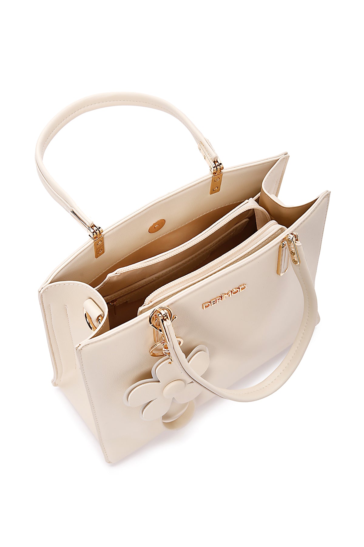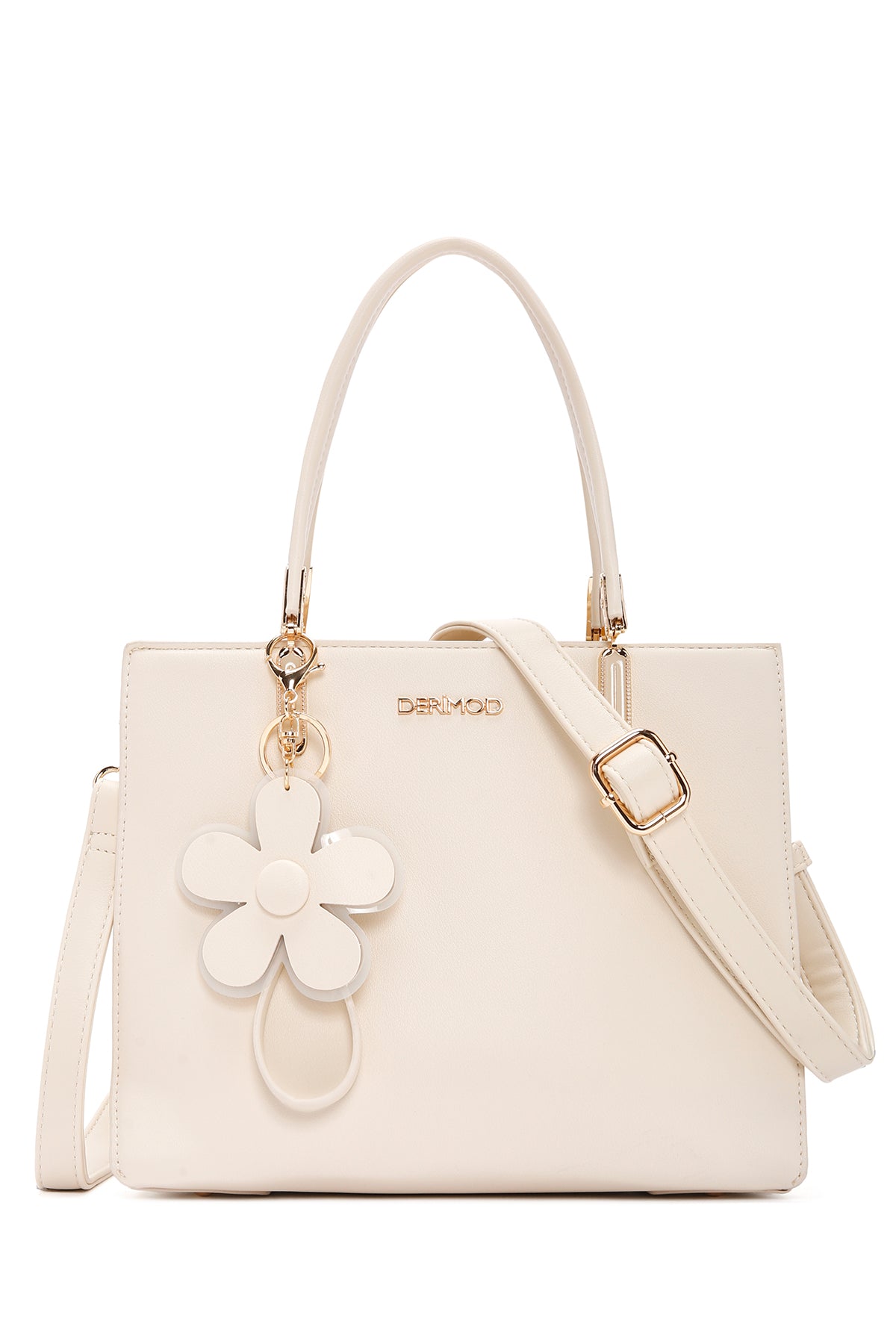 Kadın Krem Uzun Askılı Charmlı Kol Çantası