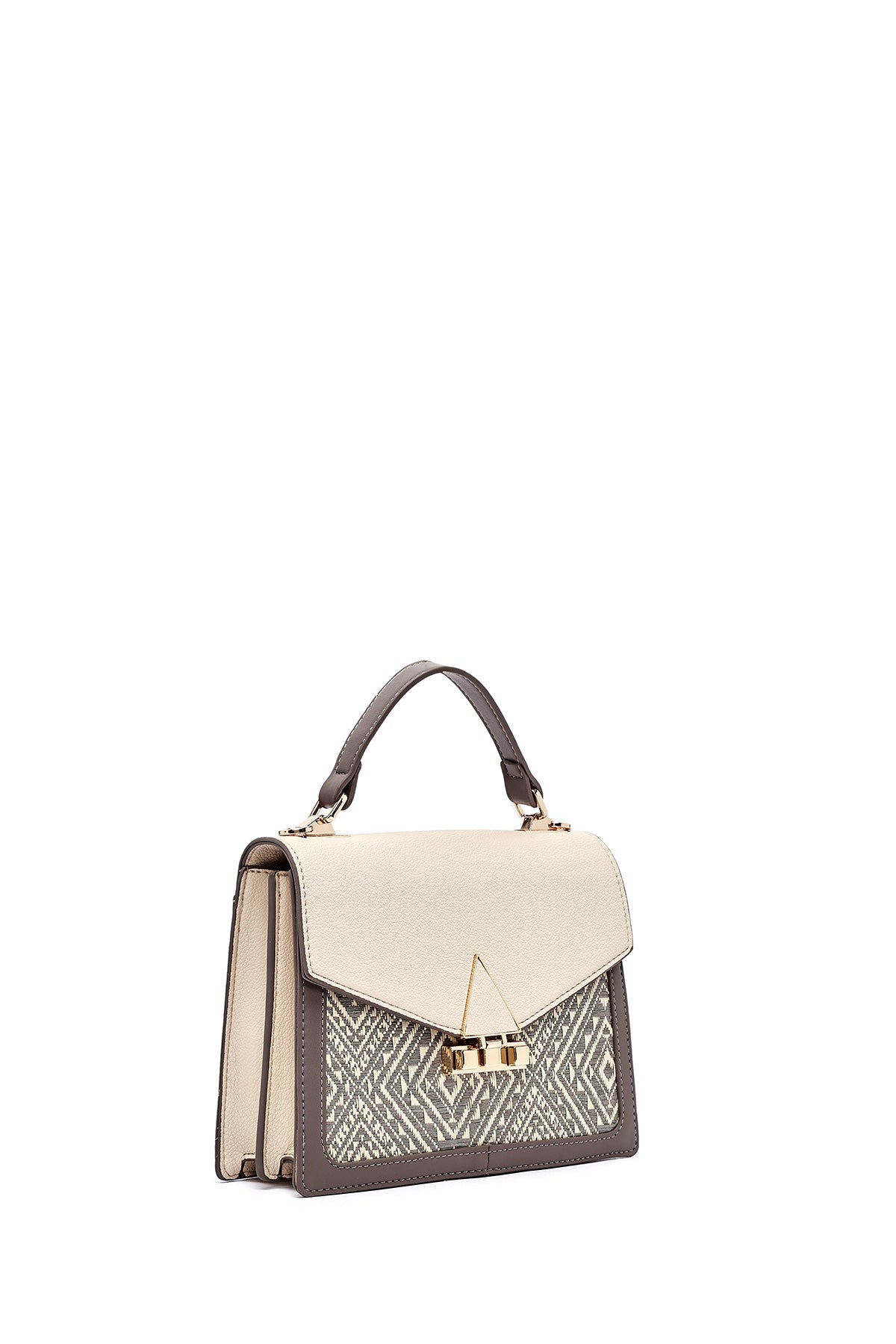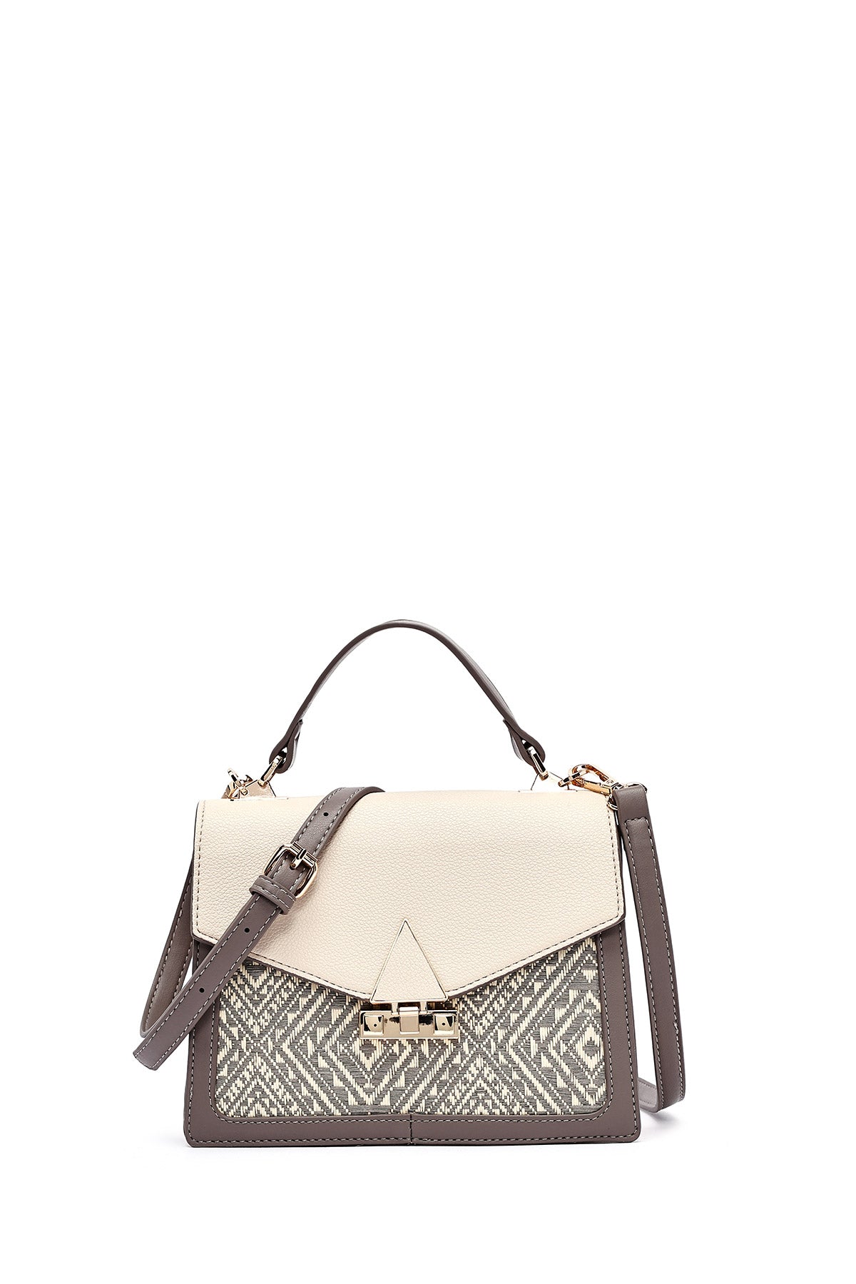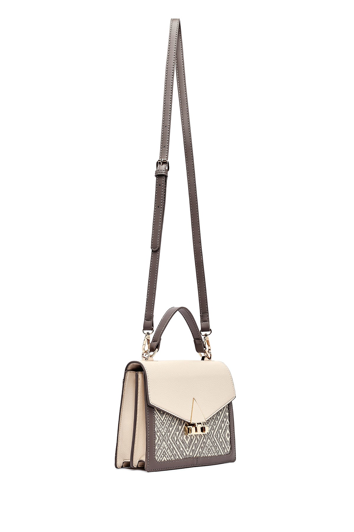 Kadın Krem Uzun Askılı Desenli Kol Çantası