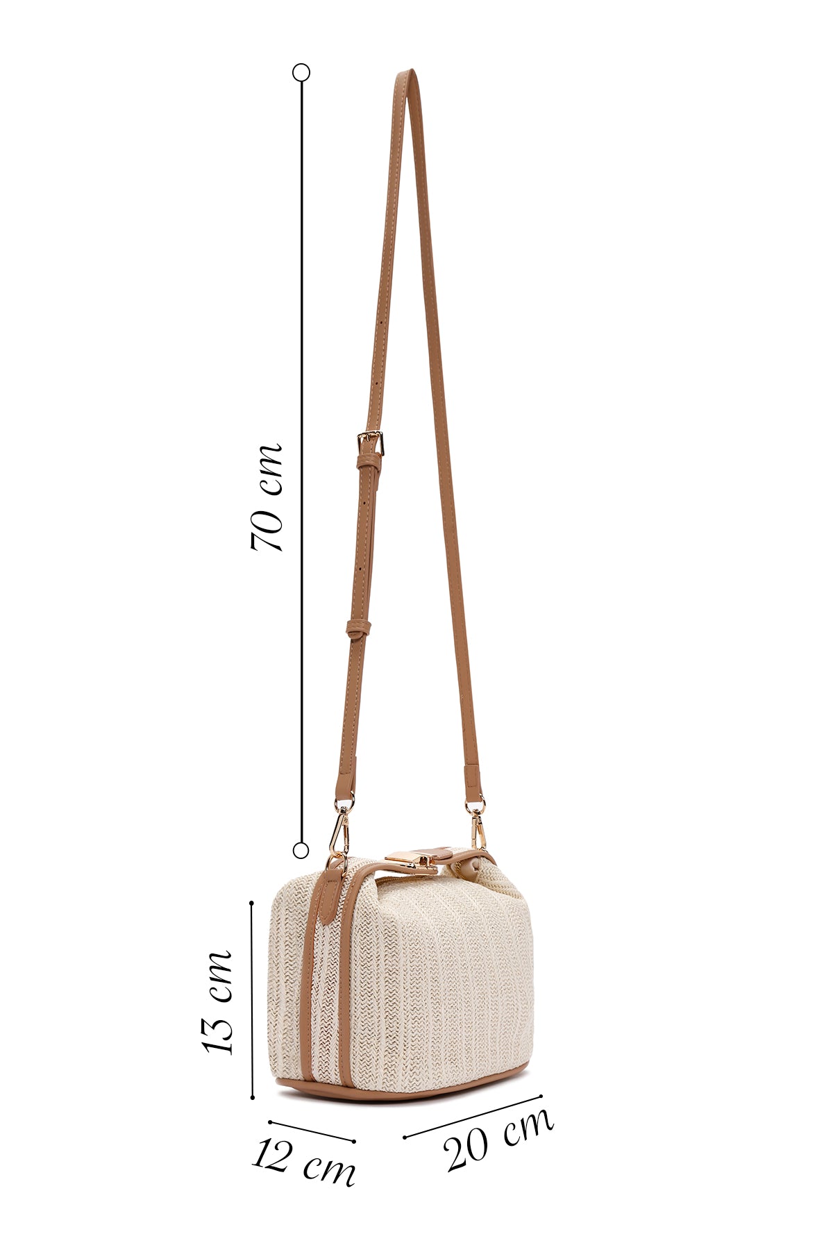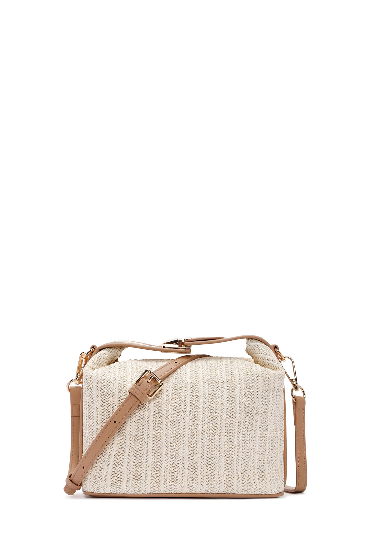 Kadın Krem Uzun Askılı Hasır Kol Çantası