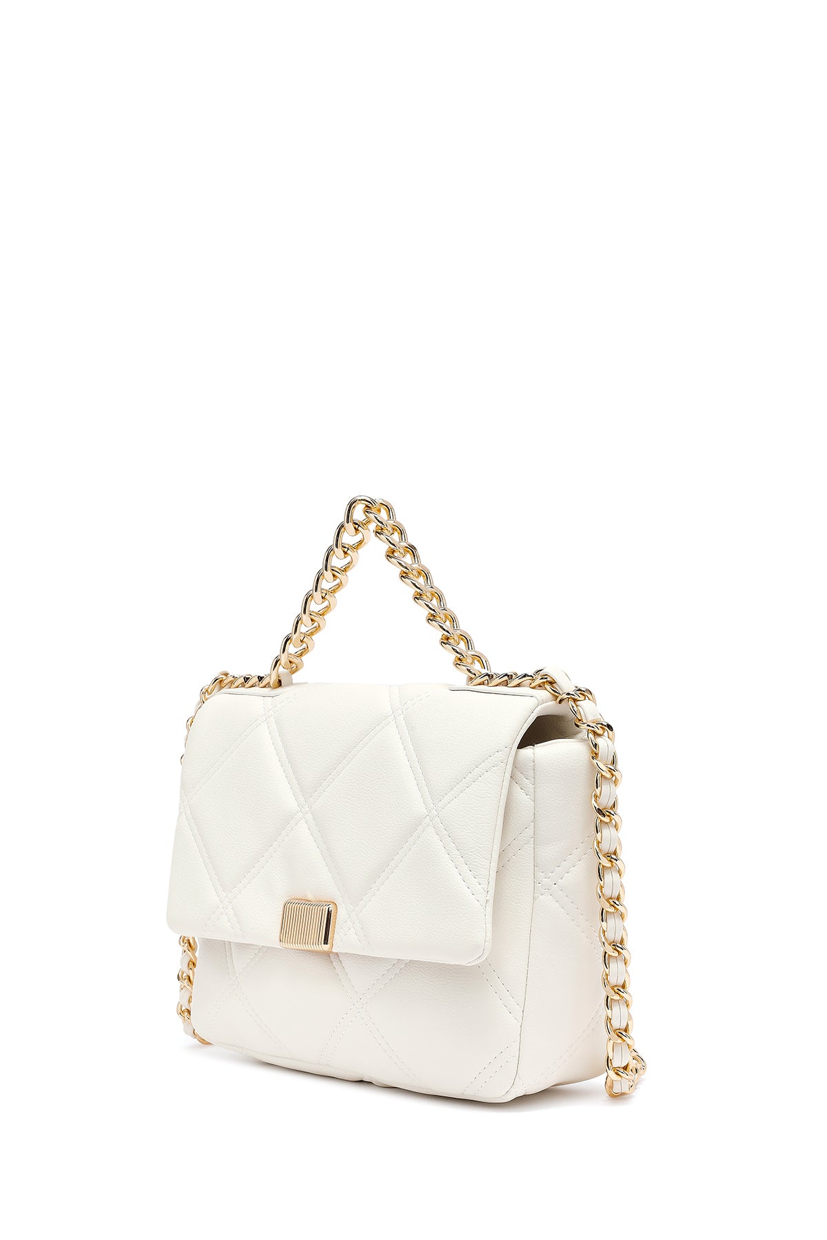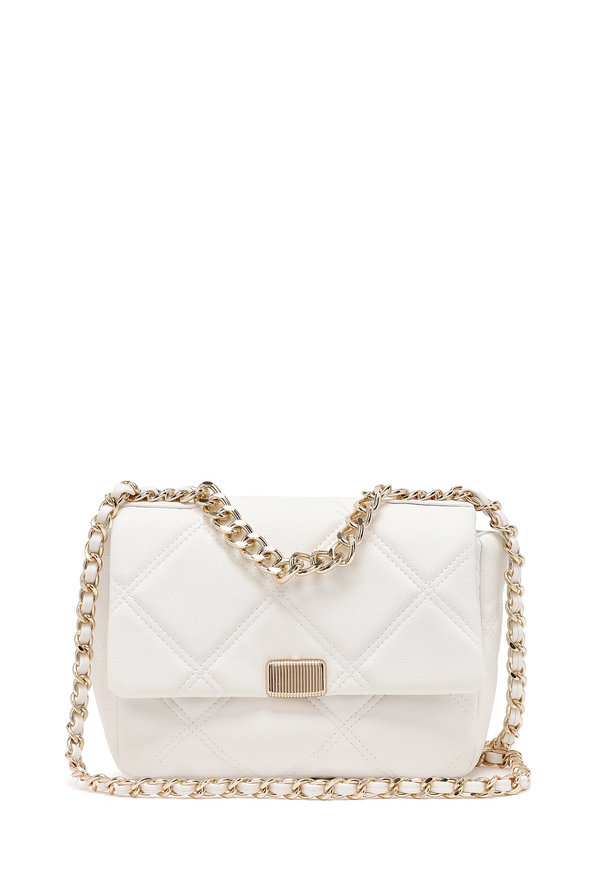 Kadın Krem Uzun Askılı Kapitone Çapraz Çanta