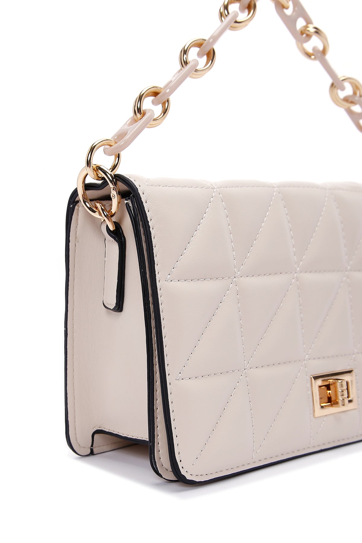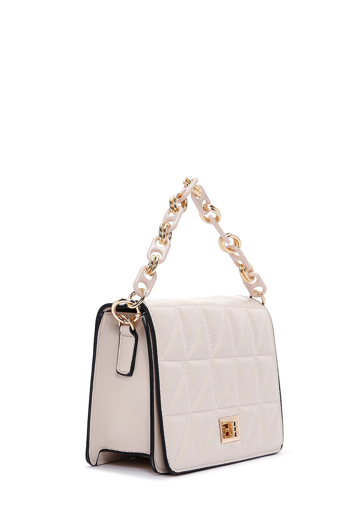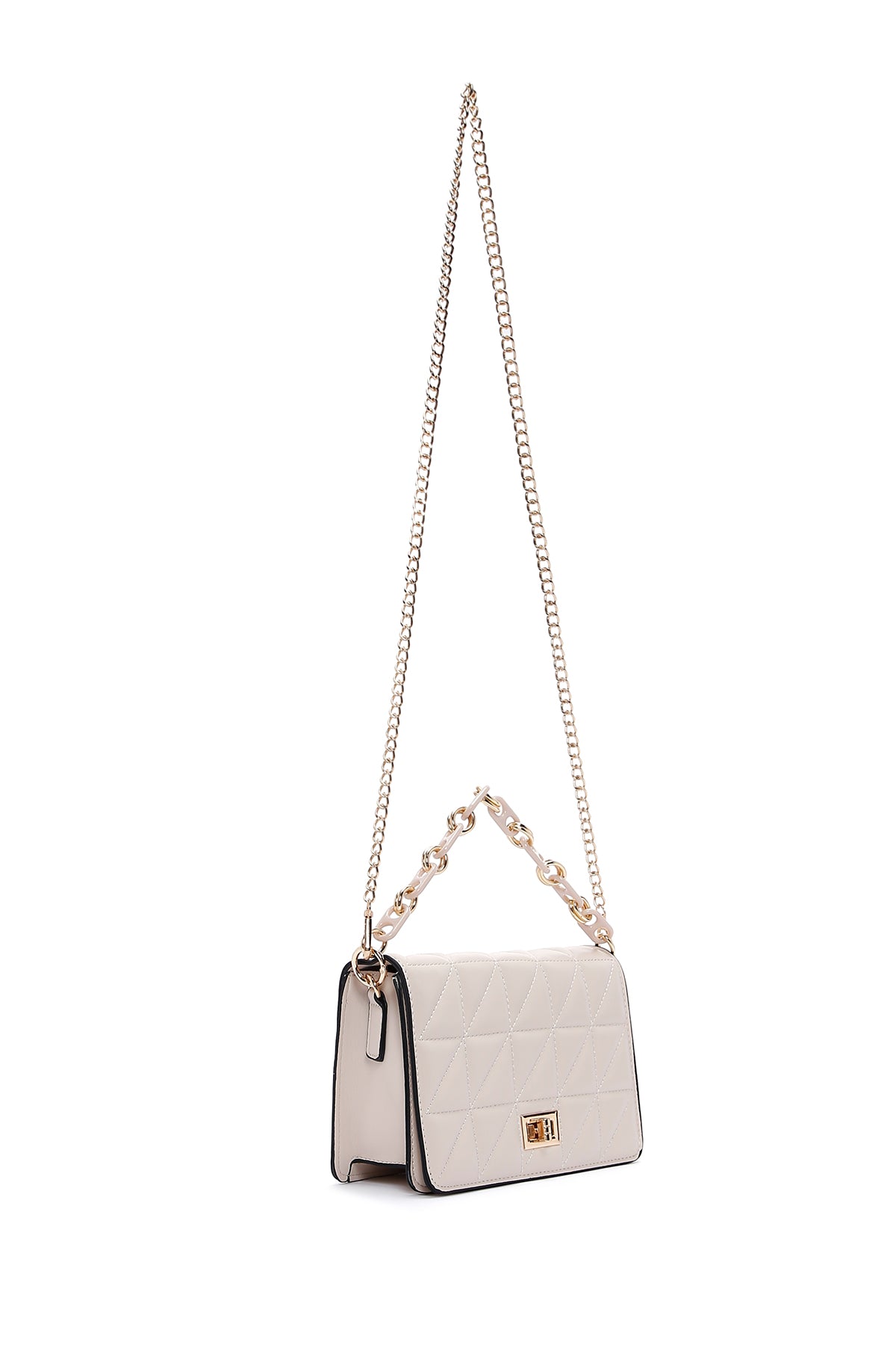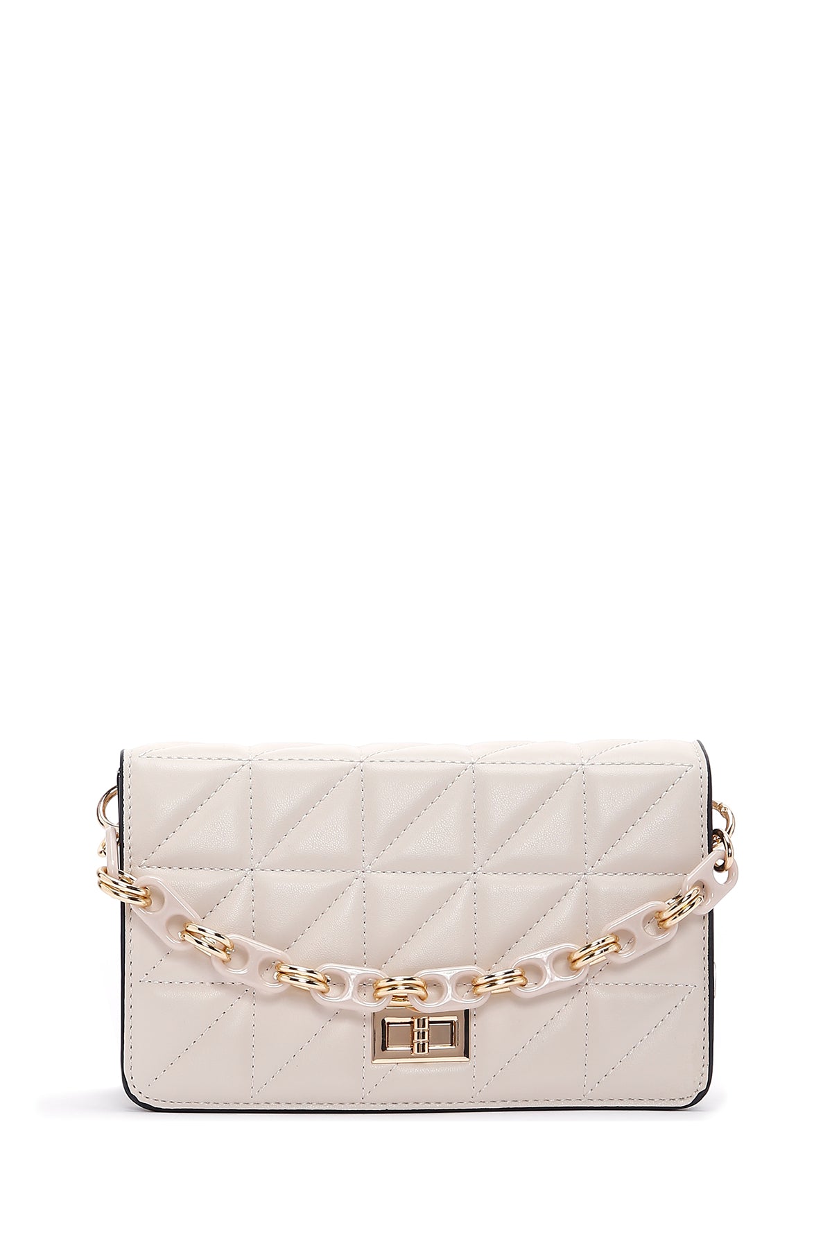 Kadın Krem Uzun Askılı Kapitone Çapraz Çanta