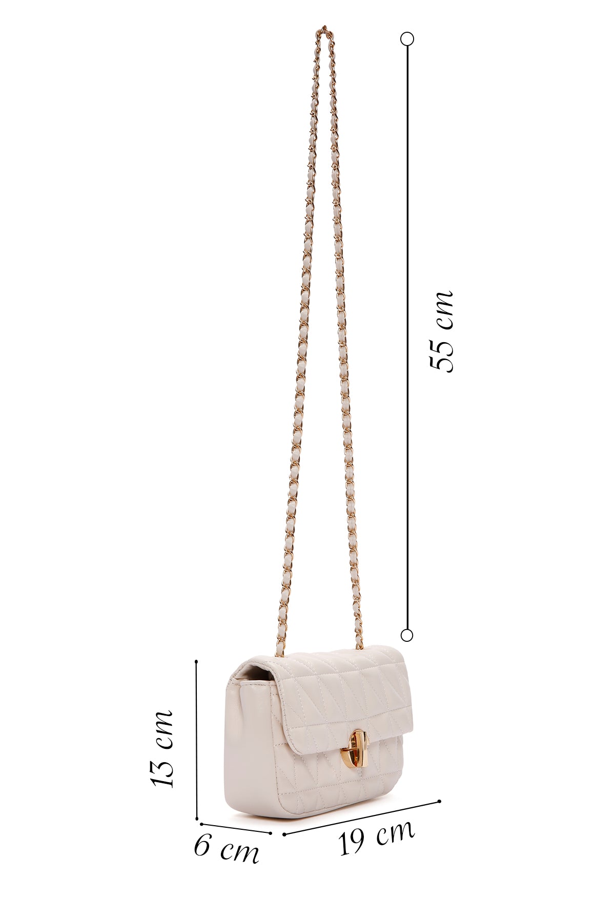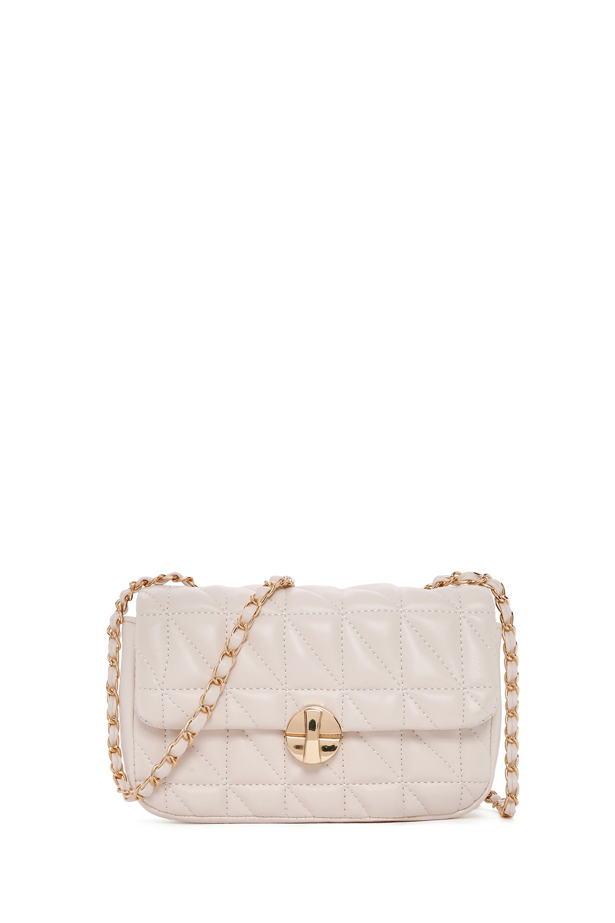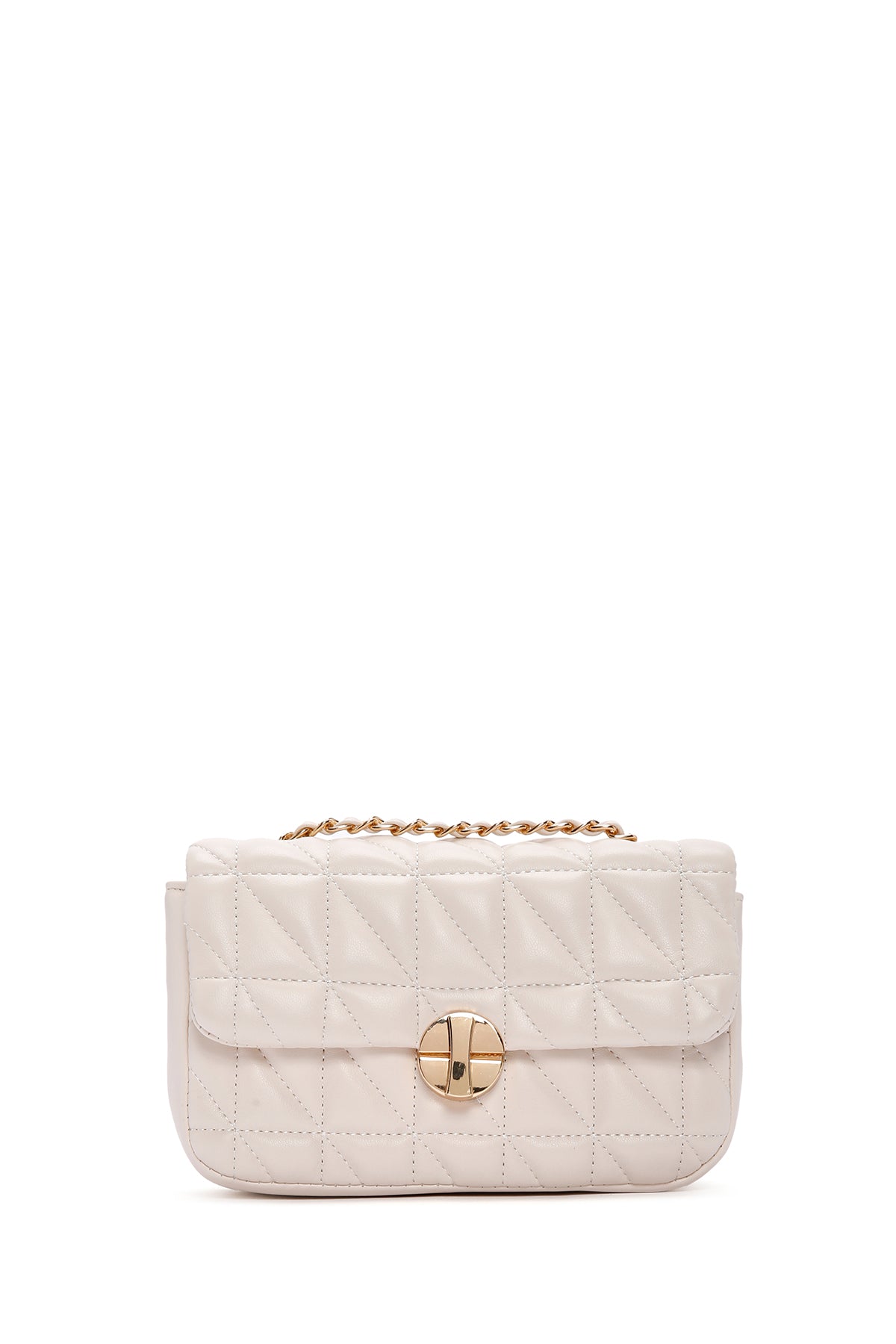 Kadın Krem Uzun Askılı Kapitone Çapraz Çanta