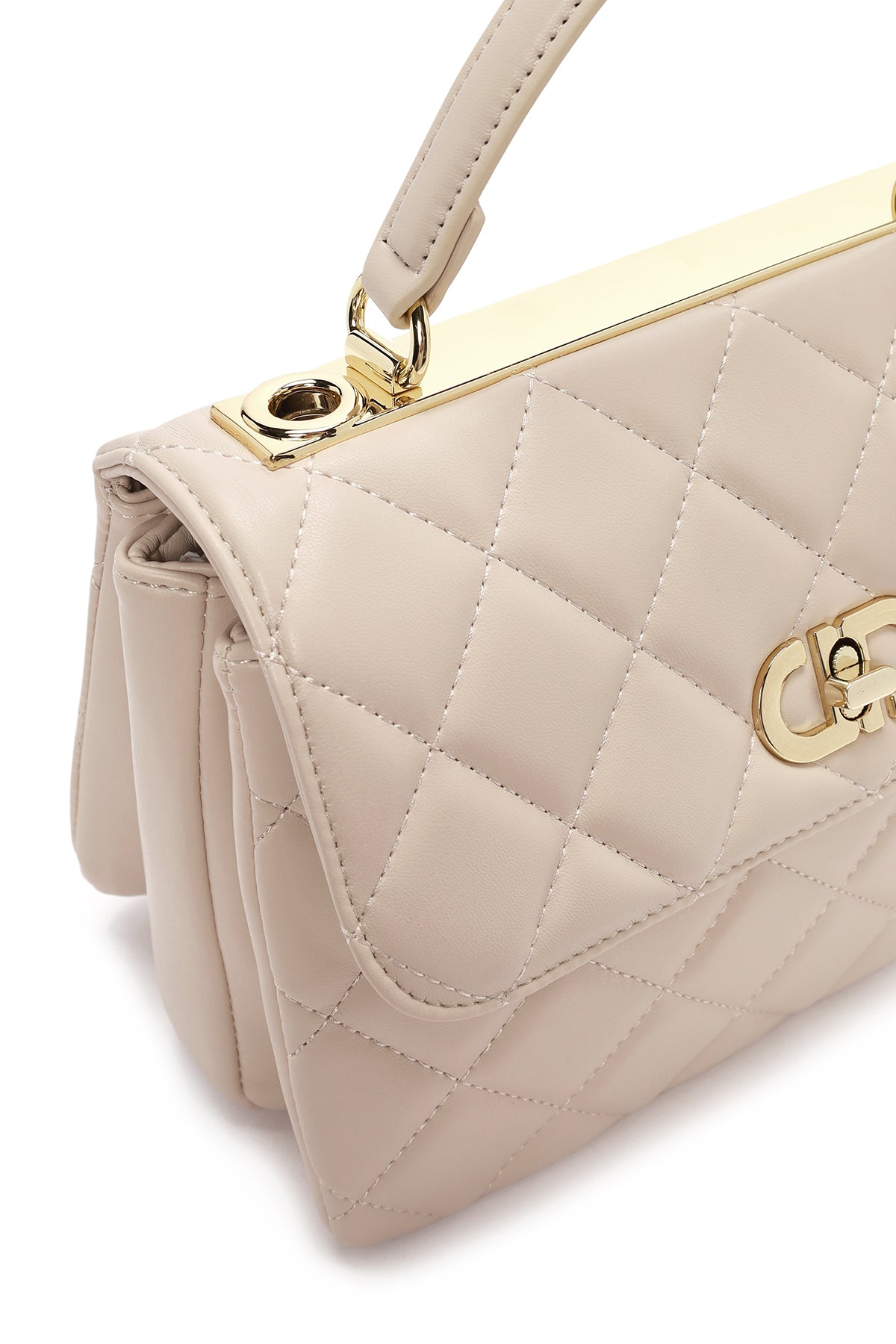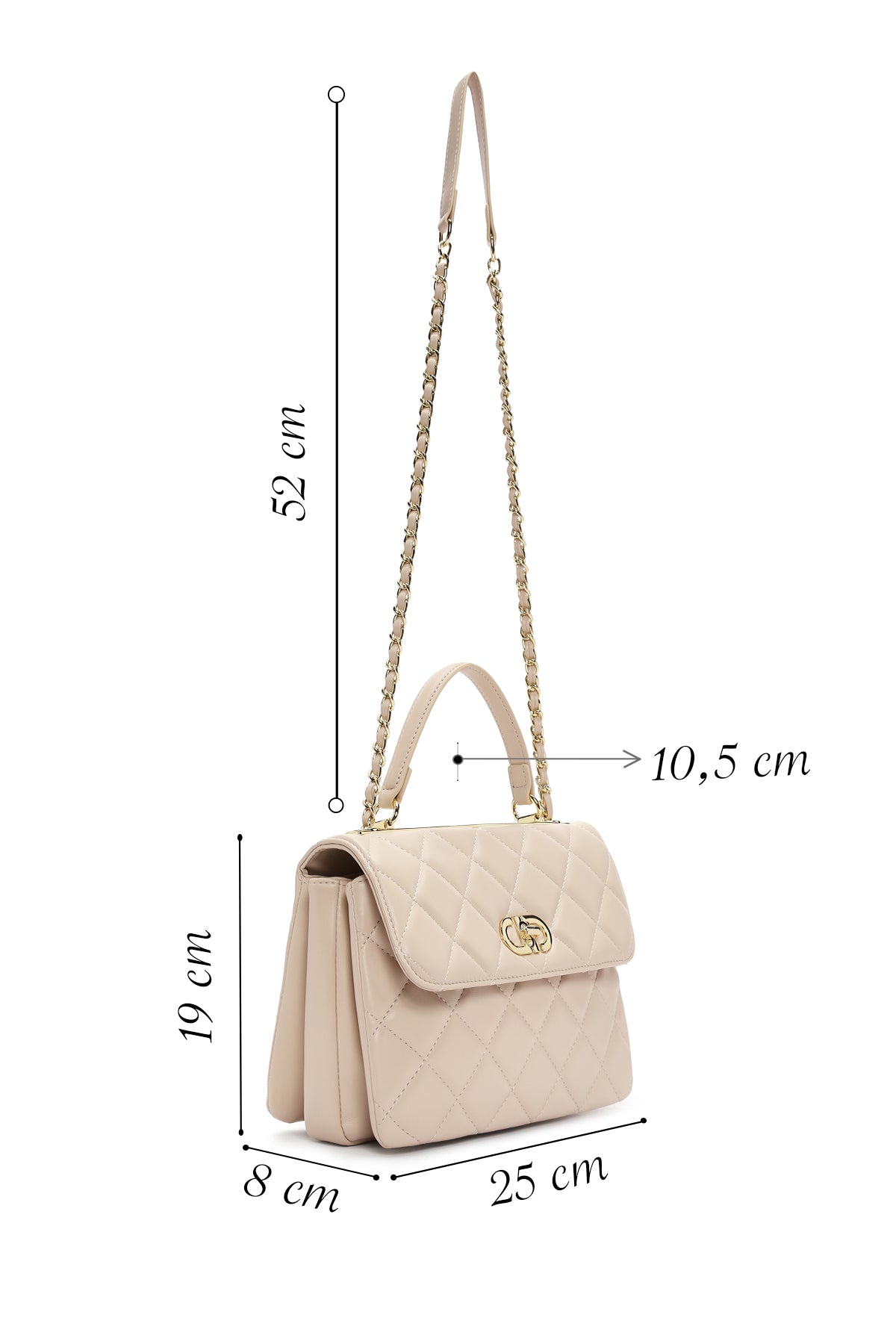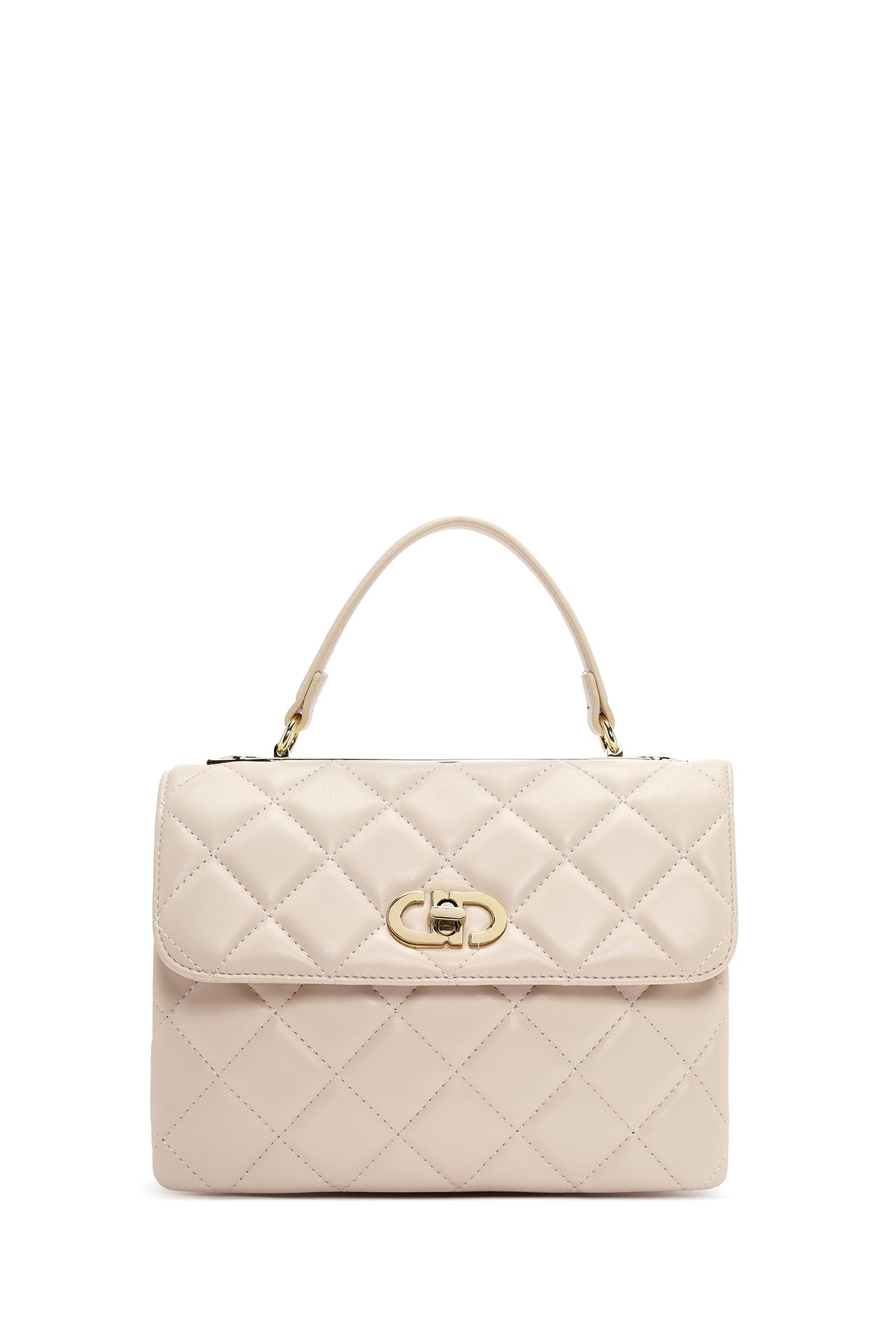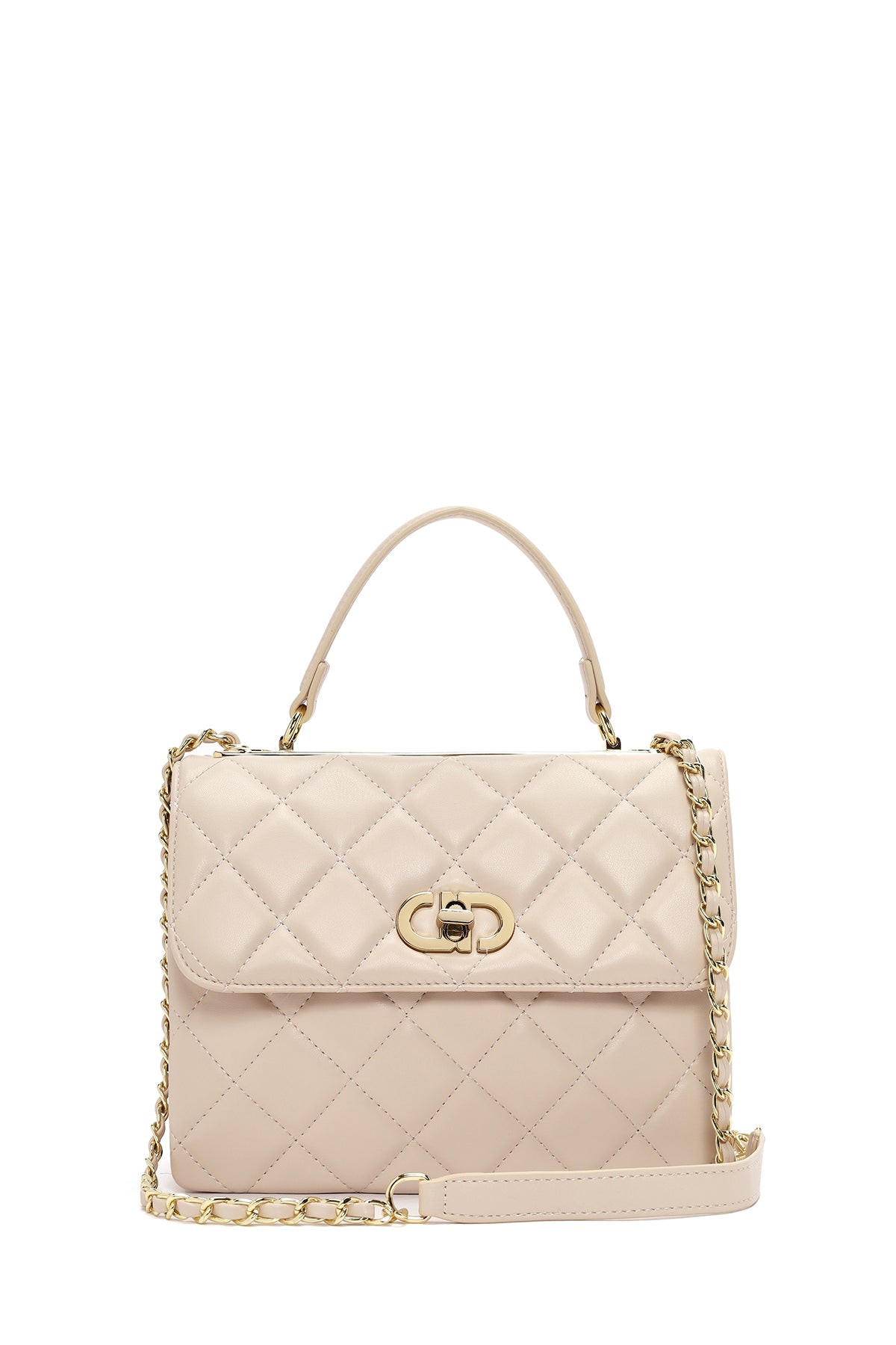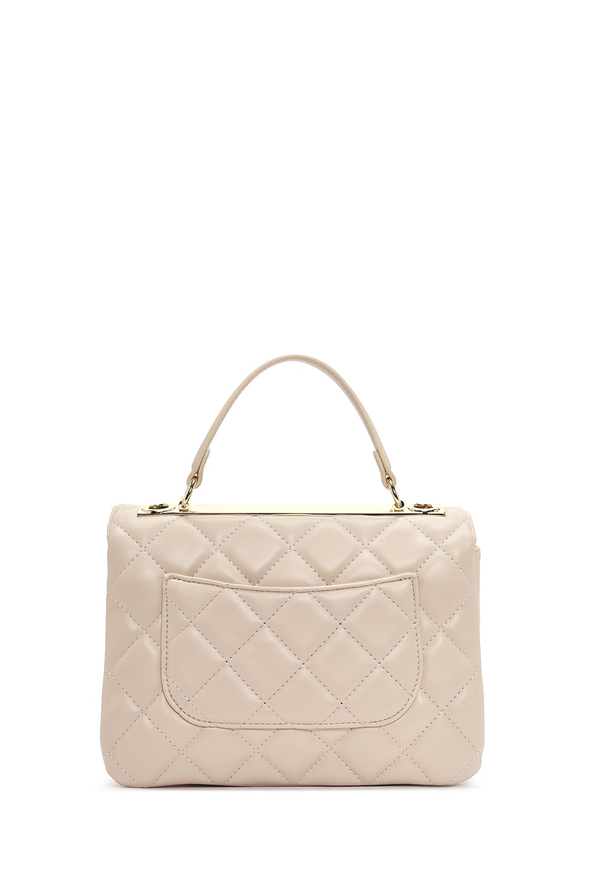 Kadın Krem Uzun Askılı Kapitone Kol Çantası