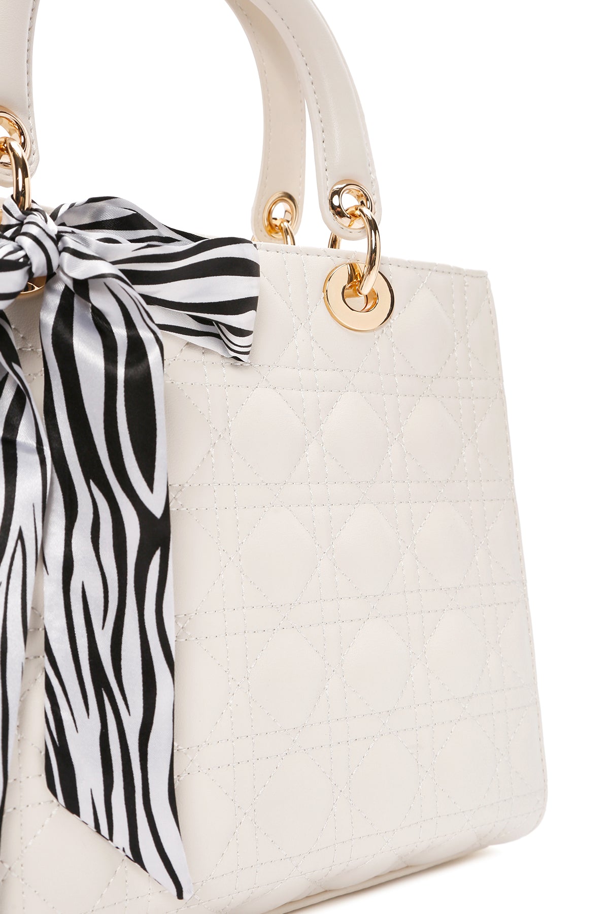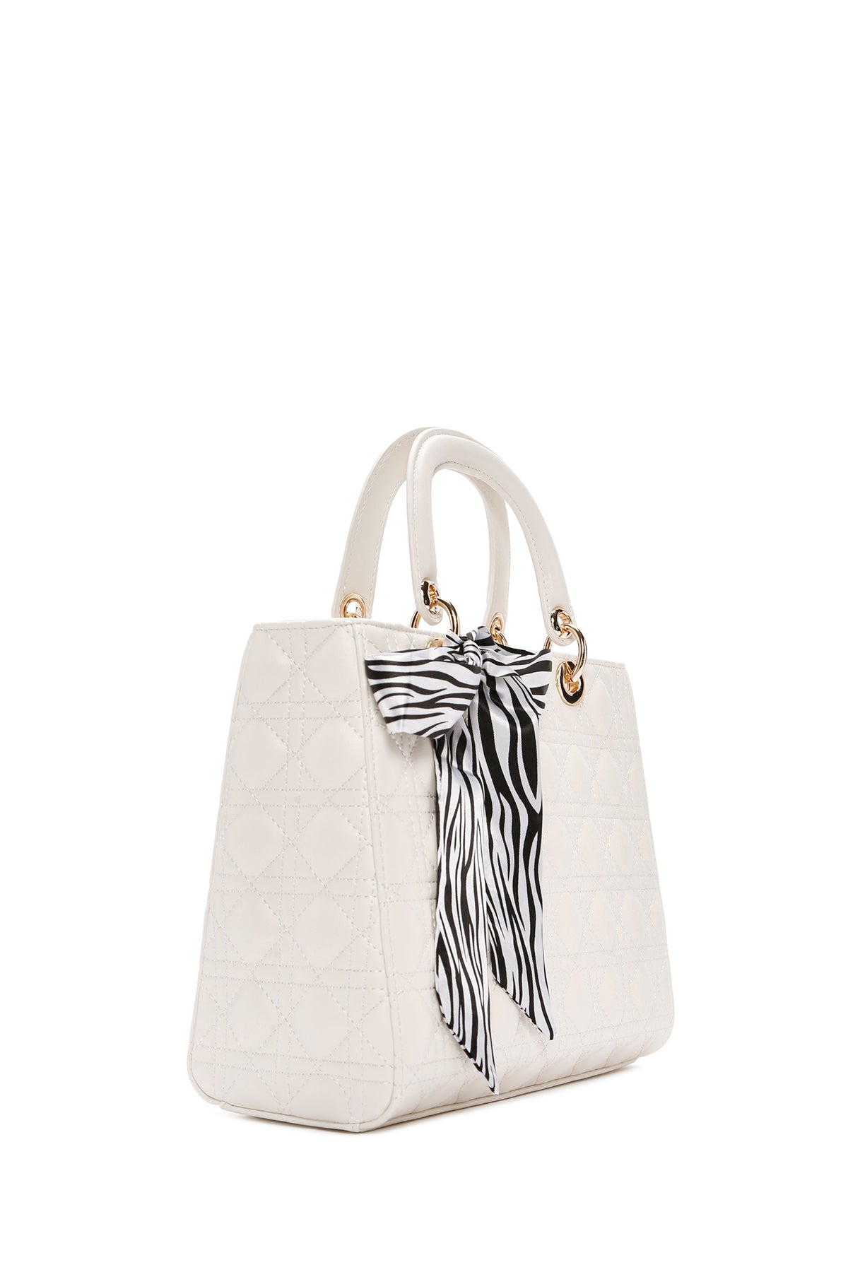 Kadın Krem Uzun Askılı Kapitone Kol Çantası