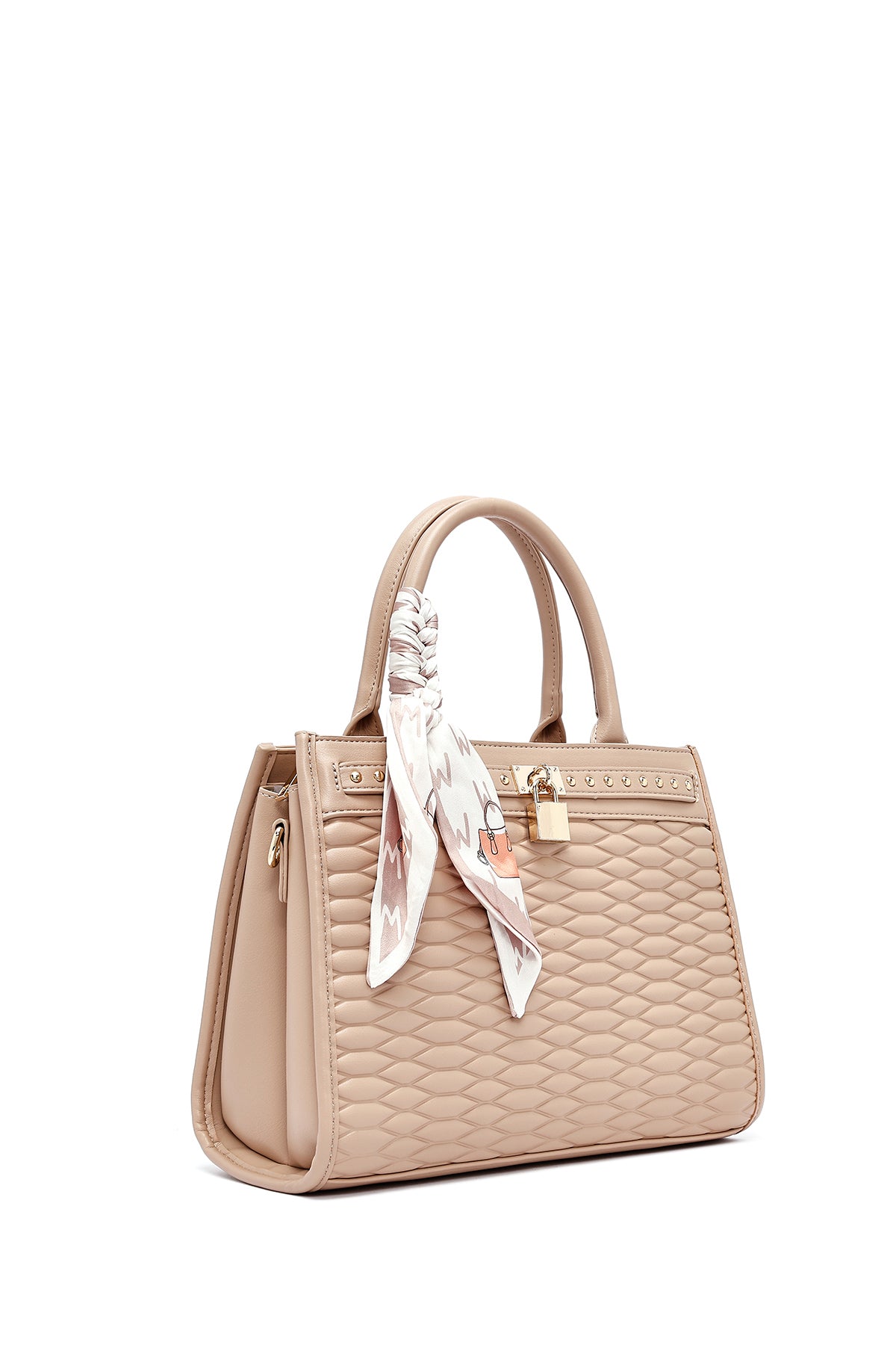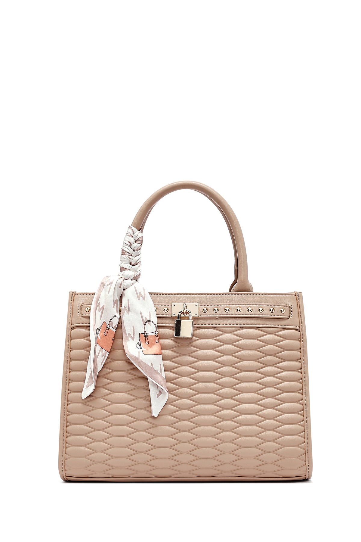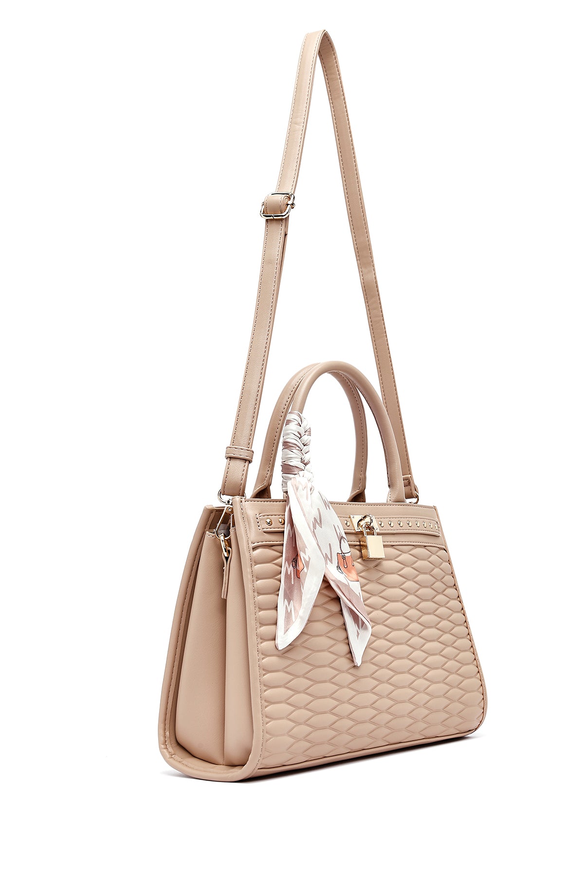 Kadın Krem Uzun Askılı Kapitone Kol Çantası