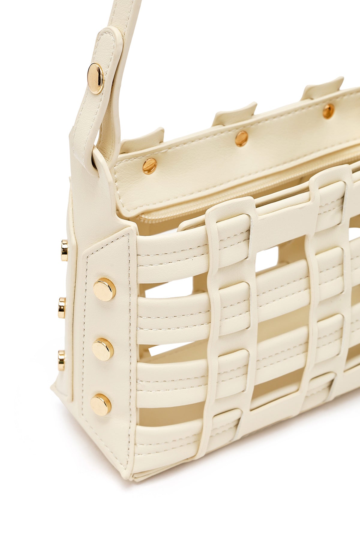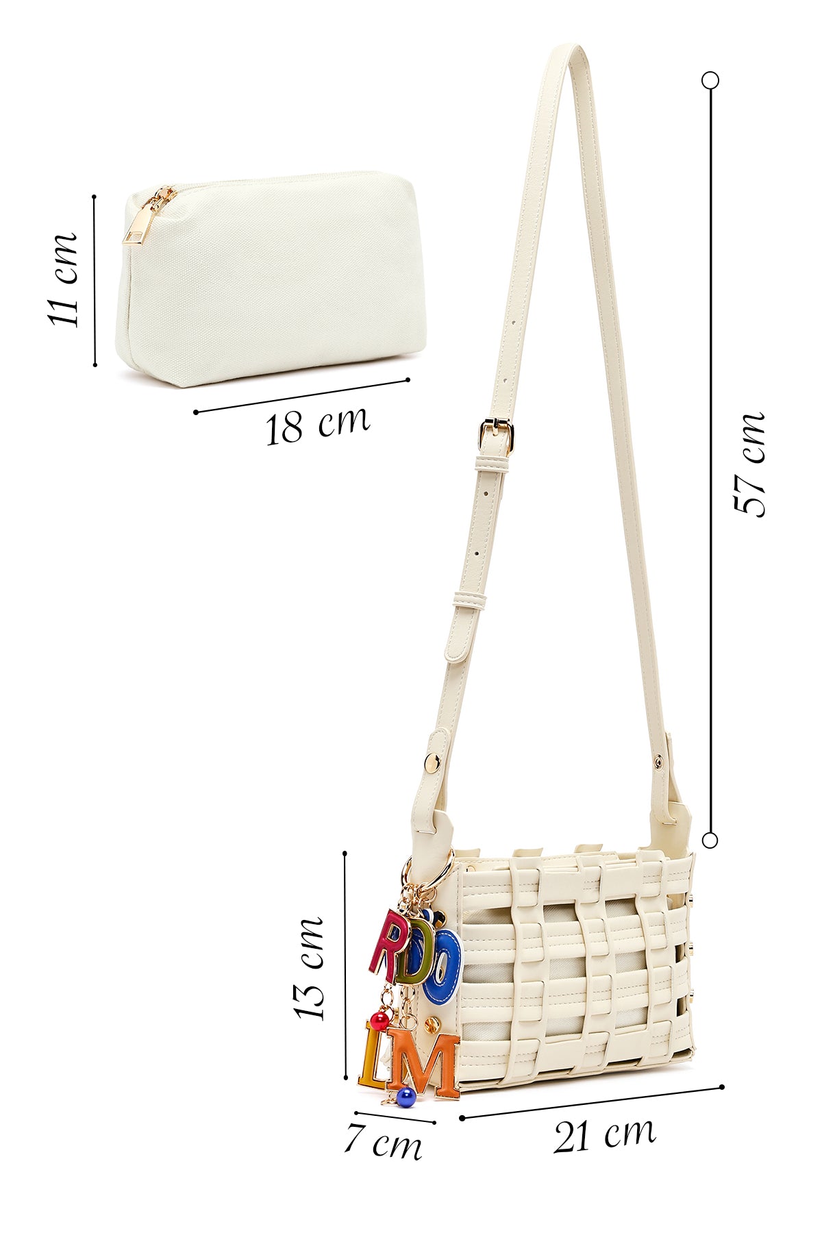 Kadın Krem Uzun Askılı Örgü Çapraz Çanta