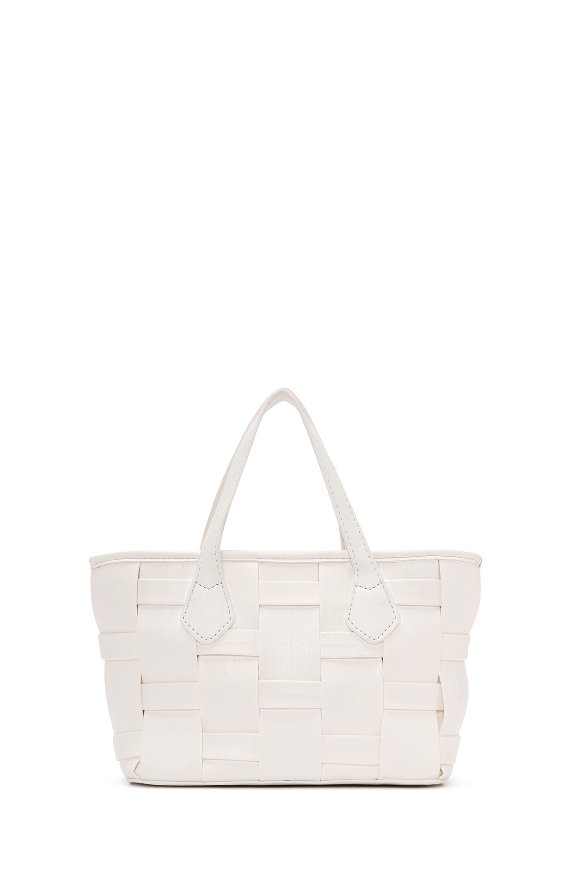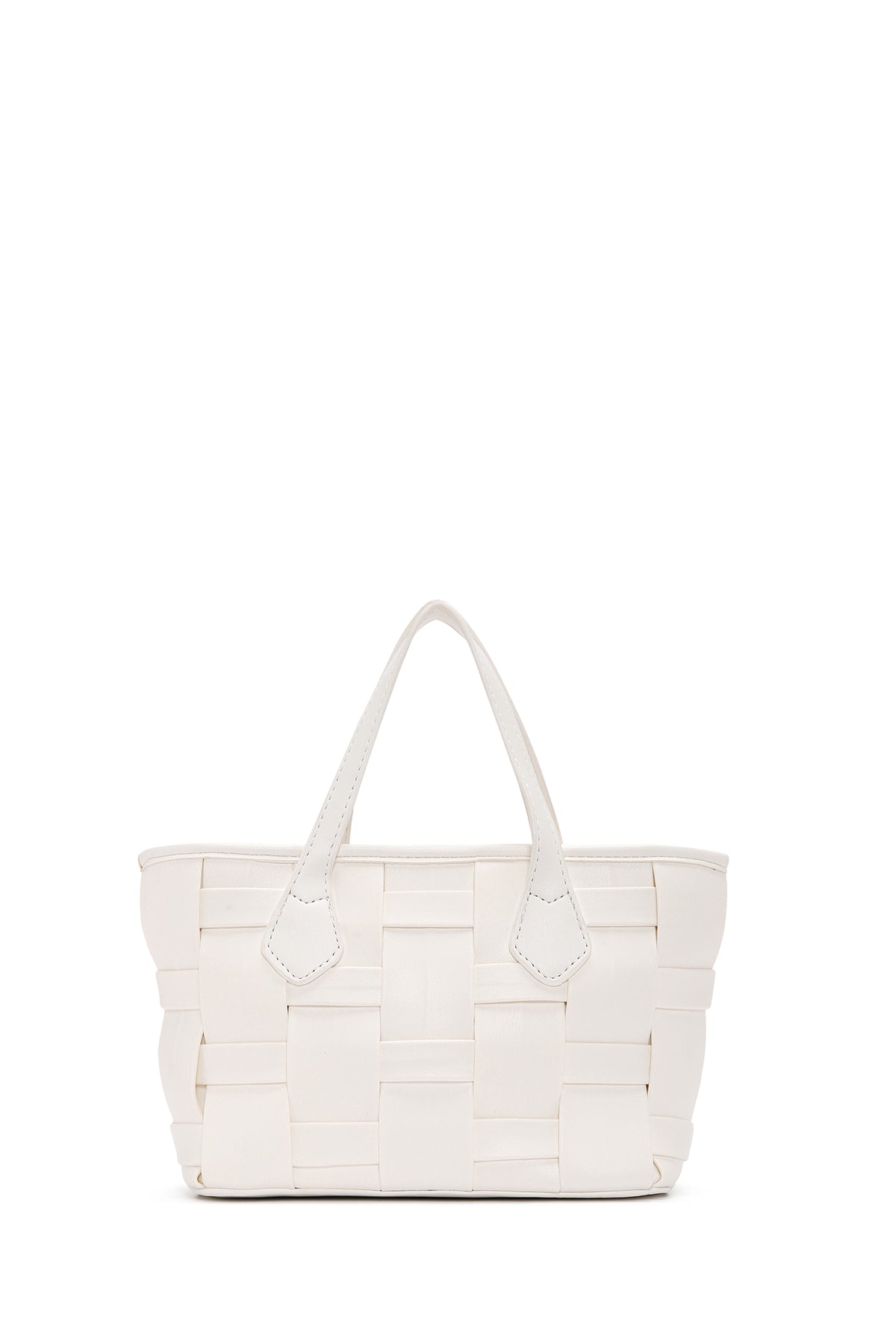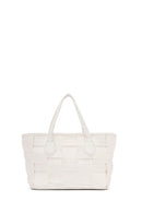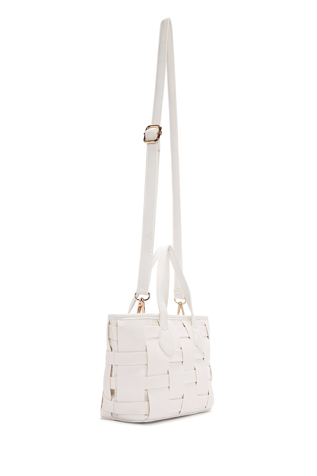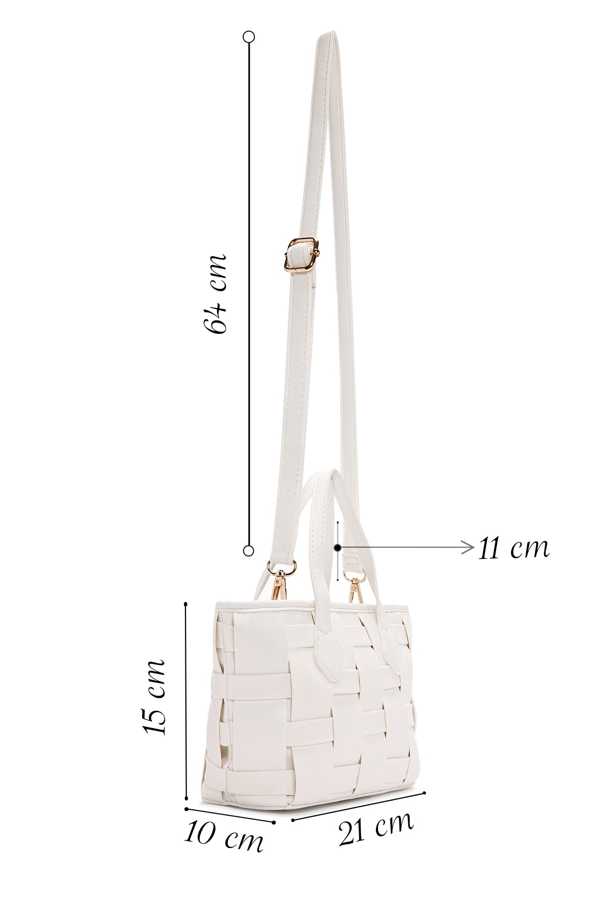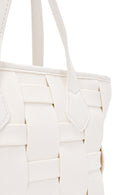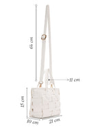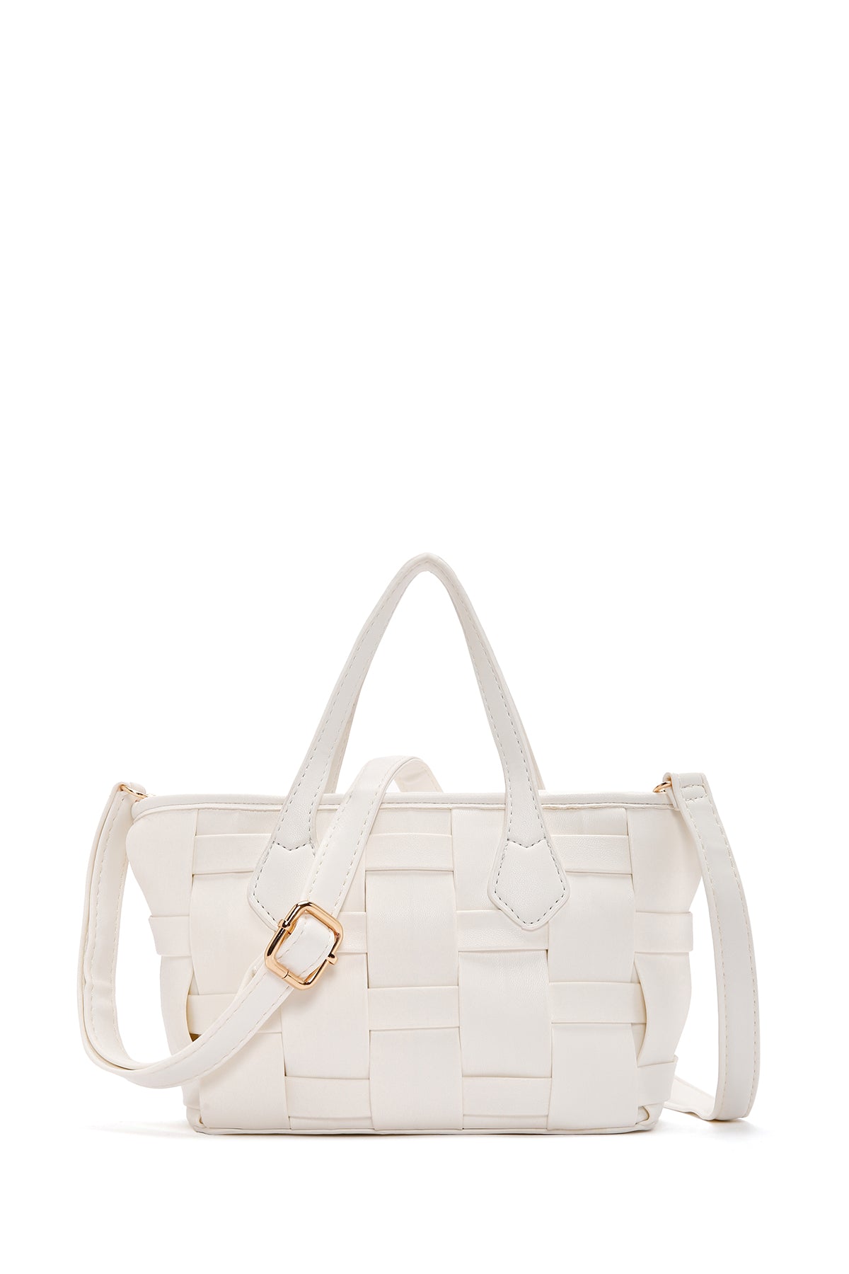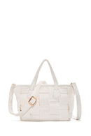 Kadın Krem Uzun Askılı Örgü Desenli Çapraz Çanta