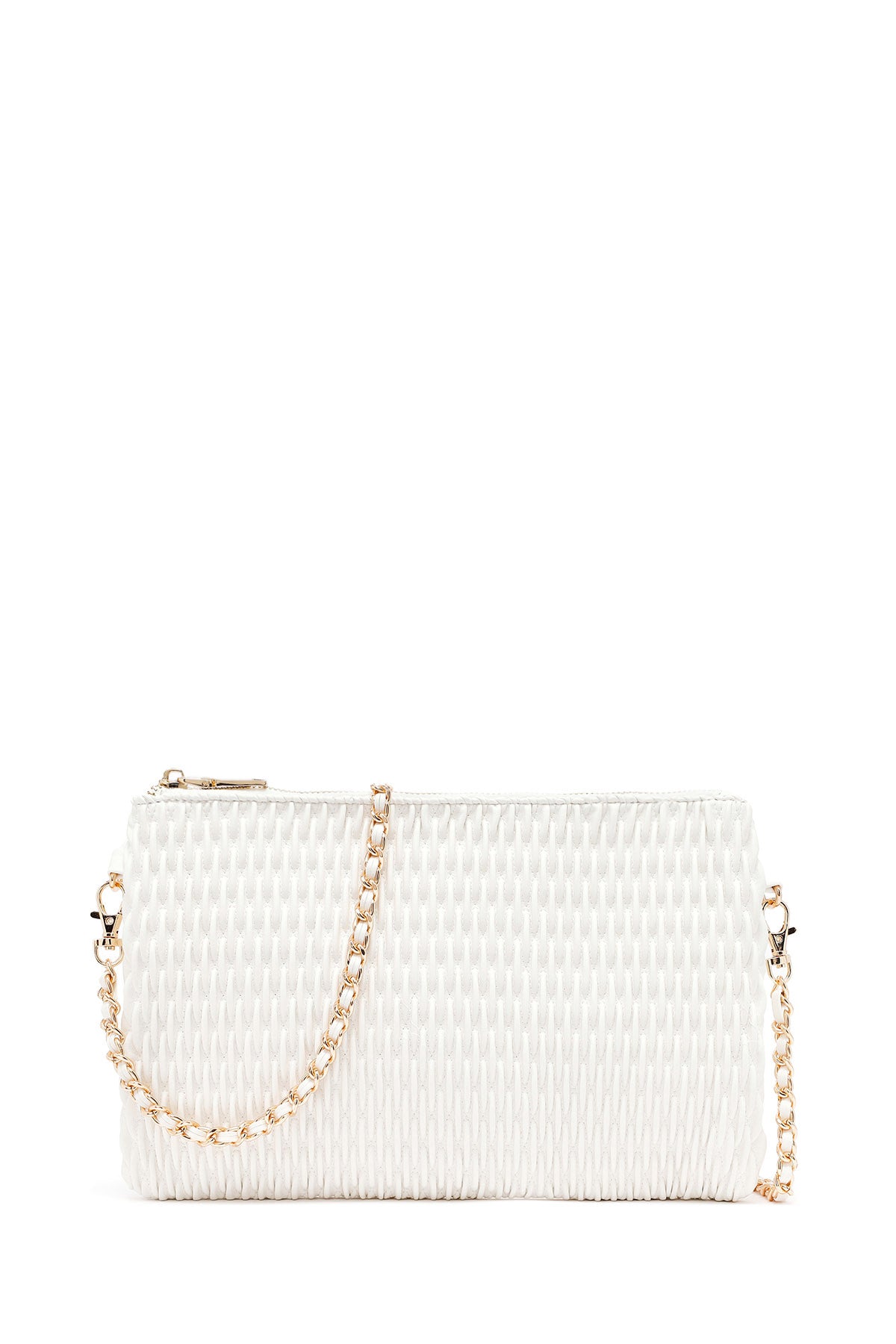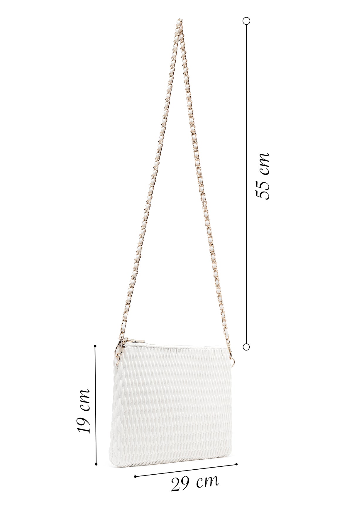 Kadın Krem Uzun Zincir Askılı Baskılı Portföy Çanta